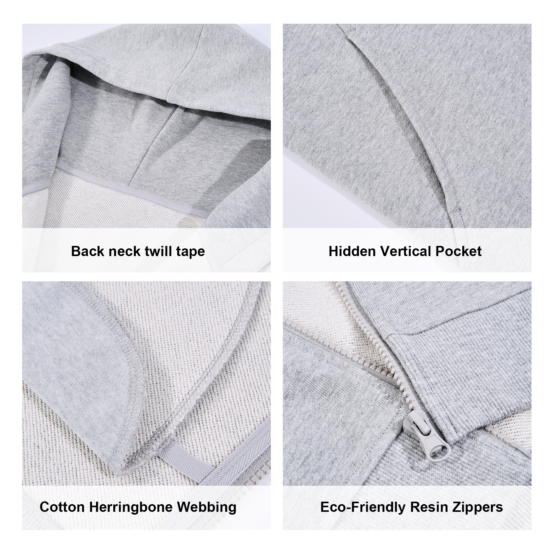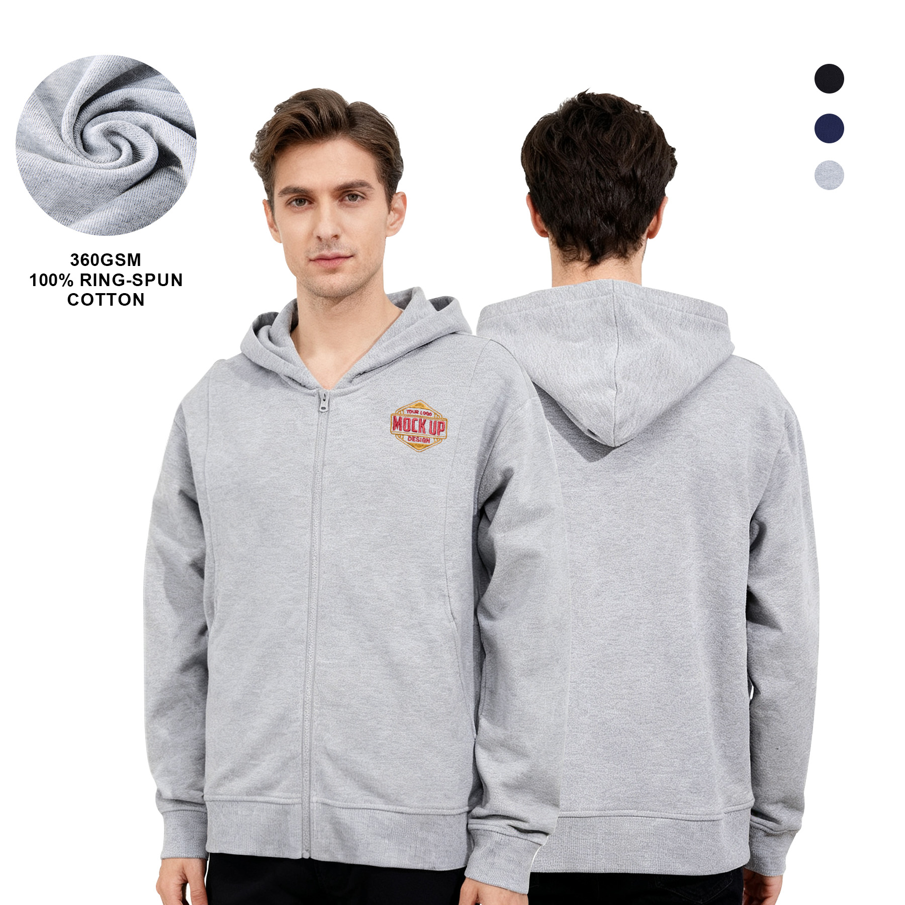 100% Cotton Unisex 360GSM Full Zip Hoodie Sweatshirt With Hidden Pockets