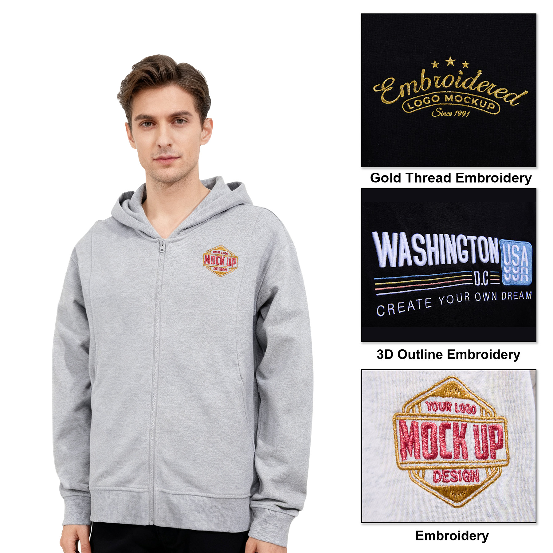 Item# R 718 – Made from premium 10.5-ounce 100% cotton, this full-zip hoodie offers a soft, heavyweight feel with breathable comfort. Designed for long-lasting wear, it features double-needle stitching on the waistband and cuffs, a double-lined hood,and a full-zip suitable for more styling scenarios. The 1×1 rib-knit cuffs and spandex waistband ensure a secure, flexible fit, while the hidden vertical pocket with bartacking provide everyday functionality. Finished with bold 3D-style embroidery printing, this hoodie combines durability, comfort, and standout style-making it the perfect piece for both casual wear and custom branding. Get a free quote now!