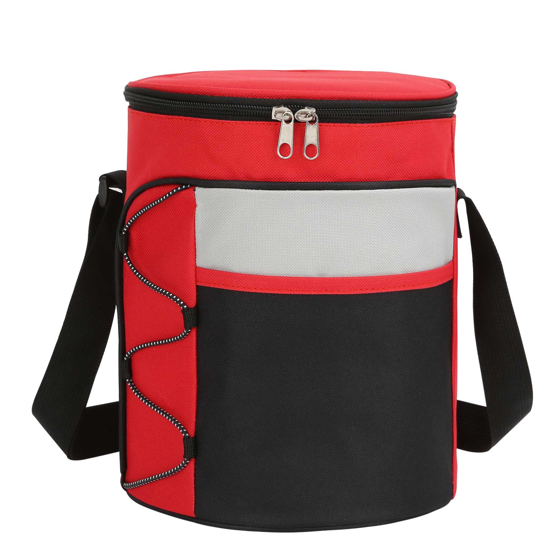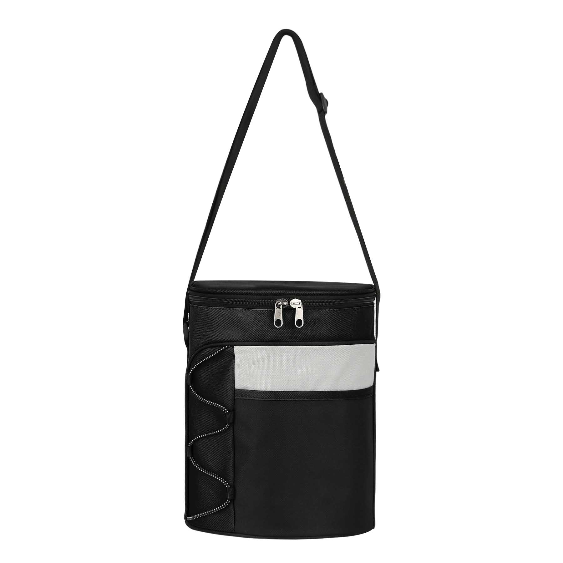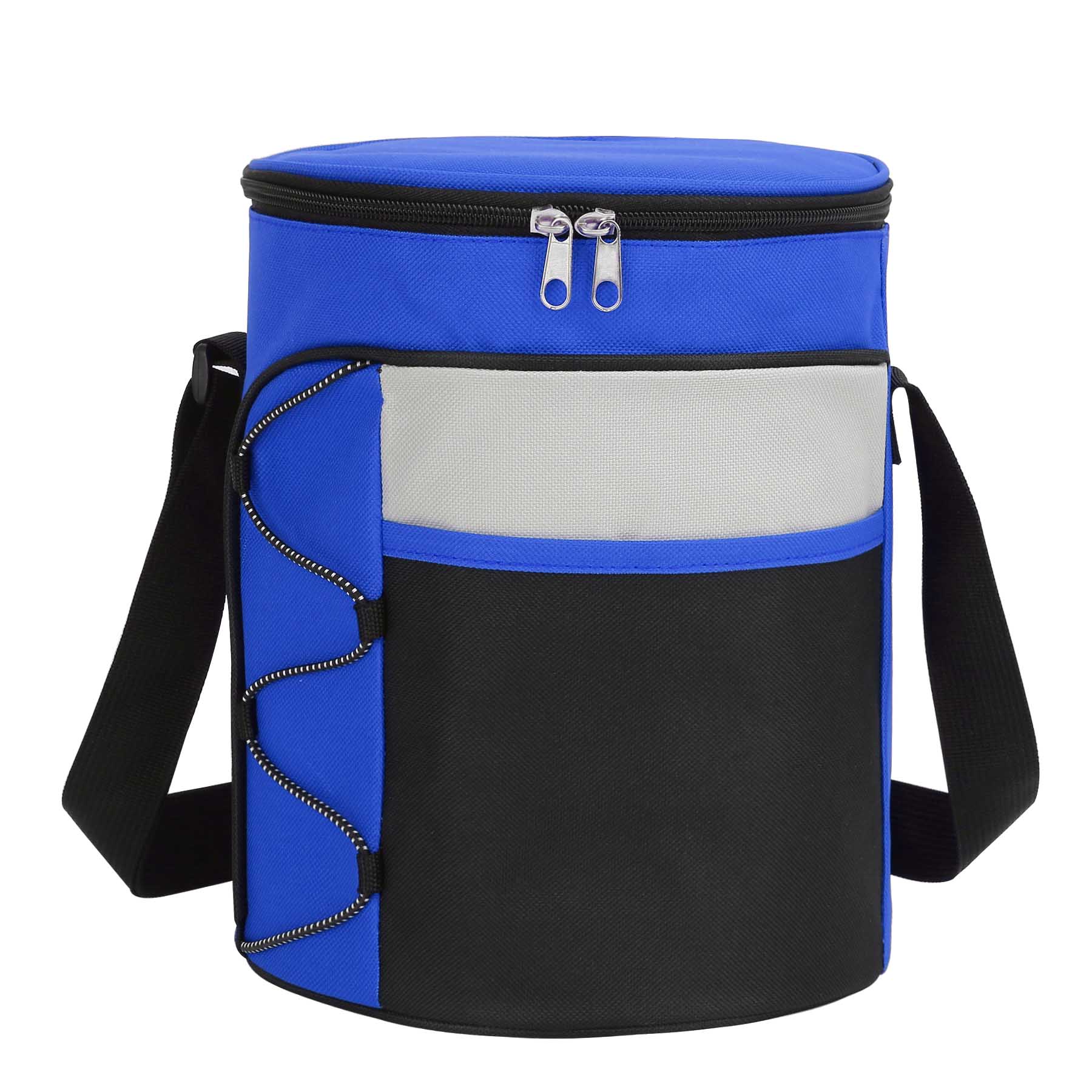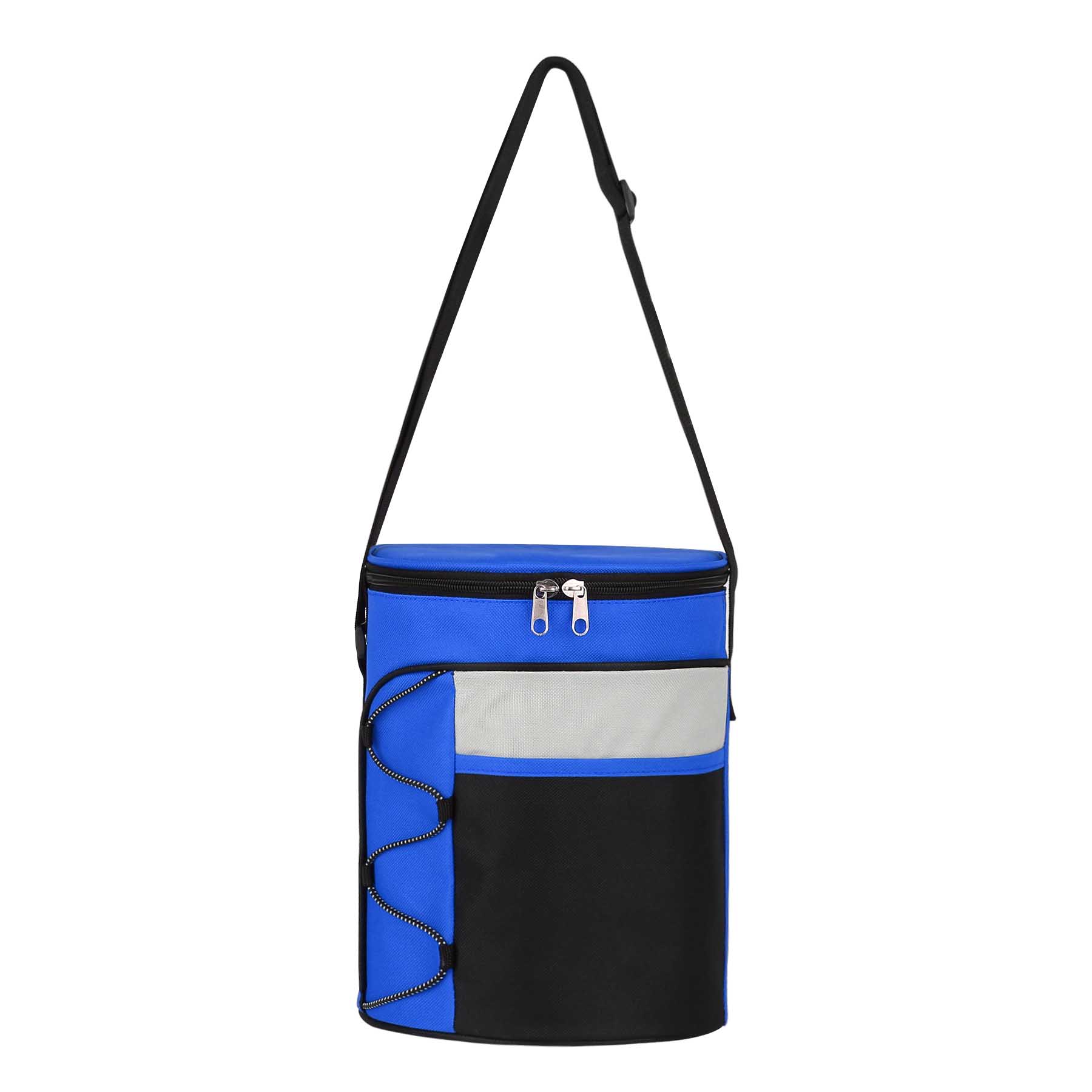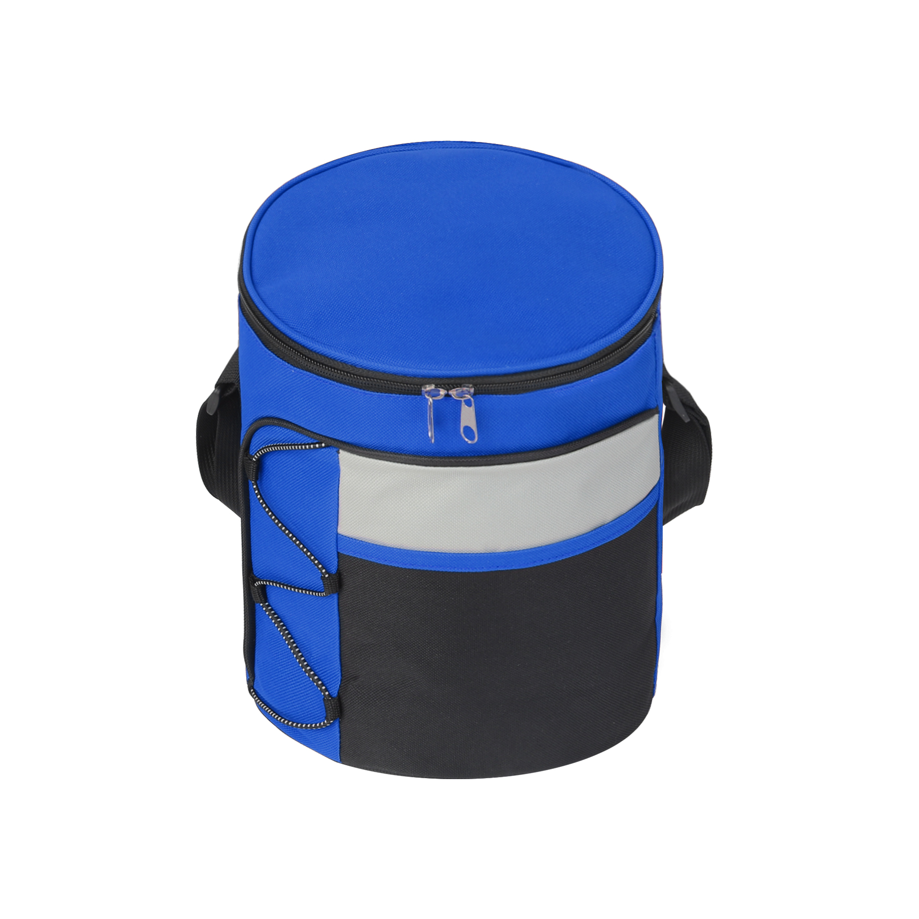 Item# R 693 –  This 14 can tri-tone barrel cooler is made of durable 600D polyester with PEVA insulated lining to keep food/drink cold or hot for hours. The main zippered compartment provides a wide opening that can hold up to 14 cans beverage. It also features a front pocket, elastic storage cord, and a 1″ x 43″ adjustable shoulder strap. Cooler easily collapses down for storage. We always have sufficient stock available. Two sided imprint area can display your message for brand building opportunity. Get a free quote now.