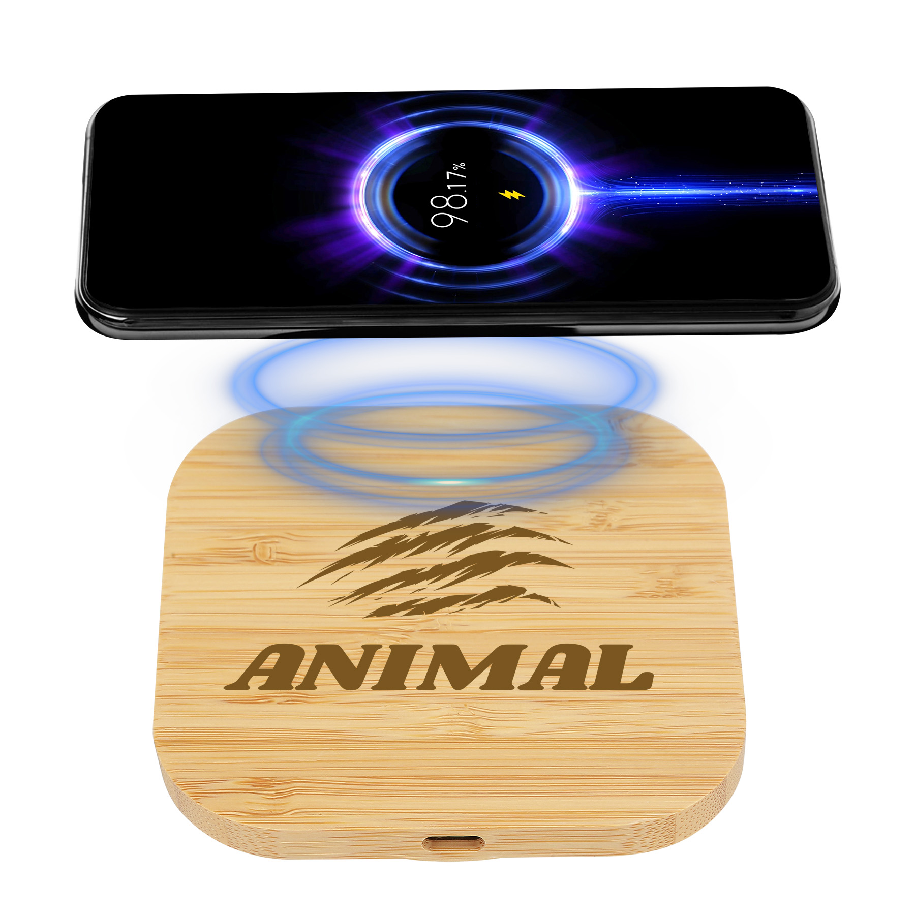 Item# RE1023 – With 15W fast charging, this wireless charger ensures efficient power delivery for your devices. It supports 5V/2A, 9V/2A, and 12V/2A input, with an output of 5W, 7.5W, 10W, and up to 15W (Max). The USB-C interface ensures stable, fast charging.Made from natural bamboo, it offers a sleek, eco-friendly design that blends into any space. The non-slip base adds stability, while customization options include a full-color print or laser engraving, making it ideal for gifts and promotions. Stylish, sustainable, and powerful—charge smarter with bamboo. Get a free quote now!