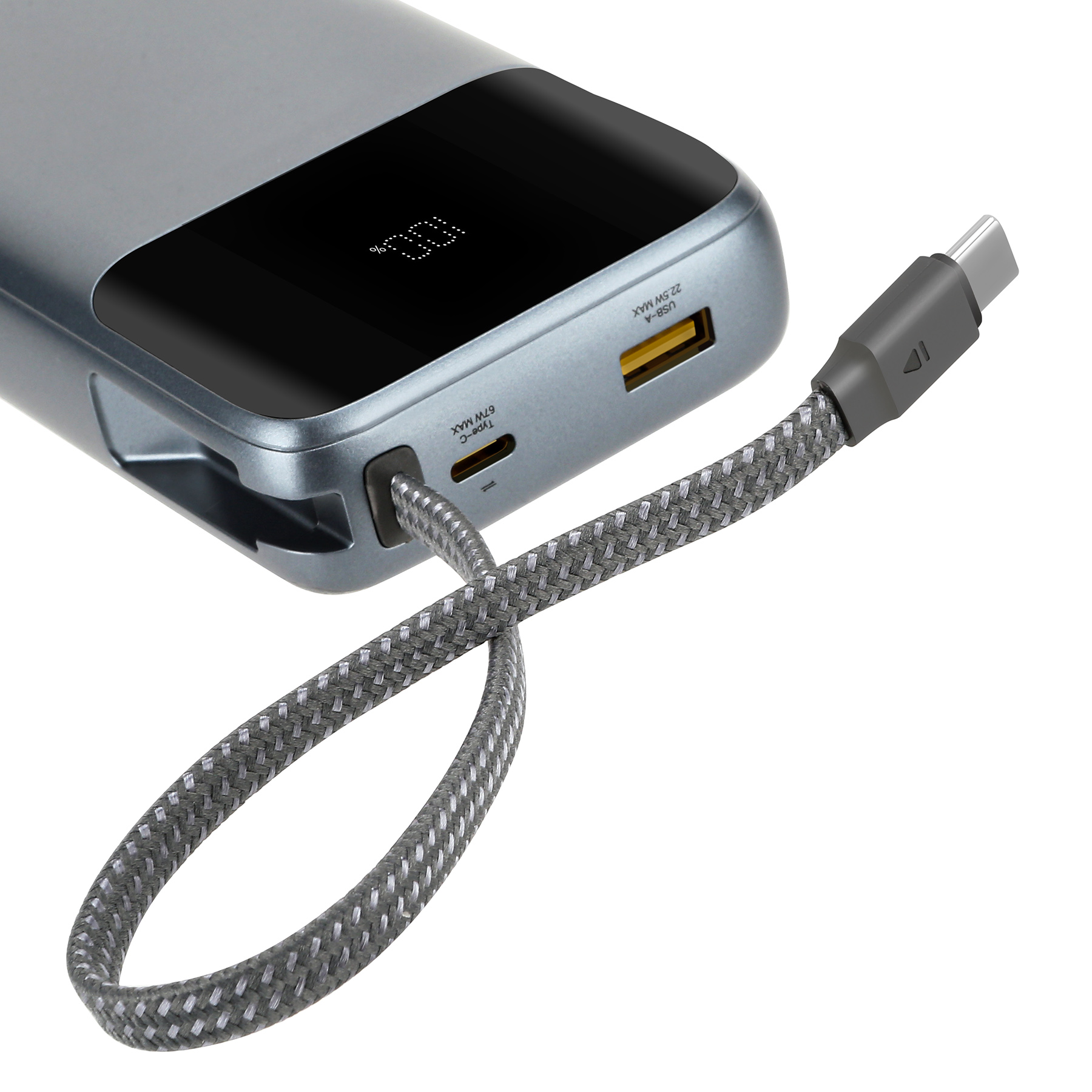 Item# RE1025 –  Power through your day with this 20,000 mAh portable power bank, engineered for reliable, fast, and efficient charging wherever you go. Supporting PD/QC/PPS/SCP fast-charging protocols, it ensures optimal performance for a wide range of devices. The built-in USB-C cable delivers up to 67W, capable of charging most USB-C laptops and recharging the power bank itself to 50% in just 30 minutes. USB-C Input (Cable): 20V/3.25A (65W Max); USB-C Output (Cable): 20V/3.35A (67W Max). Comprehensive safety features—including over-charge, over-discharge, and short-circuit protection—deliver dependable performance and peace of mind. With customizable logo branding, this premium power bank makes an exceptional gift for executives or corporate events, combining practicality with modern sophistication. Get a free quote now!