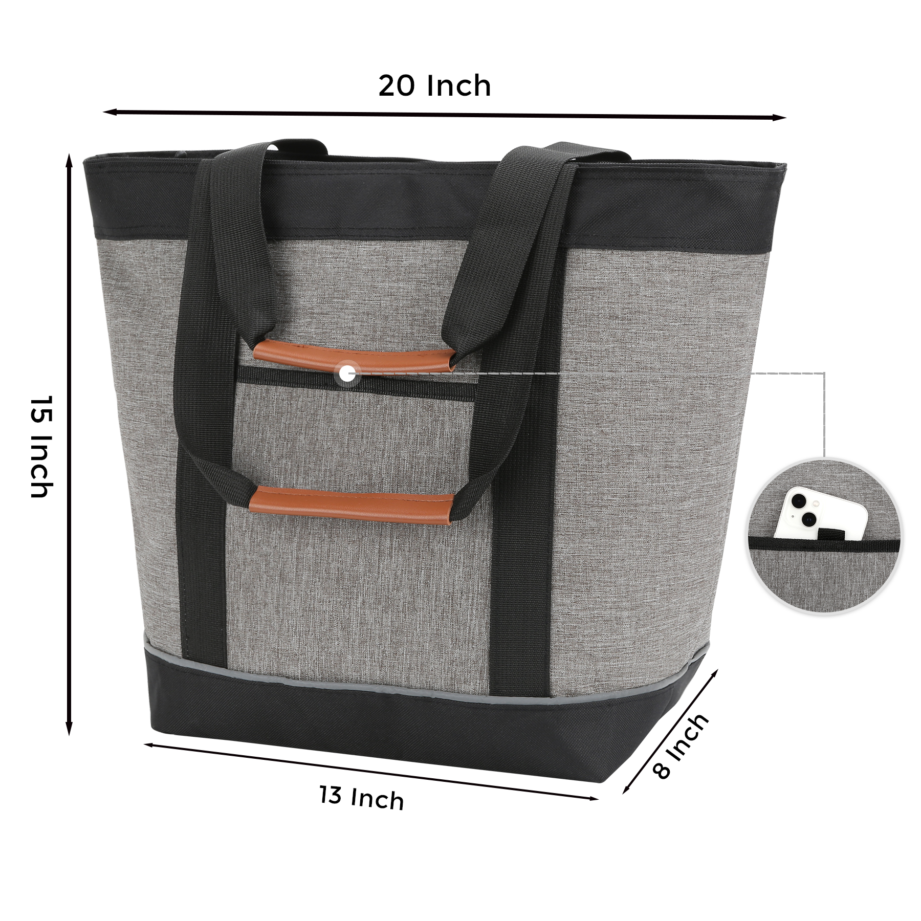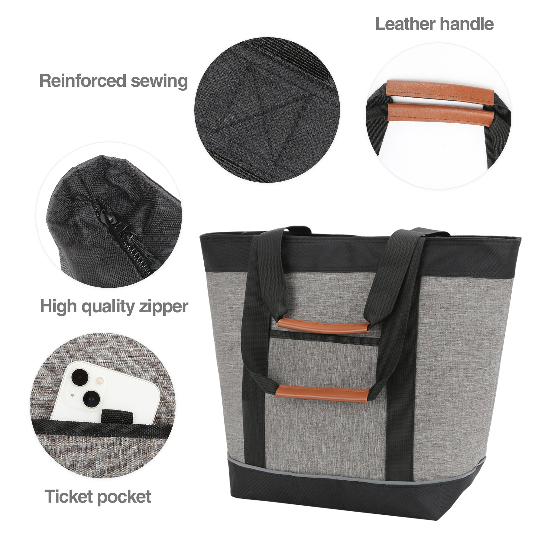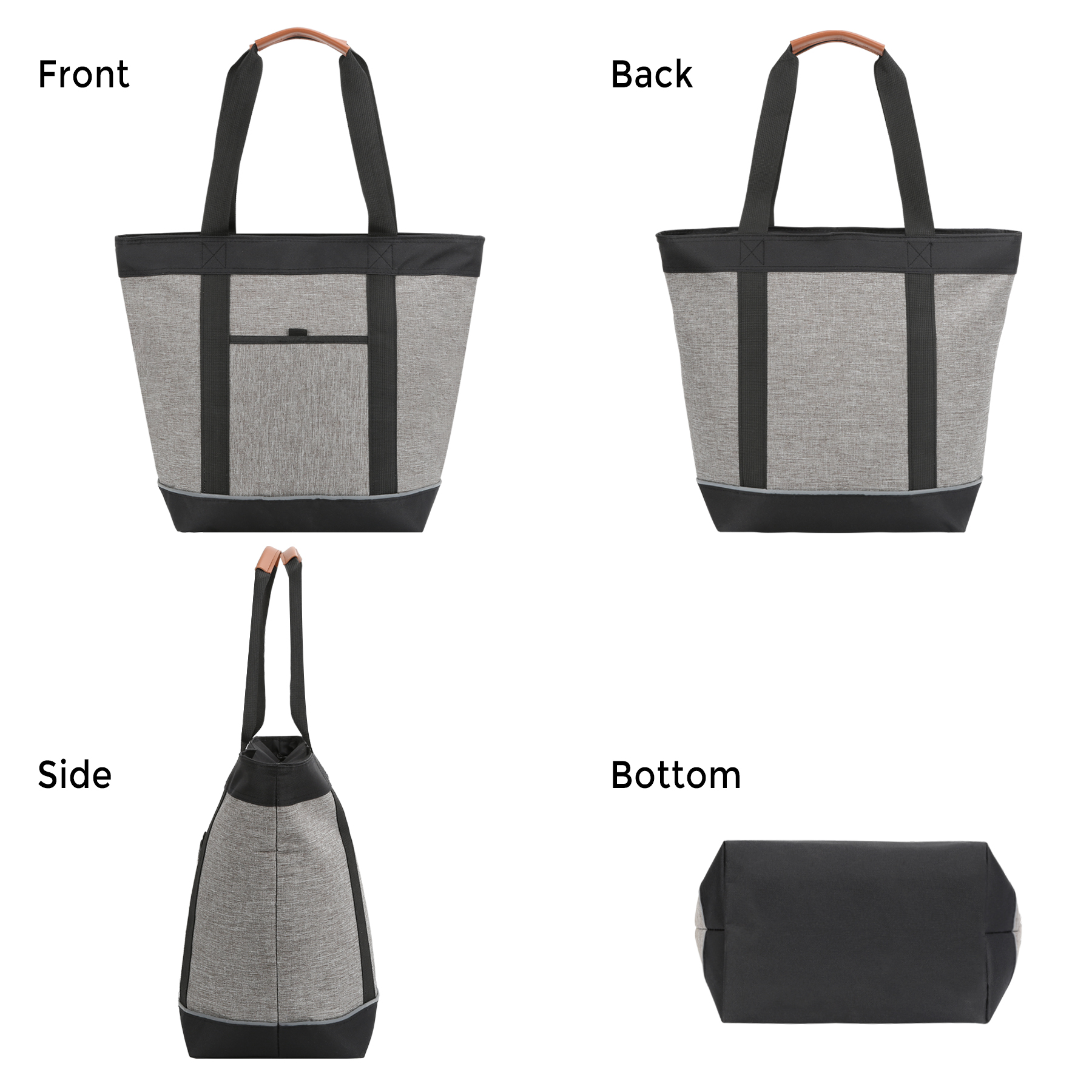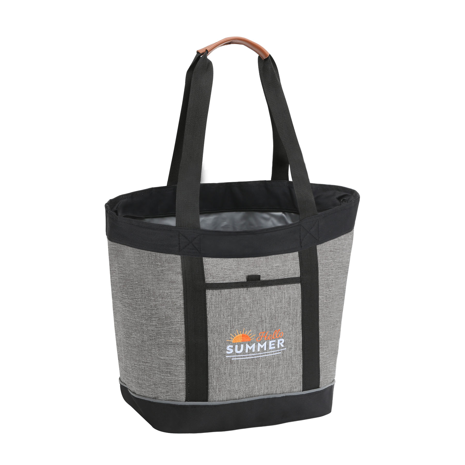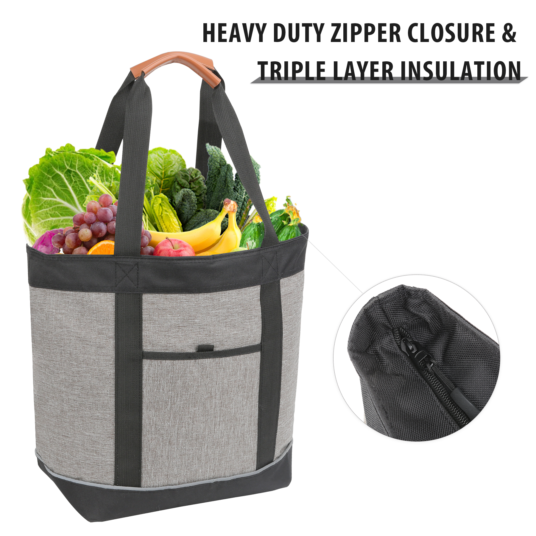 Item# RA1087 –  This premium collapsible soft cooler functions as a high-quality insulated grocery bag. Made from durable 600D heathered polyester with a heat-sealed, leak-resistant PEVA lining and thick thermal foam insulation, it keeps drinks cold and food hot for hours. The soft-sided cooler holds up to 28 cans when zippered and offers generous capacity for cold groceries. A convenient front storage pocket provides easy access to utensils, napkins, keys, or small essentials. Sturdy webbing belt handles with leather hand grips ensure comfortable carrying, while 10.5″ drop handles allow for easy hands-free tote use. Ideal for grocery shopping, beach trips, camping, picnics, travel, and tailgating. Reusable and easy to clean, with a two-sided imprint area for maximum brand visibility—perfect for promotional use. It supports customization and embroidery. Get a free quote now!