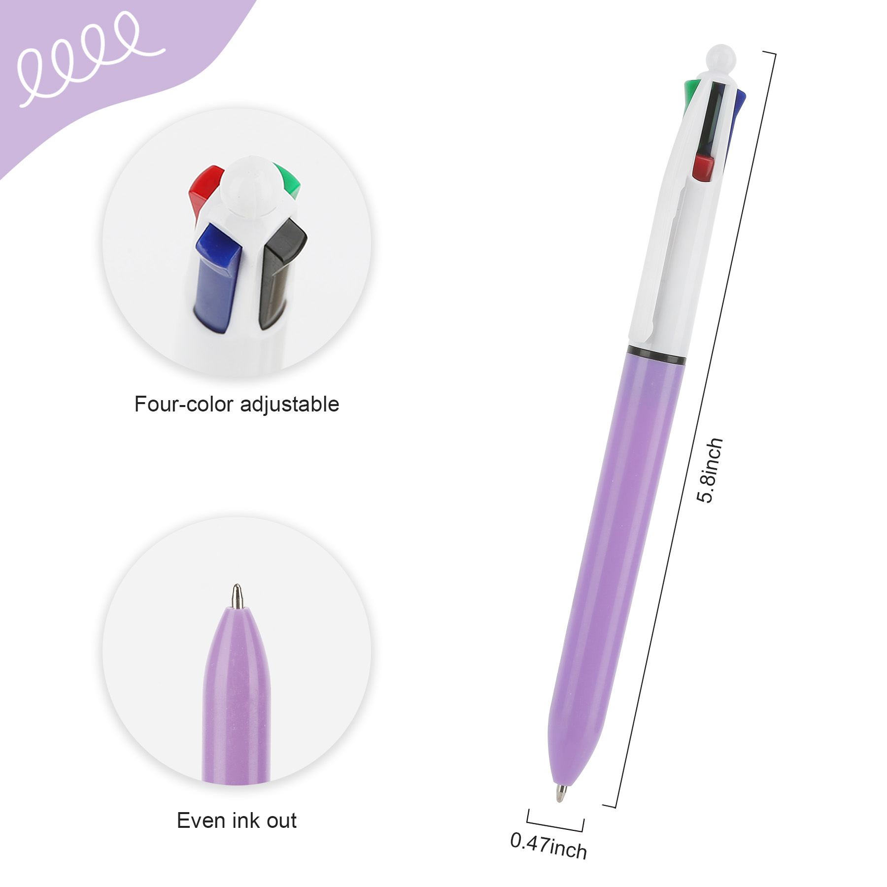 Product Name: 4-Color Retractable Ball Pens, Medium Point (1.0mm)