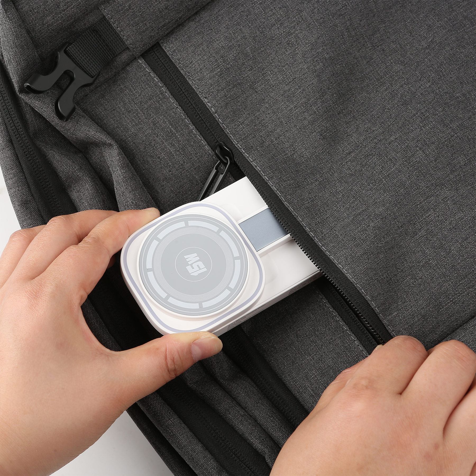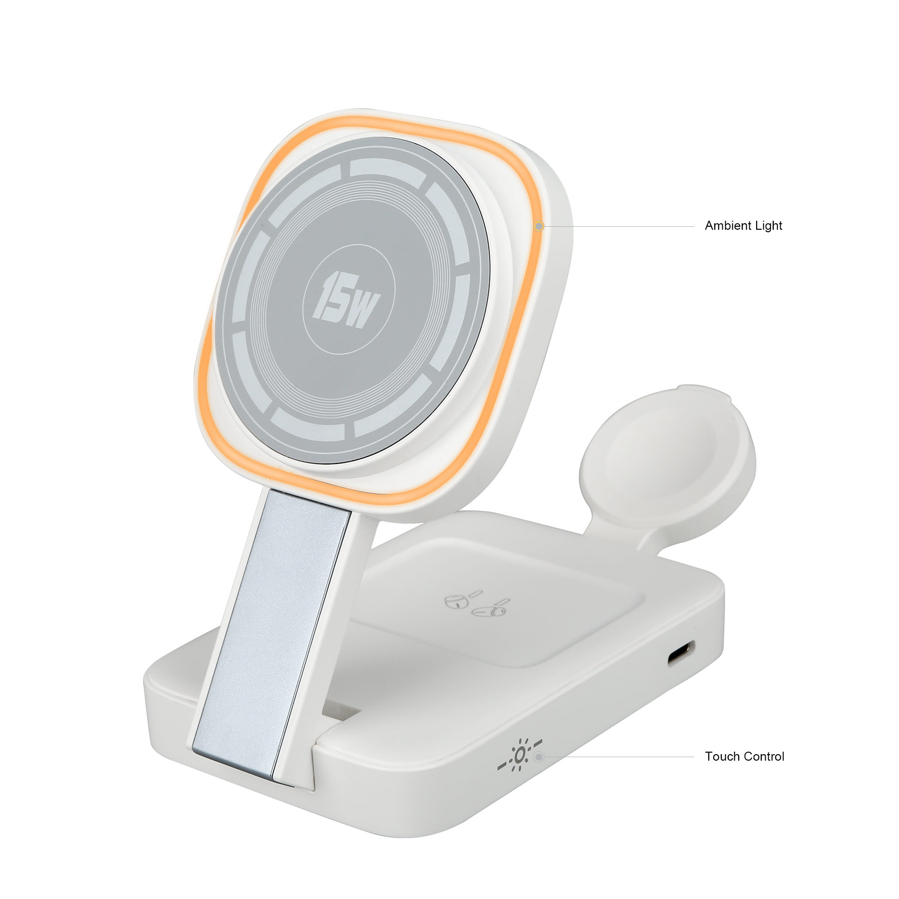 Item# RE1014 – The Foldable Magnetic Wireless Charger is designed for ultimate convenience and versatility. When folded, it transforms into a compact square, making it easy to carry and store. Unfold it to reveal a multifunctional stand that seamlessly supports your devices while charging. Simply place your phone on the designated charging area, and let the strong magnetic connection ensure it stays securely in place. Additionally, the back of the charger features dedicated charging spots for your headphones and smartwatch, allowing you to charge up to three devices simultaneously without interference. To enhance your experience, the charger features a touch-sensitive warm yellow light that creates an inviting ambiance in any setting. Its sleek and portable design makes it the perfect accessory for home, office, or travel. Get a free quote now!