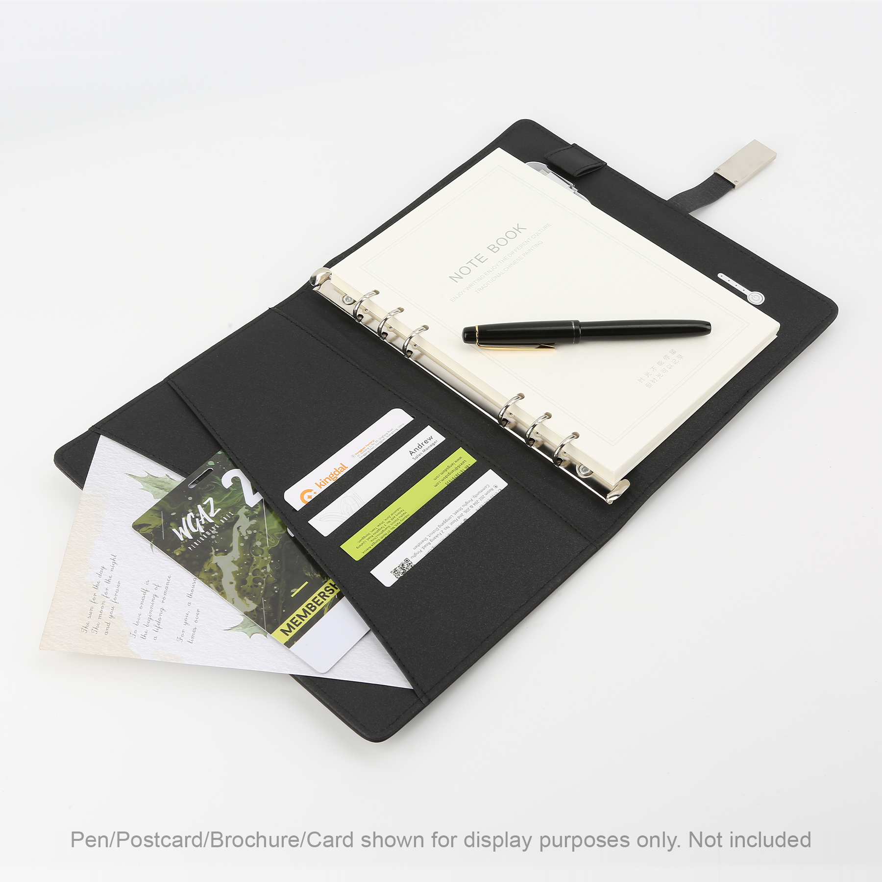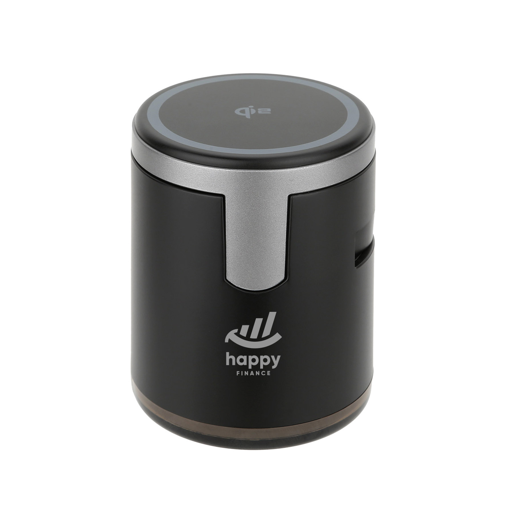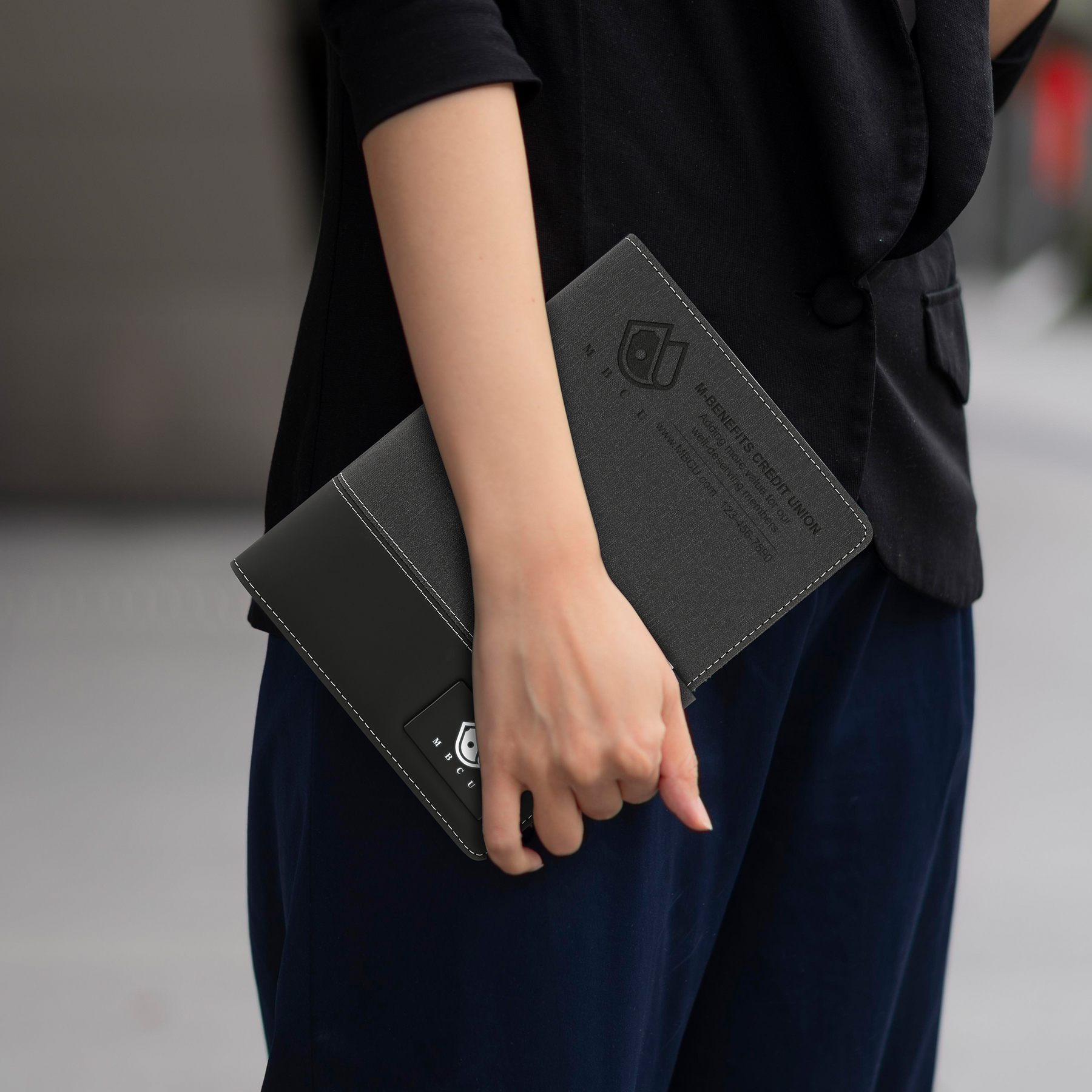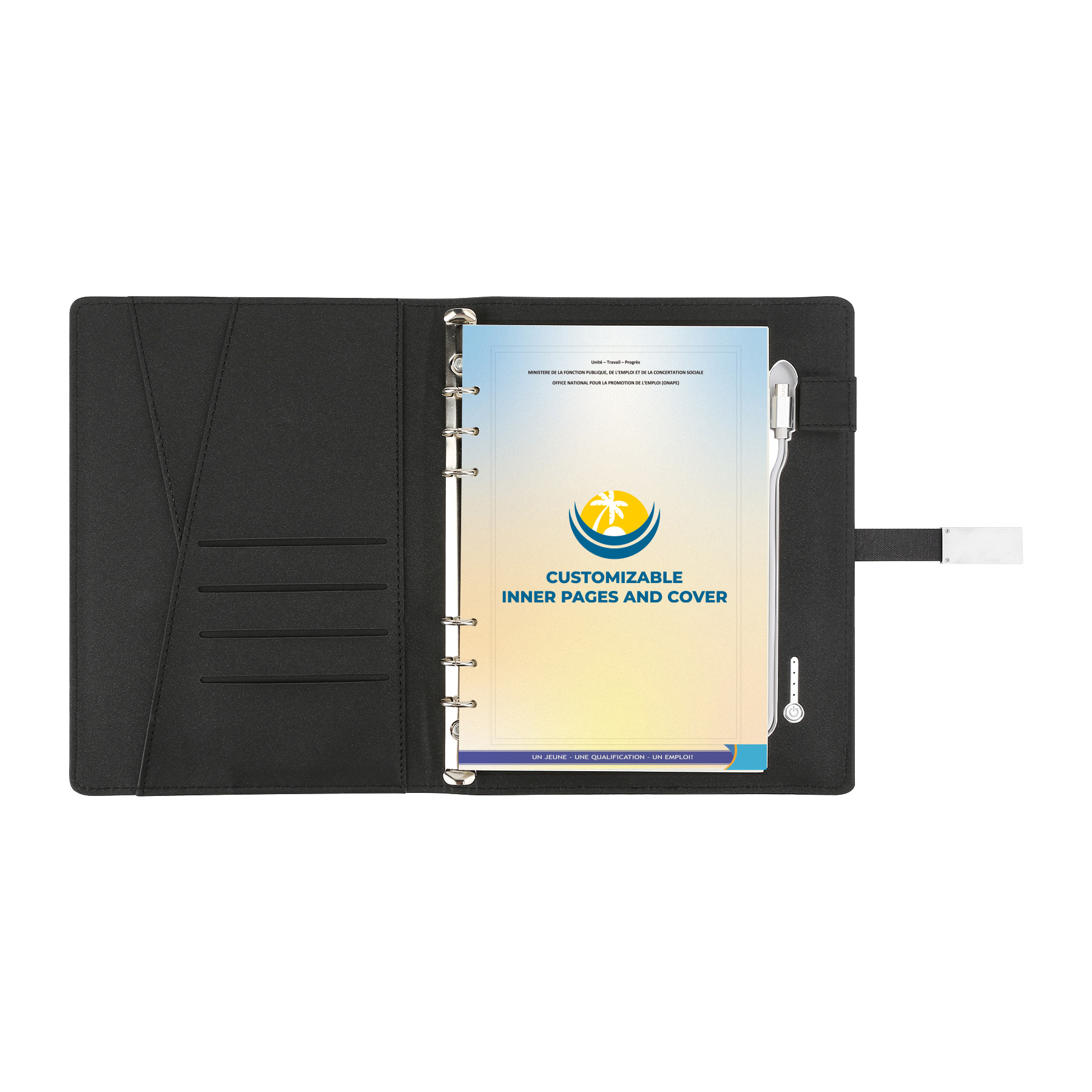 Item# RE1027 –  Enhance your marketing efforts with our Charging Notebook, ideal for promo events. It features UL-certified 8000mAh battery, wireless charger, 16GB USB drive, and 4-in-1 charging cable to ensure your devices stay powered. More than a notebook, it acts as a padfolio with pockets for cards, sponsor or event documents. The LED logo, along with the ample printing area for embossing and UV full-color printing, makes it an ideal executive gift, perfect for conferences and frequent business travelers. Get a free quote now!
