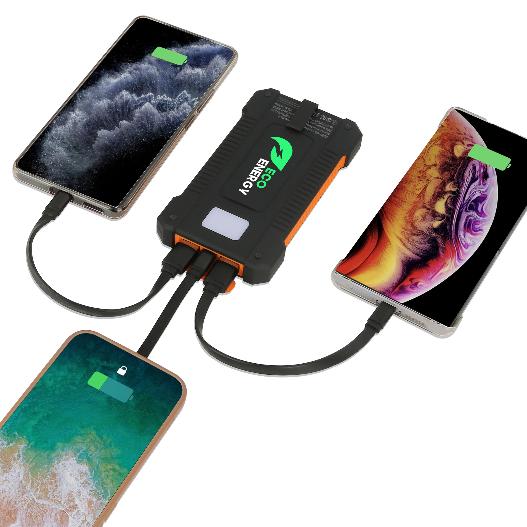 Item# RE1006 – Stay powered anywhere with this 8000mAh solar power bank, designed for everyday use and outdoor adventures. Its built-in solar panel converts sunlight into energy, offering an eco-friendly backup charging solution. Equipped with a Type-C input/output (5V/2A) and two USB-A output ports (5V/2A), it efficiently charges smartphones, smartwatches, earphones, and more. The durable ABS+PC fireproof shell and advanced control chip ensure safe, reliable performance. Rigorously tested for quality, including aging and functionality checks, this power bank delivers long-lasting dependability. Featuring a built-in LED flashlight, it’s the perfect companion for camping, hiking, emergencies, and impactful brand promotions. Get a free quote now!