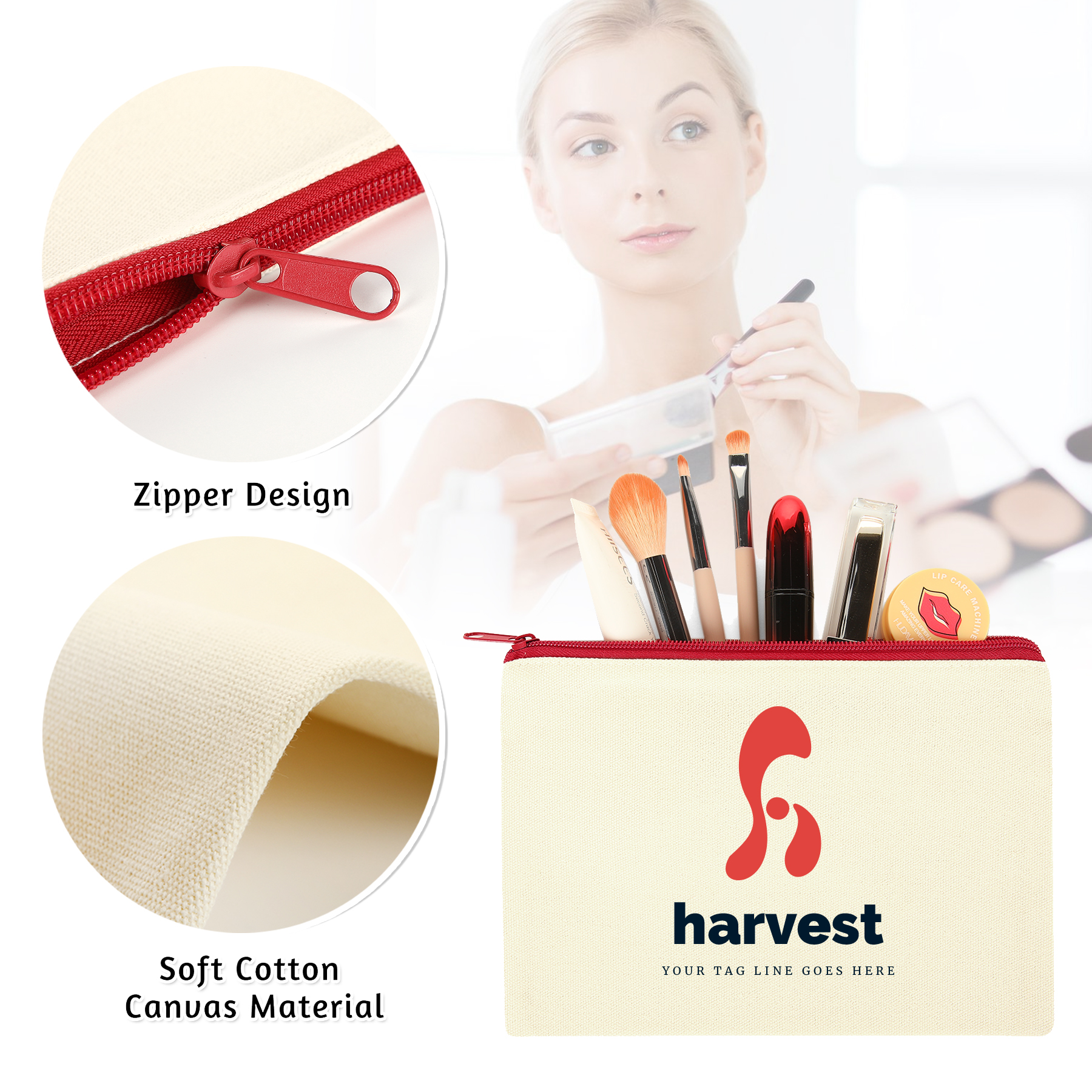 Product Name: 9″ x 6″ Cotton Canvas Zipper Pouch
