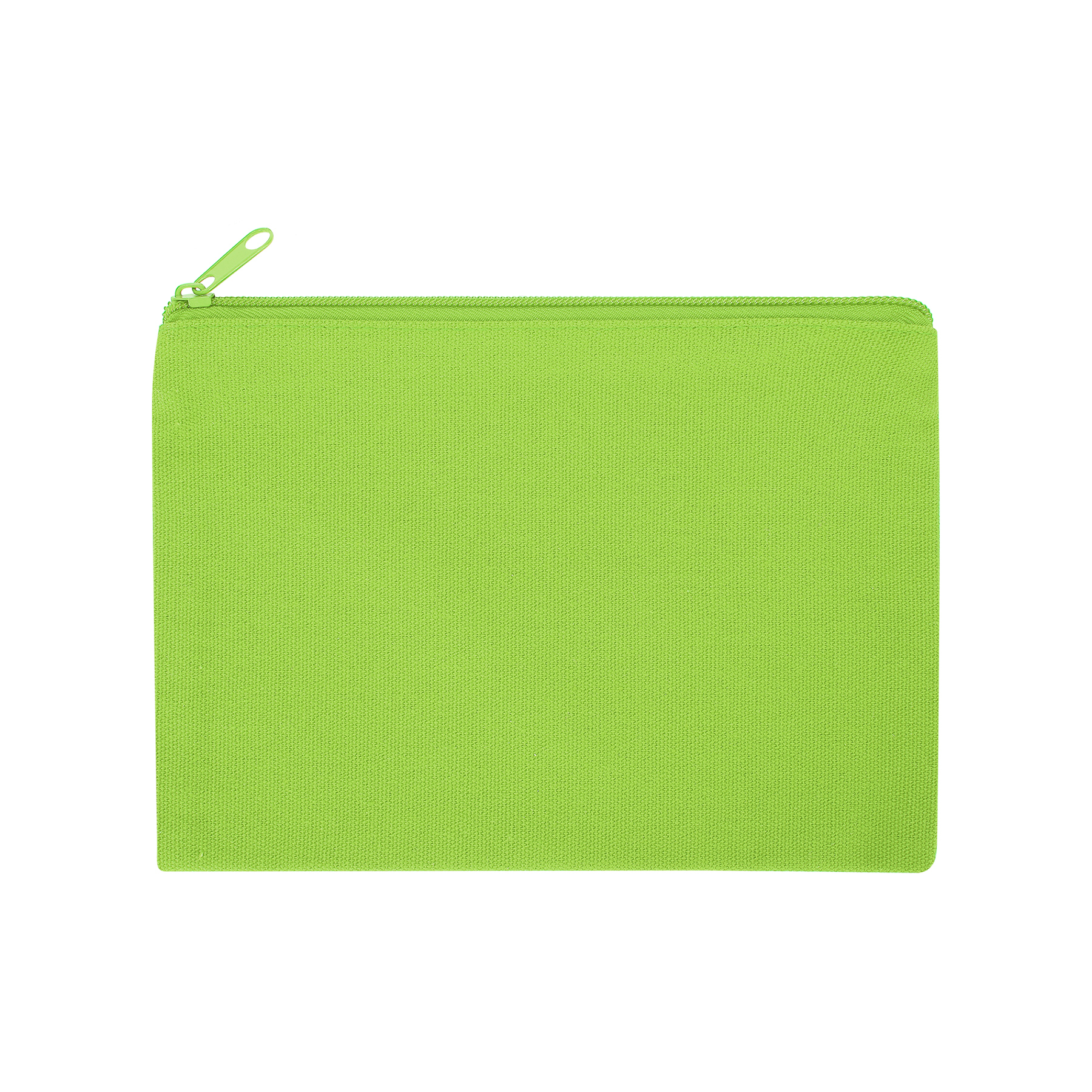 Item#  RA1099 –  This cotton canvas pouch is made of 12 ounce cotton canvas material and measures 9″ x 6″. It is not easy to tear, feels soft and comfortable. This canvas pouch is an ideal way to store your cosmetics, make up kit, toiletries, electronic accessories, traveling essentials, office & school supplies, sporting goods, and all your stuff. Get a free quote now!