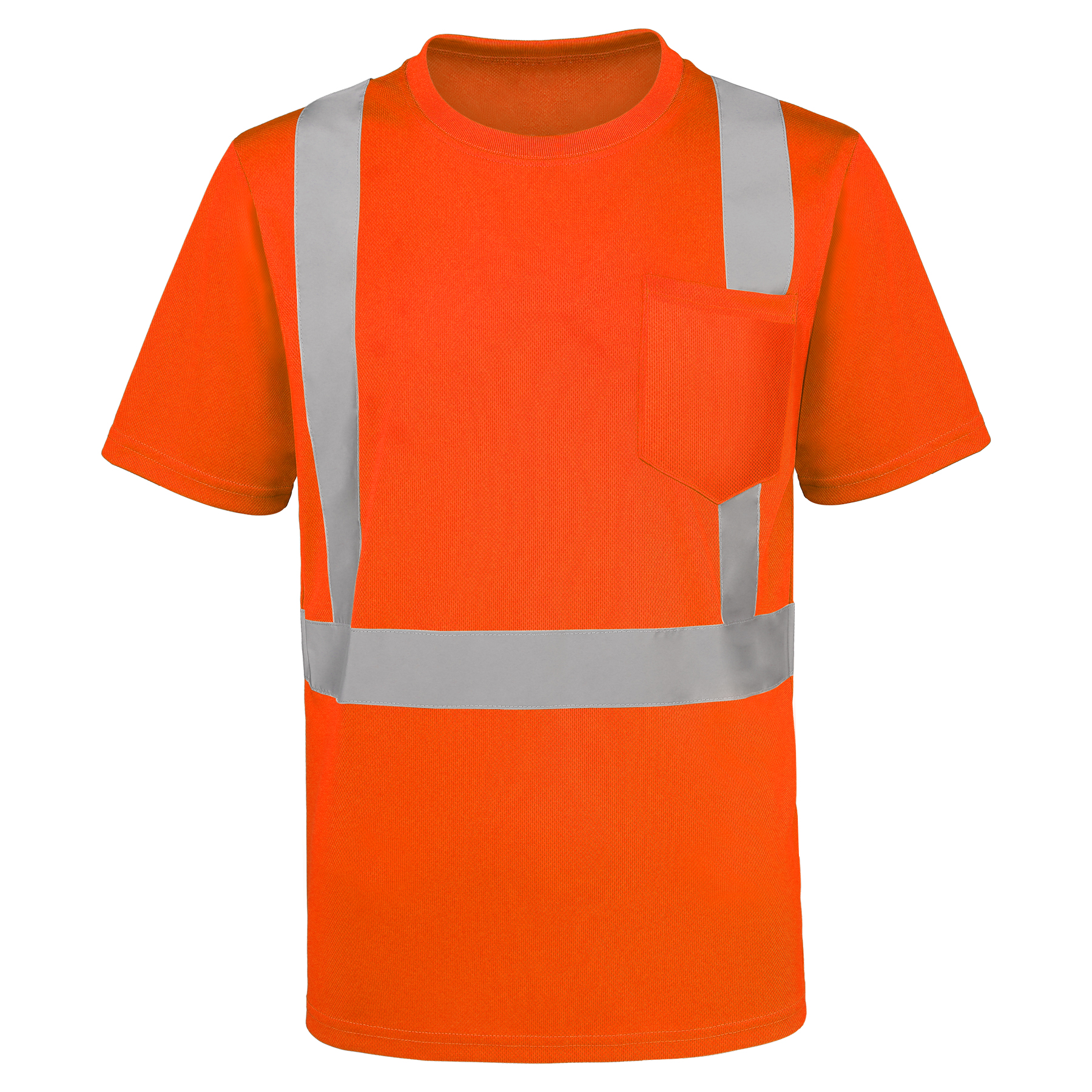 Item# R 271 –  Stay safe and visible with our ANSI-certified Hi Vis T-shirt – the perfect blend of safety and comfort for demanding work environments. Made from lightweight 4 oz 100% polyester, this tee keeps you cool with excellent breathability while providing durable all-day wear. The reflective stripes ensure maximum visibility in low-light conditions, whether you’re on construction sites, directing traffic, or responding to emergencies. It features a reinforced rib-knit collar that maintains its shape and a convenient left chest pocket for your ID, tools, or small essentials. The moisture-wicking fabric helps regulate temperature and resists odors during long shifts. Ideal for construction crews, surveyors, engineers, first responders, traffic controllers, security personnel, and warehouse workers.. Complies with ANSI/ISEA 107-2020 Type R Class 2 standards.  Get a free quote now!