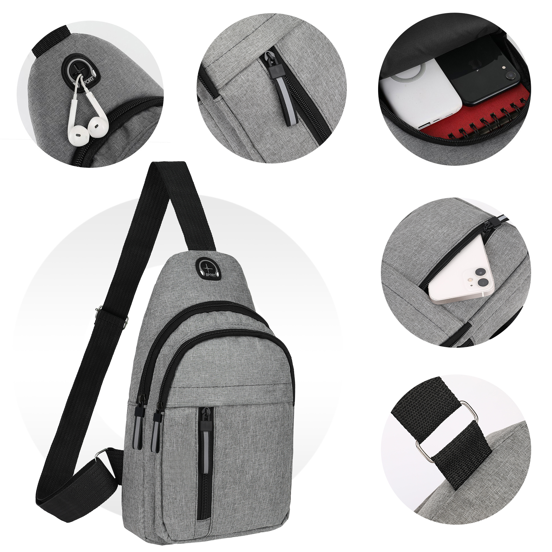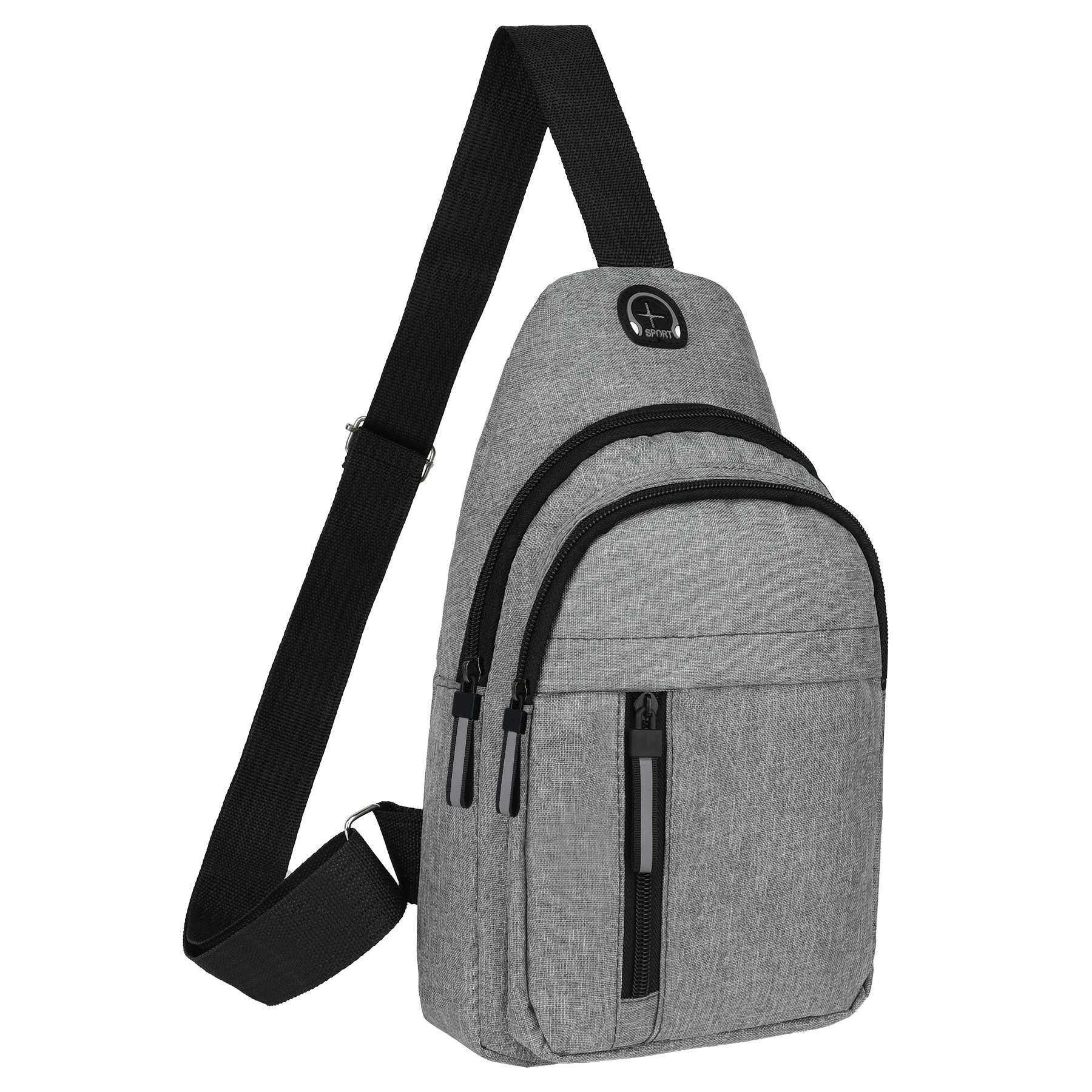 Item# RA1050 –  This stylish sling backpack is made of durable 300D polyester. Several zippered compartments make it easy to take your essentials with you on the go, includes an ear bud port for easy access to your music. The handy bag also has adjustable shoulder straps. Add a custom logo for a great promotional item for year round brand exposure. This lightweight shoulder bag is perfect for outdoor hiking, camping, climbing, cycling, walking, day trip, vacation, travel, school, shopping, gym and so on. Get a free quote now!