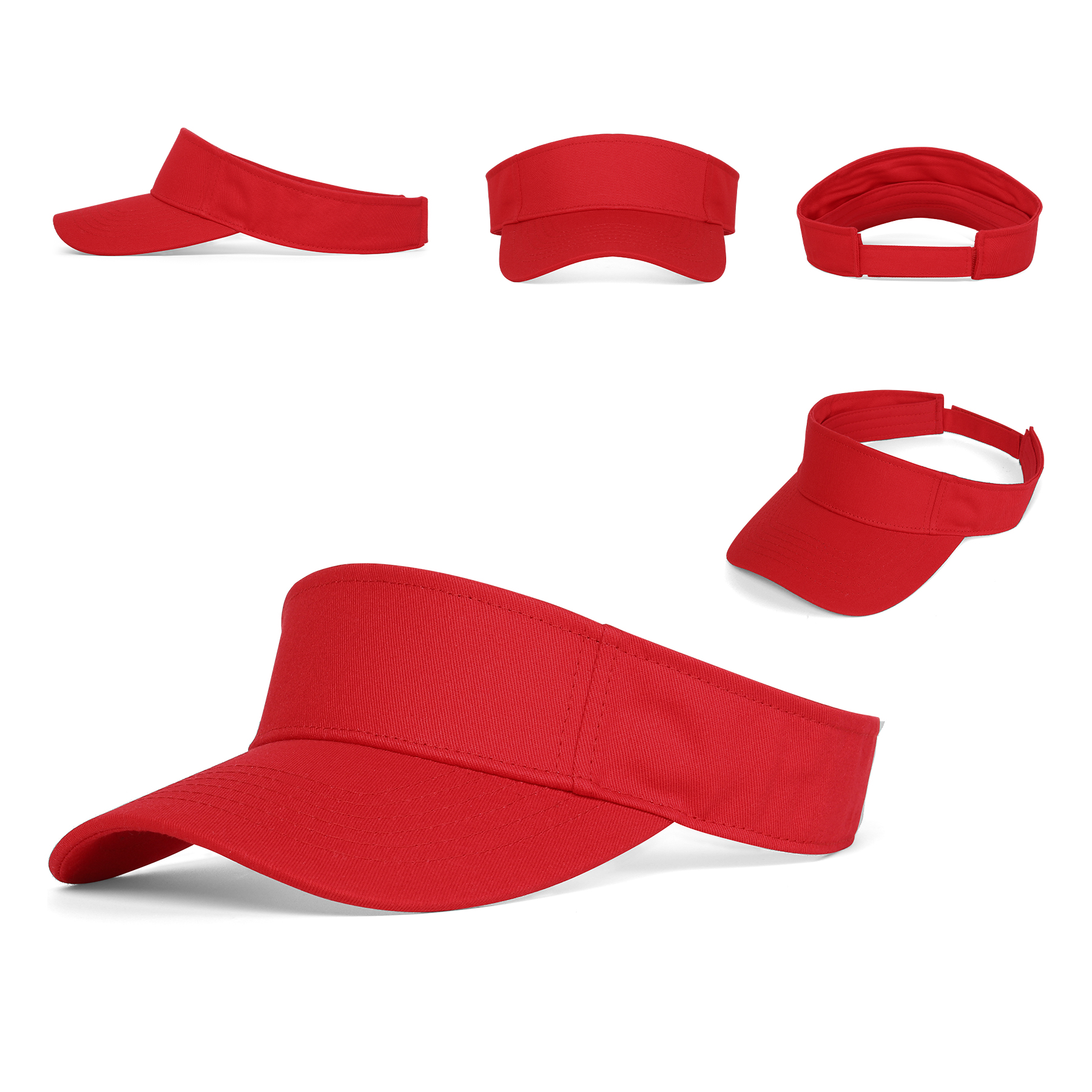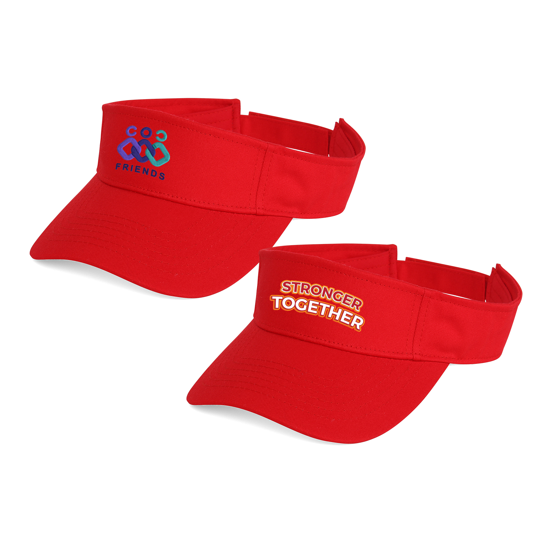 Item#  RC1022 –  These personalized visors are crafted from 100% cotton twill, featuring a pro stitch on the crown and an adjustable hook-and-loop closure for a comfortable fit. The pre-curved visor offers extra sun protection, making them perfect for outdoor activities. Customize your visor with graphics or artwork from our library of clipart and fonts. These embroidered visors can also be printed with your logo, making them ideal for promotional events, trade shows, conventions, and corporate outings. Get a free quote now!