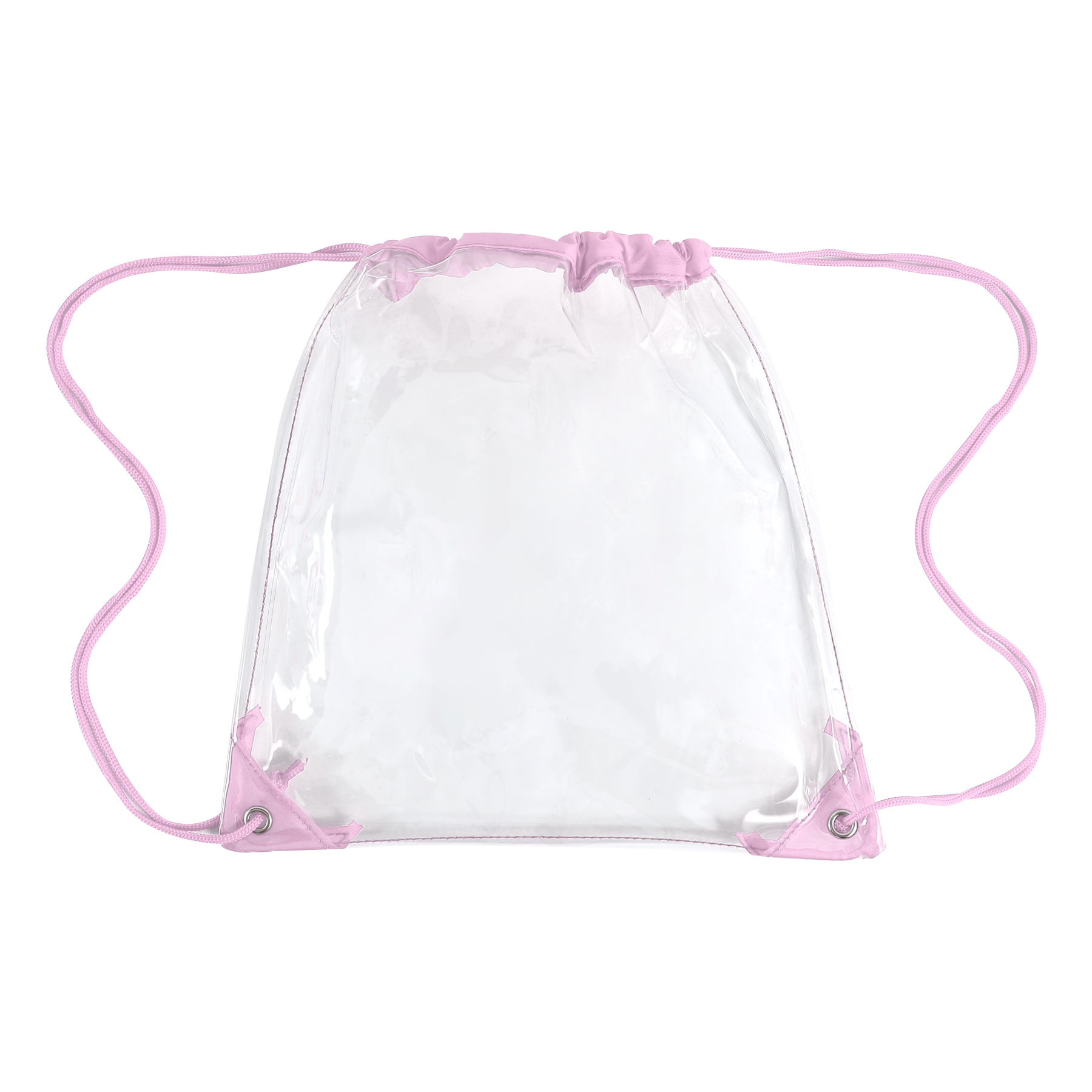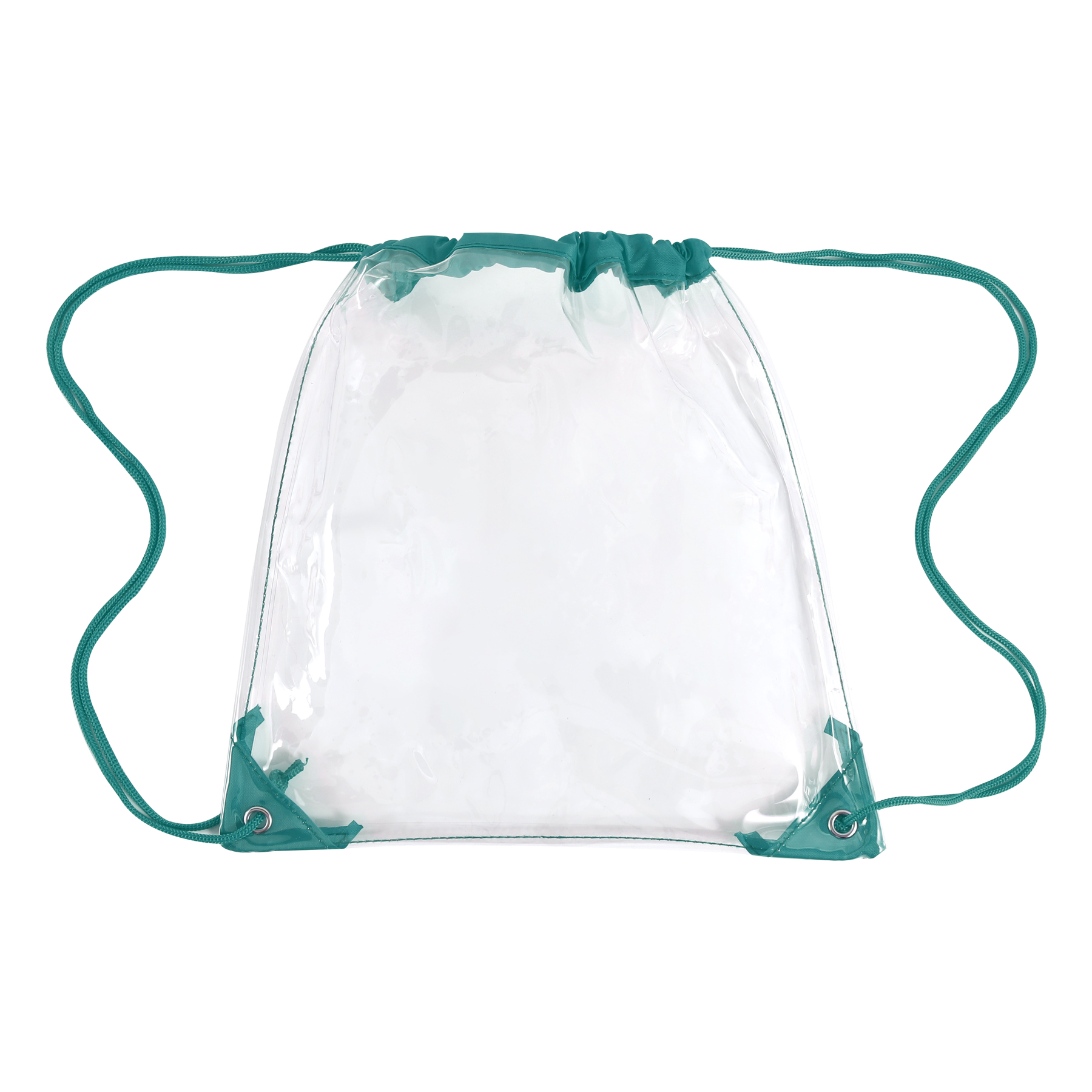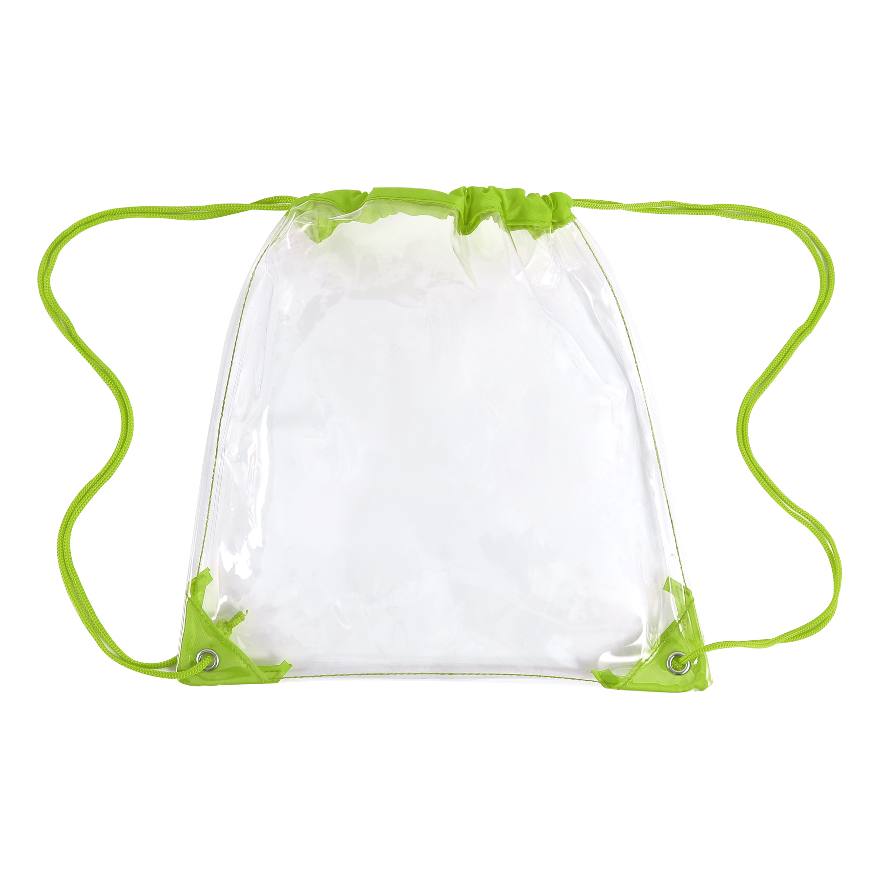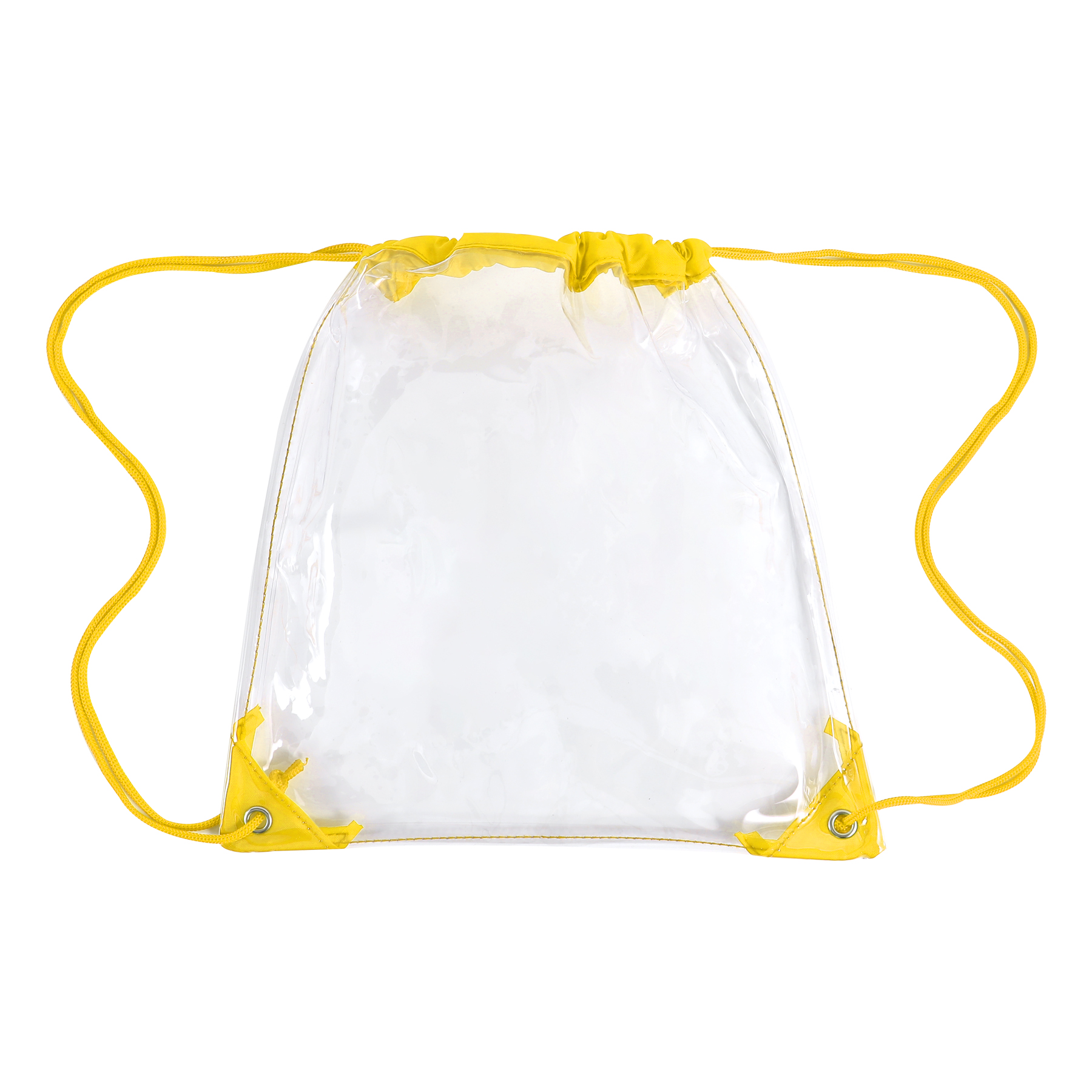 Item# RA1083 –  This clear drawstring bag is made of durable clear vinyl material with bright and eye-catching trim. The drawstring closure compartment can hold clothing, books and bulky items. Reinforced corners with metal grommets are designed for long-lasting using. It also complies with NFL stadium security requirements as long as logo size does not exceed 4.5″ tall by 3.4″ wide. It is ideal for sports and stadiums. Get a free quote now!