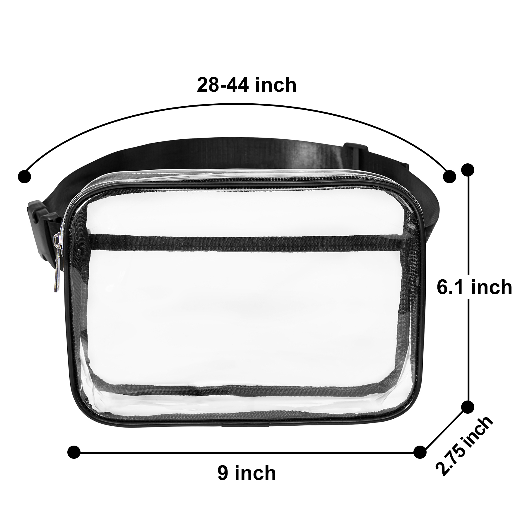 Item# RA1175  –  Meet your new go-to accessory for style and durability. Crafted from durable PVC with excellent abrasion resistance, this fanny pack boasts a sleek, transparent design for a modern touch. The adjustable waist strap (28″-44″) allows you to comfortably wear it as a crossbody, waist, or chest bag. Inside, a main zippered compartment and an inner pocket offer a generous 2.8L capacity, providing ample, organized space for your daily essentials. Best of all, it meets most security policies, ensuring quick and easy entry at concerts, stadiums, and other events. Get a free quote now!