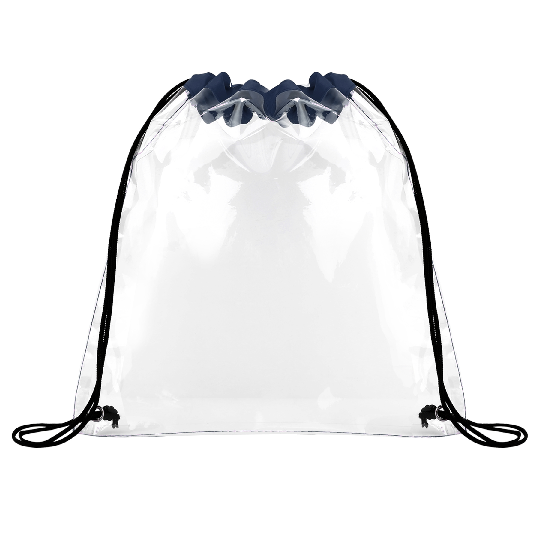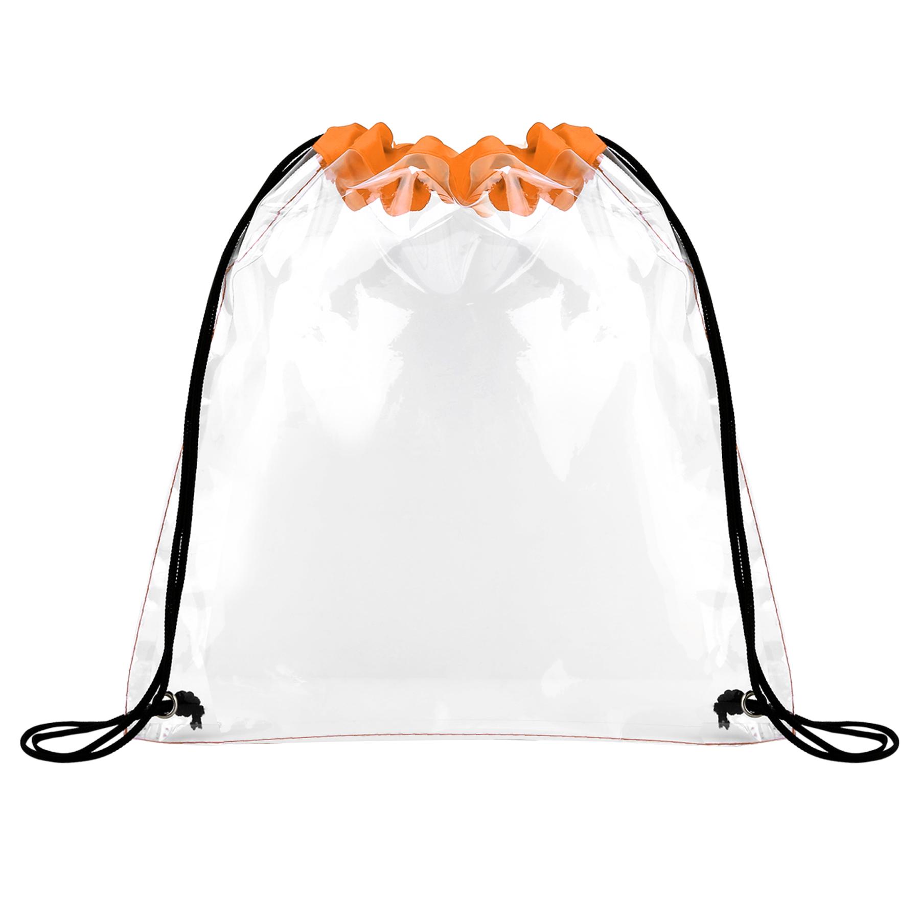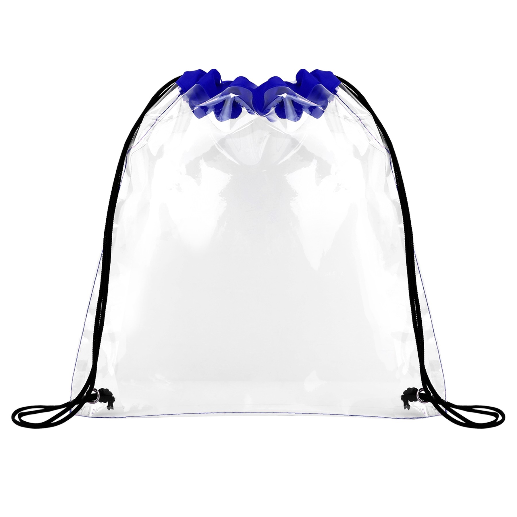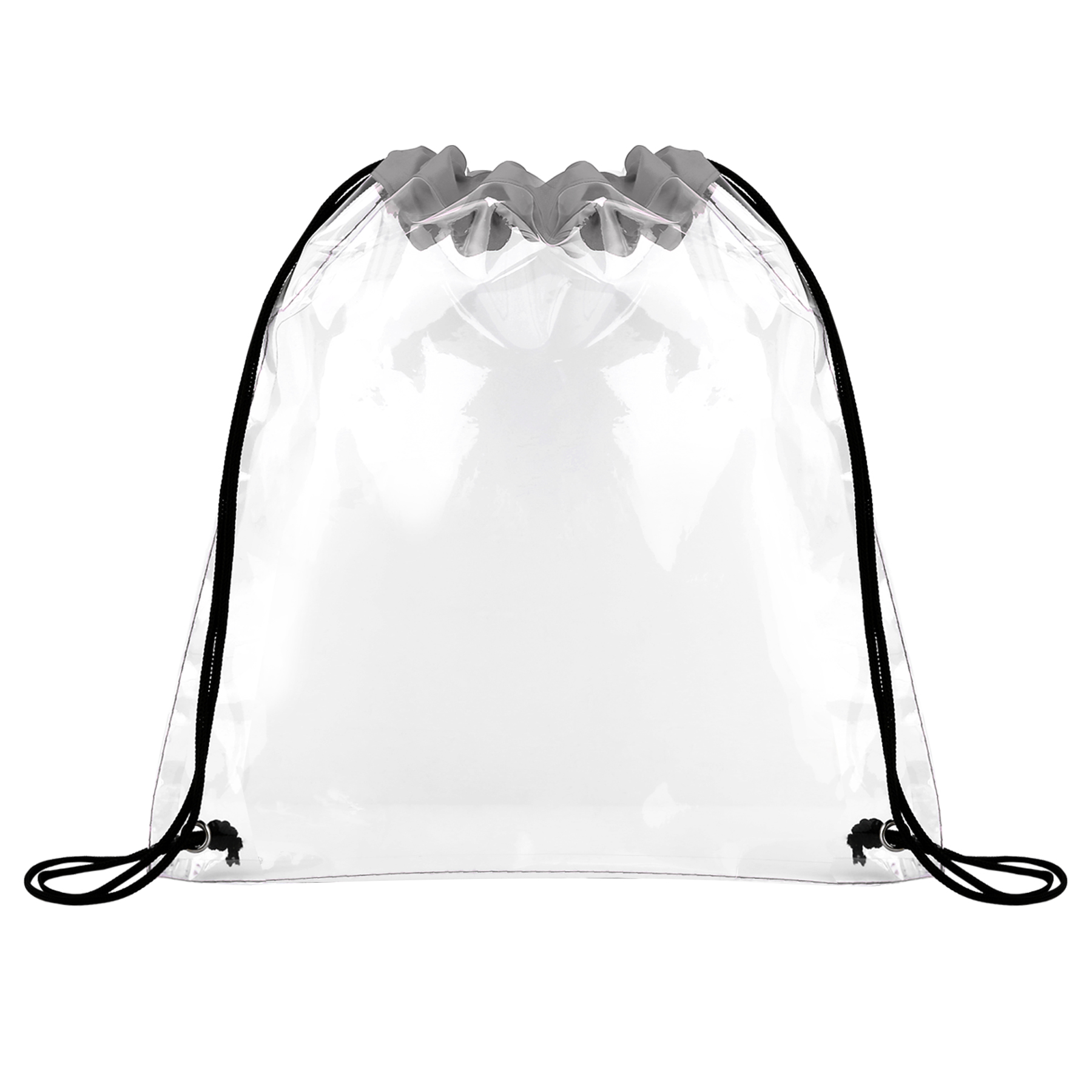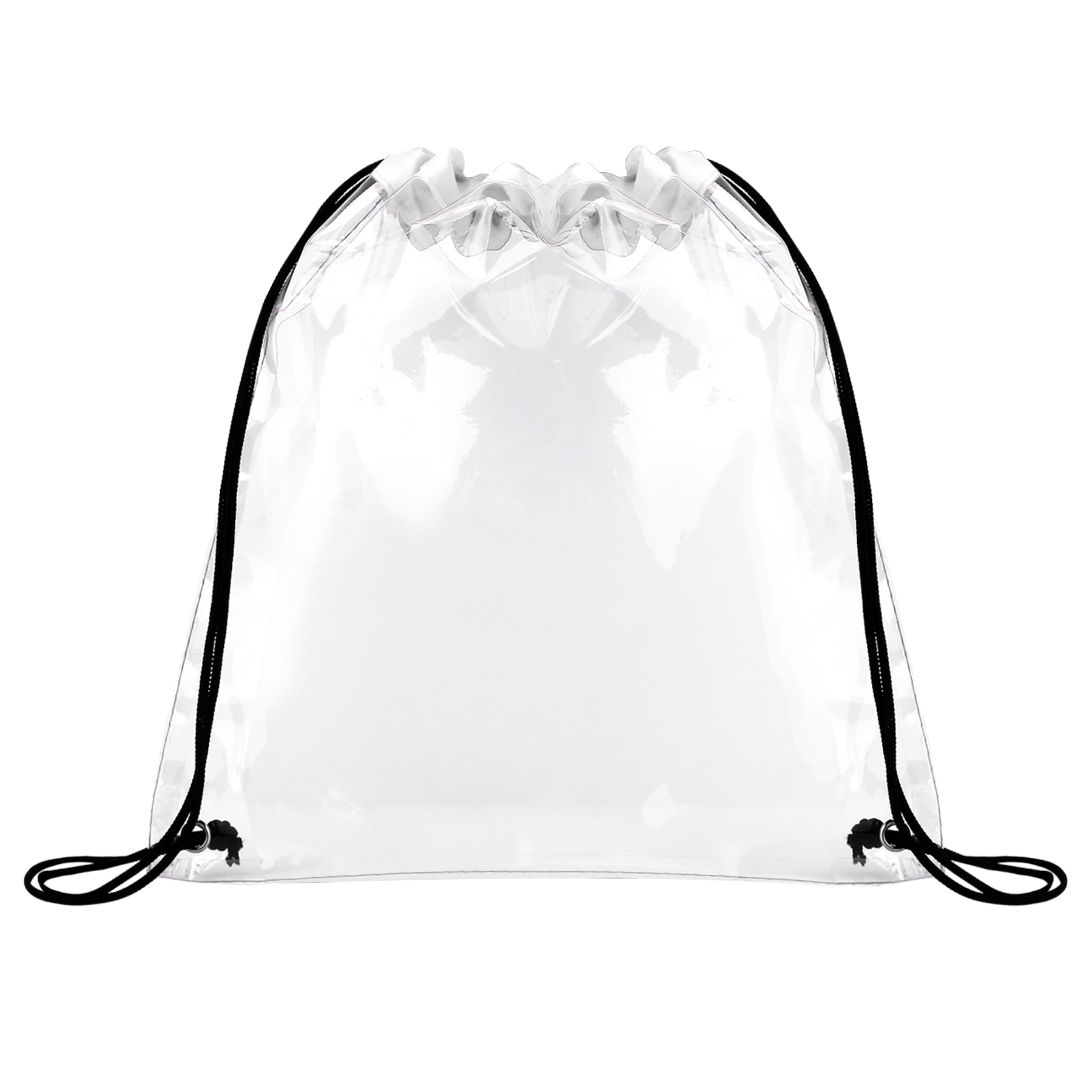 Item# RA1145  –  This clear drawstring backpack is made of clear heavy vinyl material with metal grommets. The drawstring closure compartment can hold clothing, books and bulky items. Dual drawstrings cinch the bag at the top and provide over-the-shoulder or backpack carry. It also complies with NFL stadium security requirements as long as logo size does not exceed 4.5″ tall by 3.4″ wide. It is perfect for sport events, parades, festivals, schools, camps, clubs, concerts! Get a free quote now!
