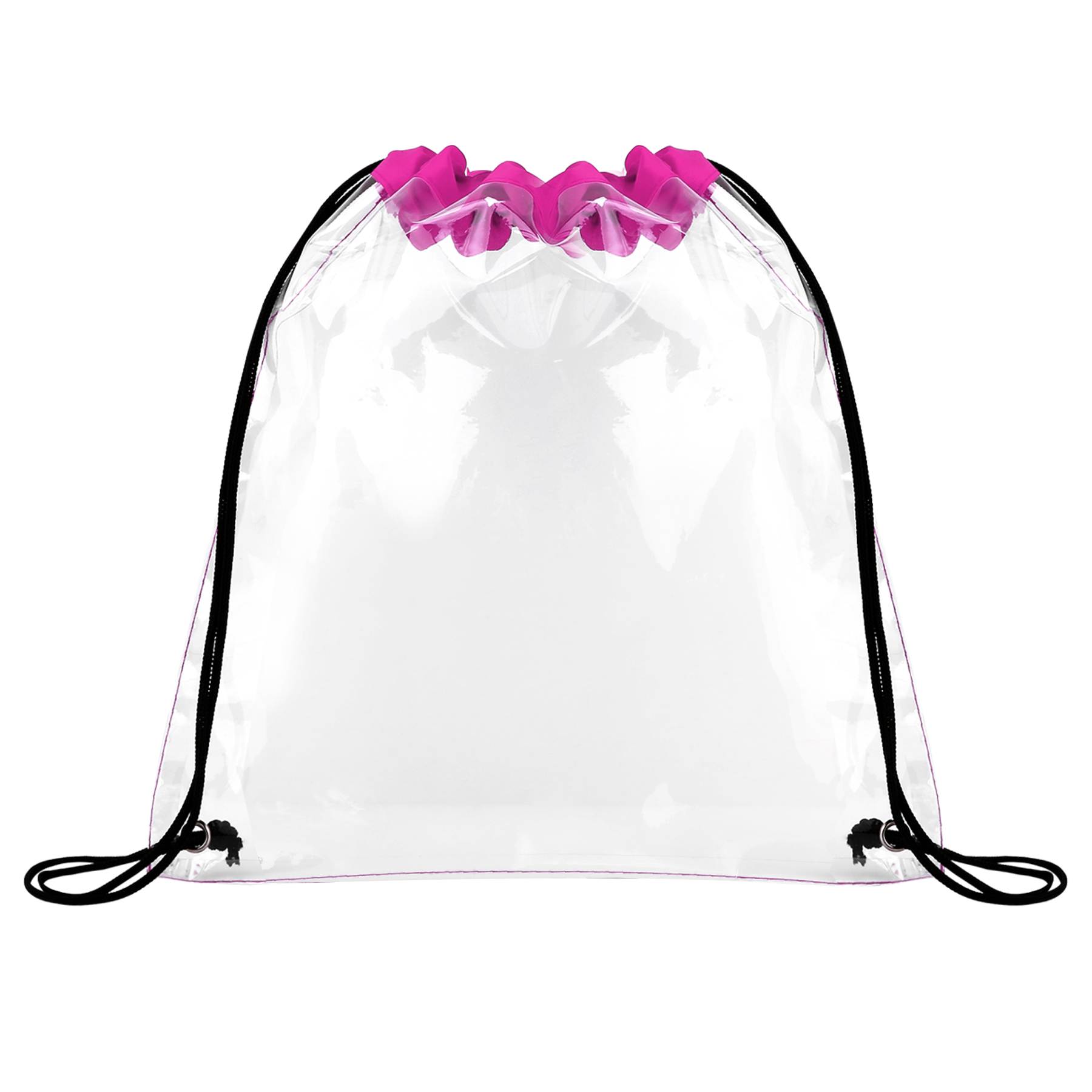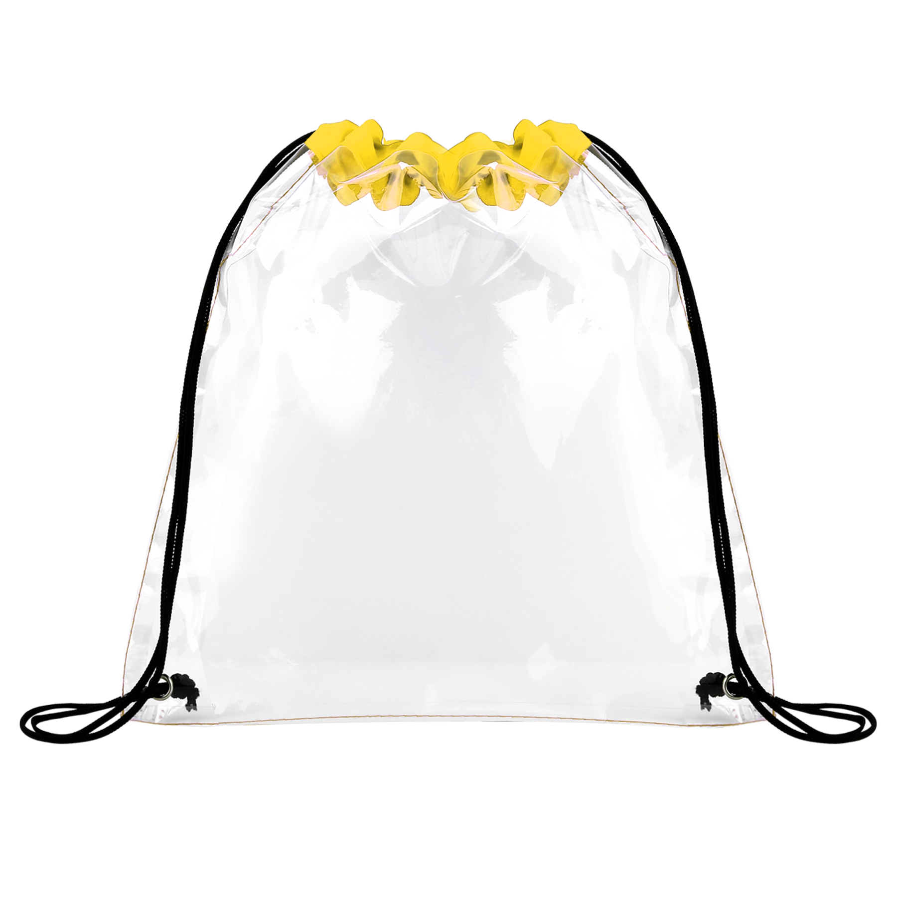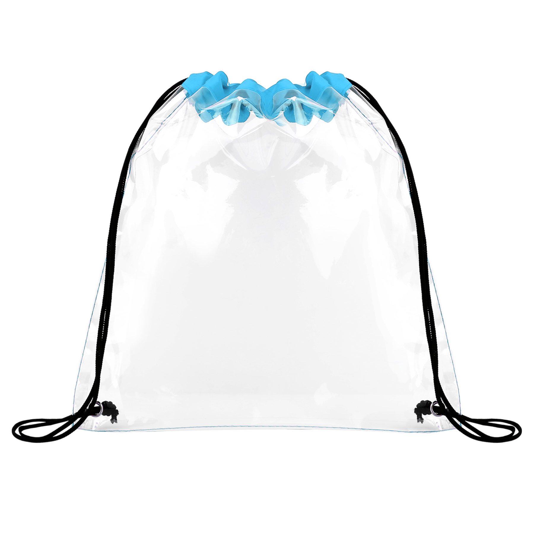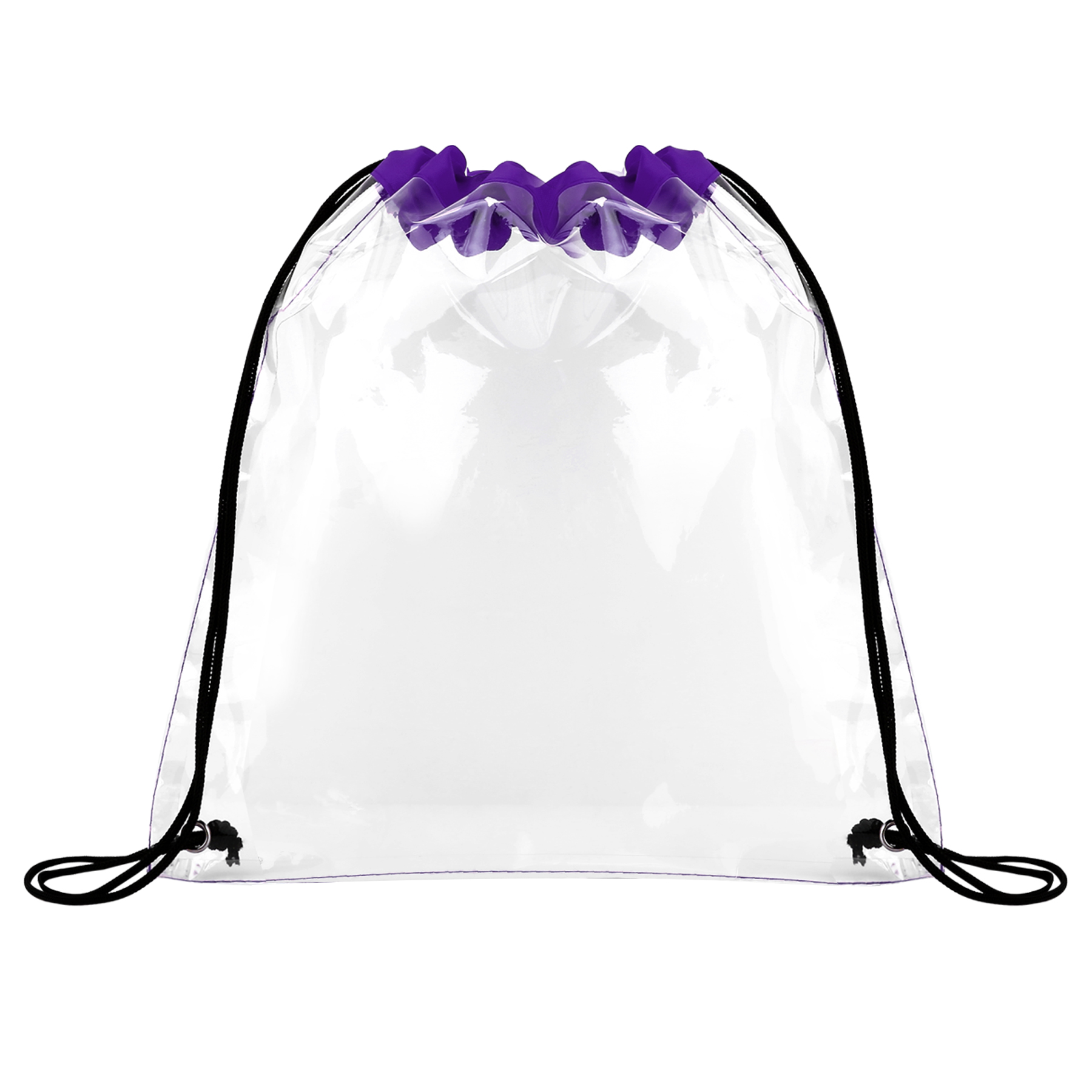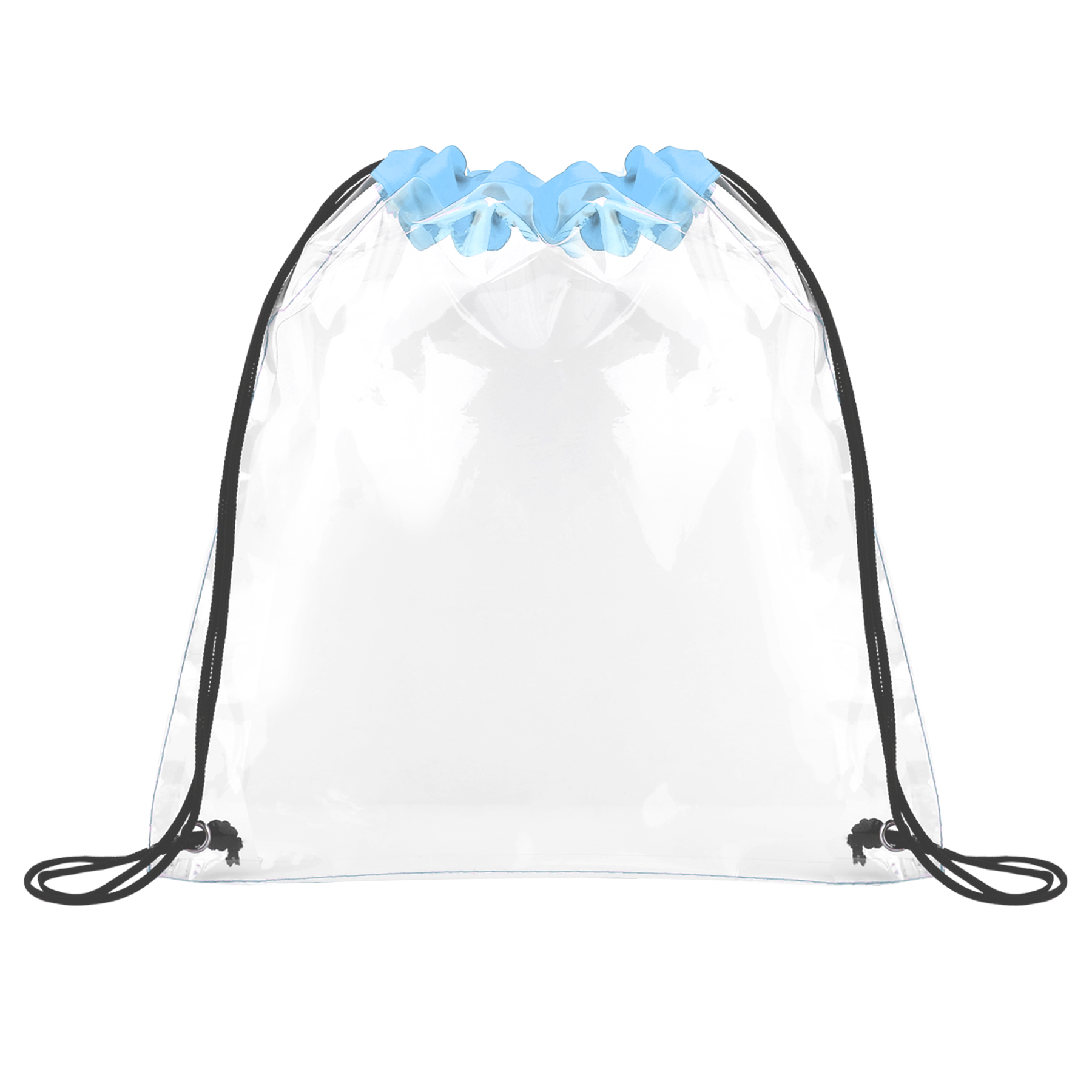 Item# RA1145  –  This clear drawstring backpack is made of clear heavy vinyl material with metal grommets. The drawstring closure compartment can hold clothing, books and bulky items. Dual drawstrings cinch the bag at the top and provide over-the-shoulder or backpack carry. It also complies with NFL stadium security requirements as long as logo size does not exceed 4.5″ tall by 3.4″ wide. It is perfect for sport events, parades, festivals, schools, camps, clubs, concerts! Get a free quote now!
