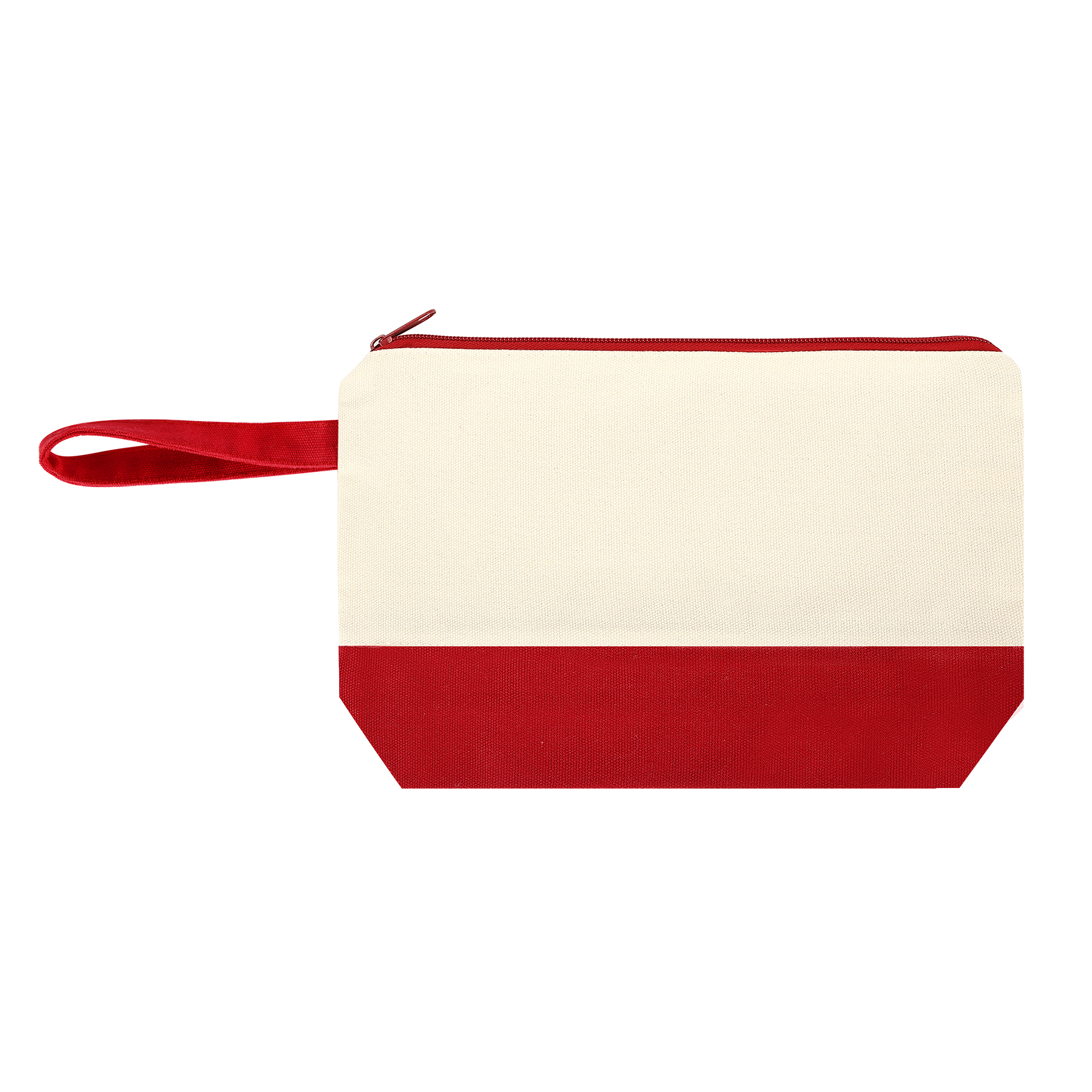 Item# RA1004 –  This cosmetic bag is made of durable, high quality canvas to withstand daily use, making them not only cute and stylish, but practical too. It also features a two-tone color block design for a chic, trendy look, a loop handle for convenient carry, and has a full top zipper closure to ensure that your makeup stays in the bag. Better yet, it is conveniently sized to hold your essentials without being too big and bulky. Get a free quote now!