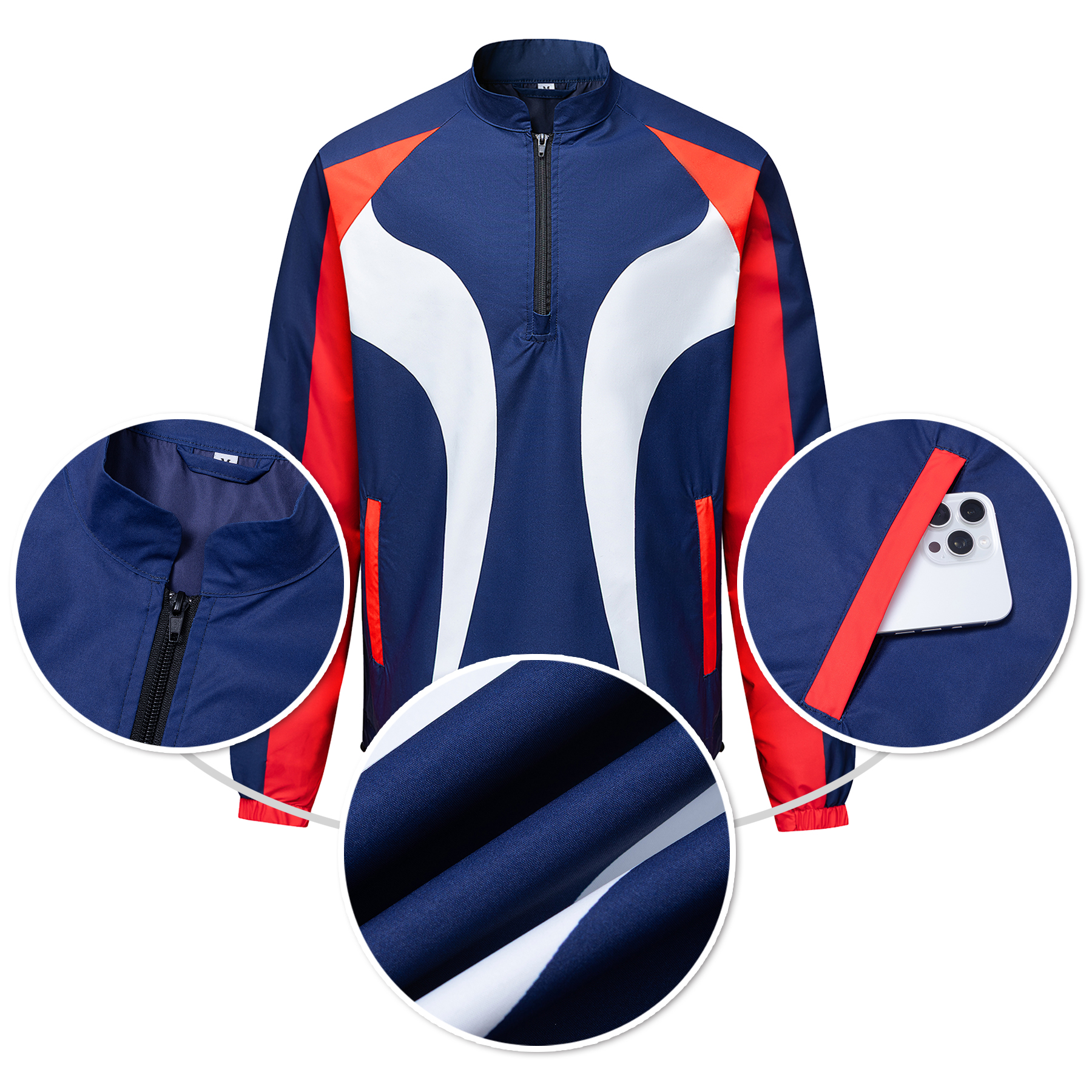 Item# R 734 – Designed for warm-ups, travel, and active movement, this long-sleeve 1/4-zip woven jacket offers reliable performance and a clean athletic look. The lightweight 100% polyester fabric provides a smooth, durable feel, while full-color dye sublimation delivers vibrant, all-over team or brand graphics. The stand collar and quarter-zip allow adjustable ventilation, elastic cuffs keep sleeves in place, and side pockets provide everyday utility. An adjustable hem cord lets you choose between a relaxed or secure fit—making this a smart outer layer for sports teams, clubs, events, and promotional apparel.  Get a free quote now!