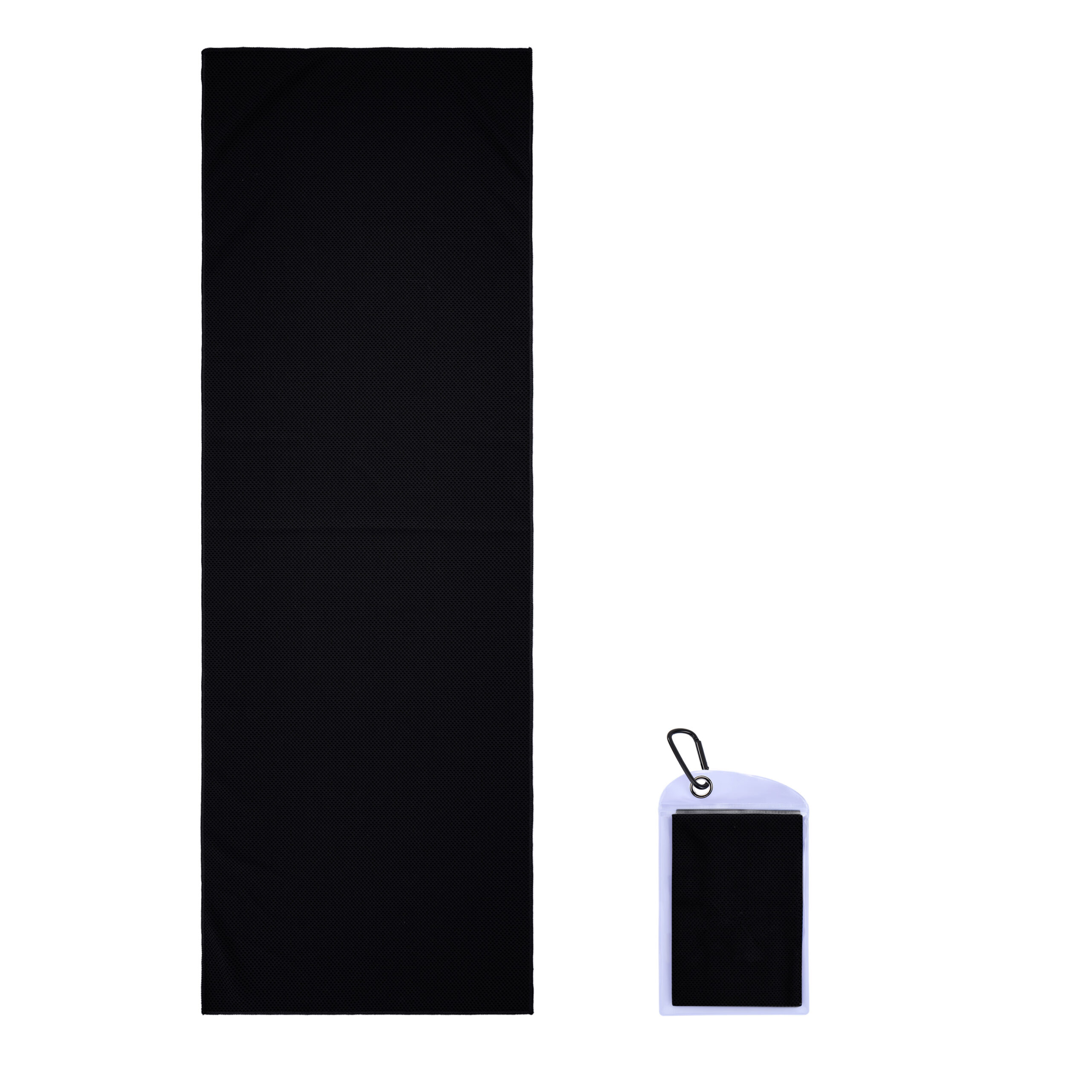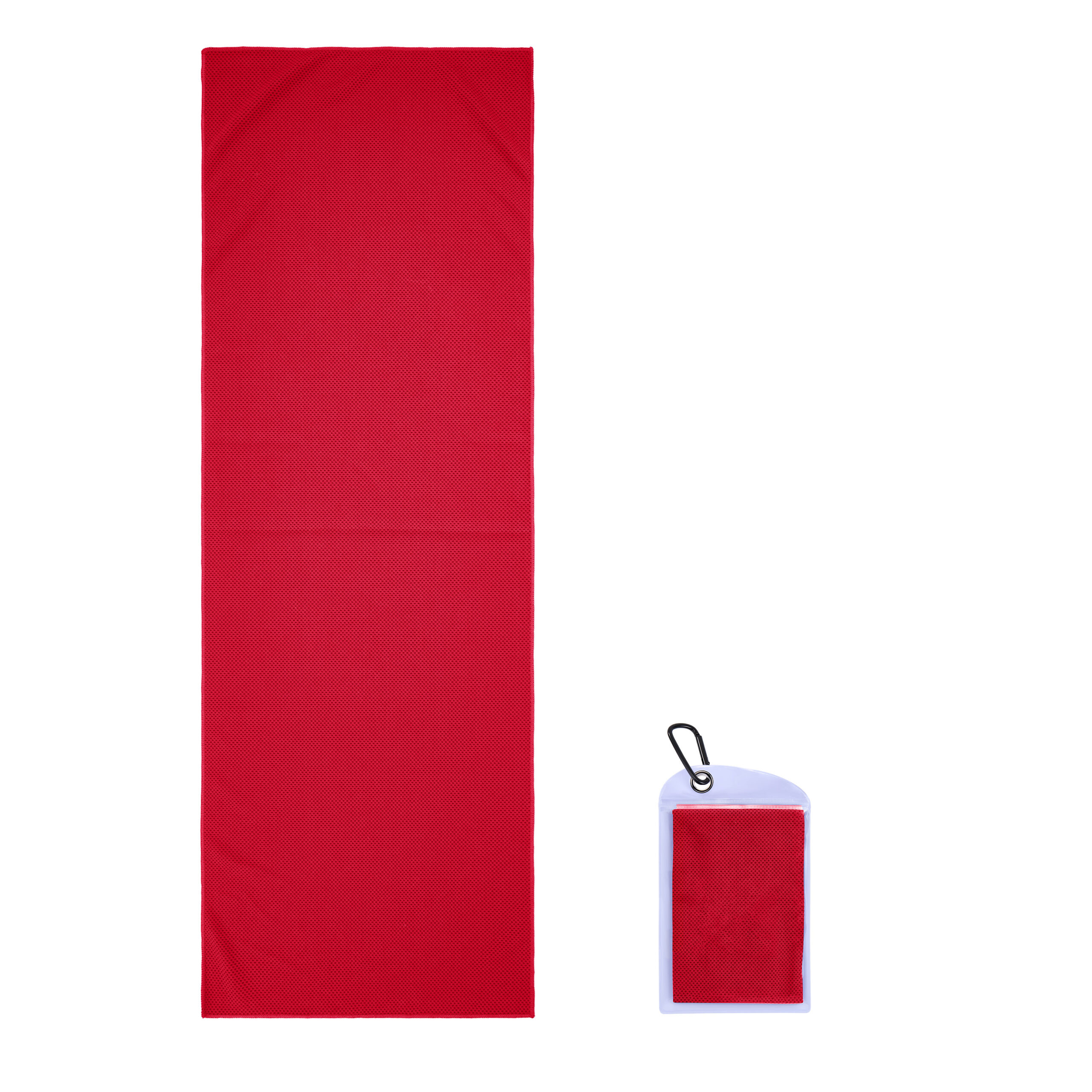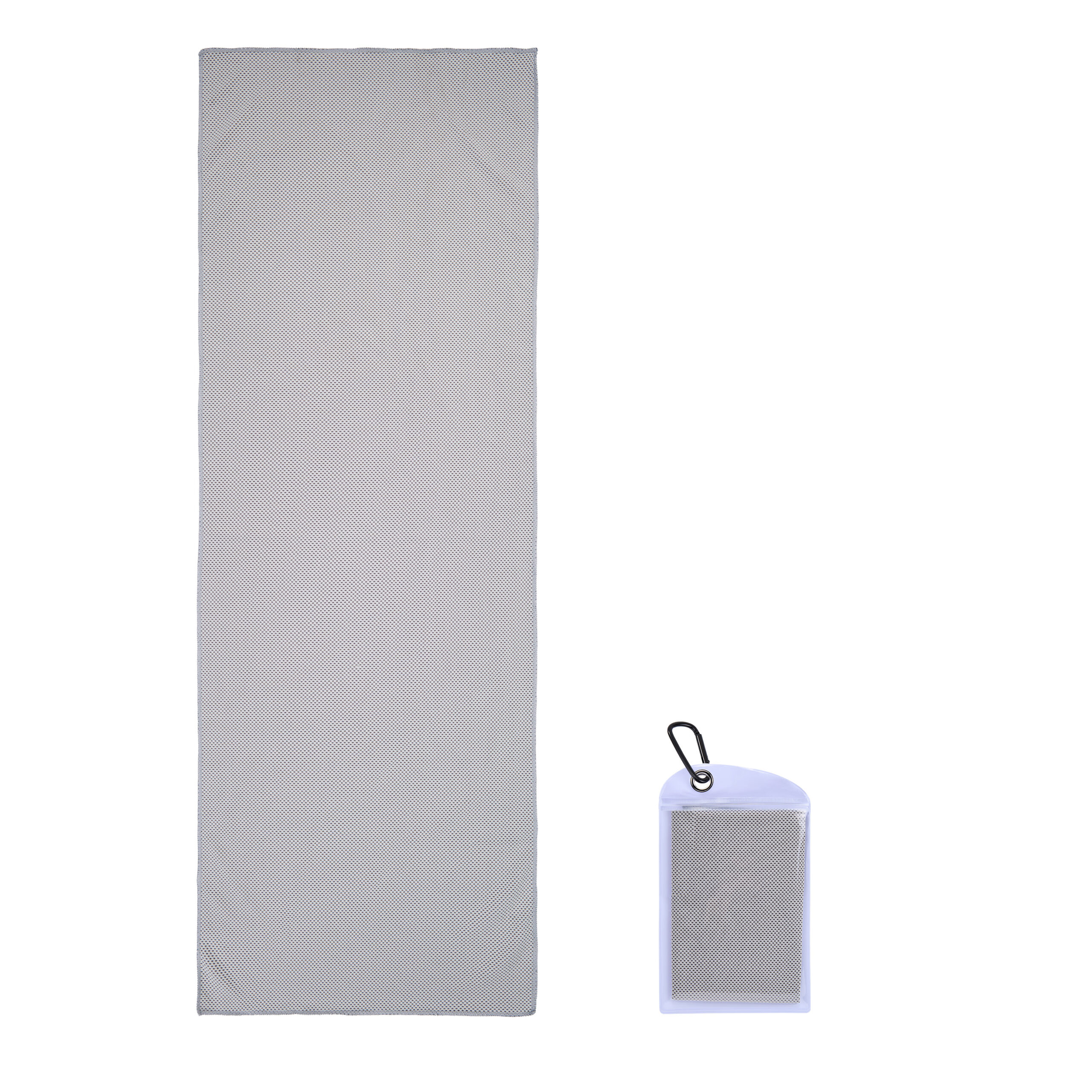Item# R 615 –  Our towels are made of lightweight polyester-160gsm with a mesh structure. PVC Zippered pockets with carabiners are suitable for all kinds of sports occasions. Simply moisten and wring it out to activate it. Keeps you cool in the sun. A variety of colors are available. The pouch measures 5.4 x 9 inches, while the towel expands to 11.8 x 35.5 inches when opened. Printing on pockets and towels are available, printing on the towel is default. Additional cost will need if printing on two locations. Get a free quote now!