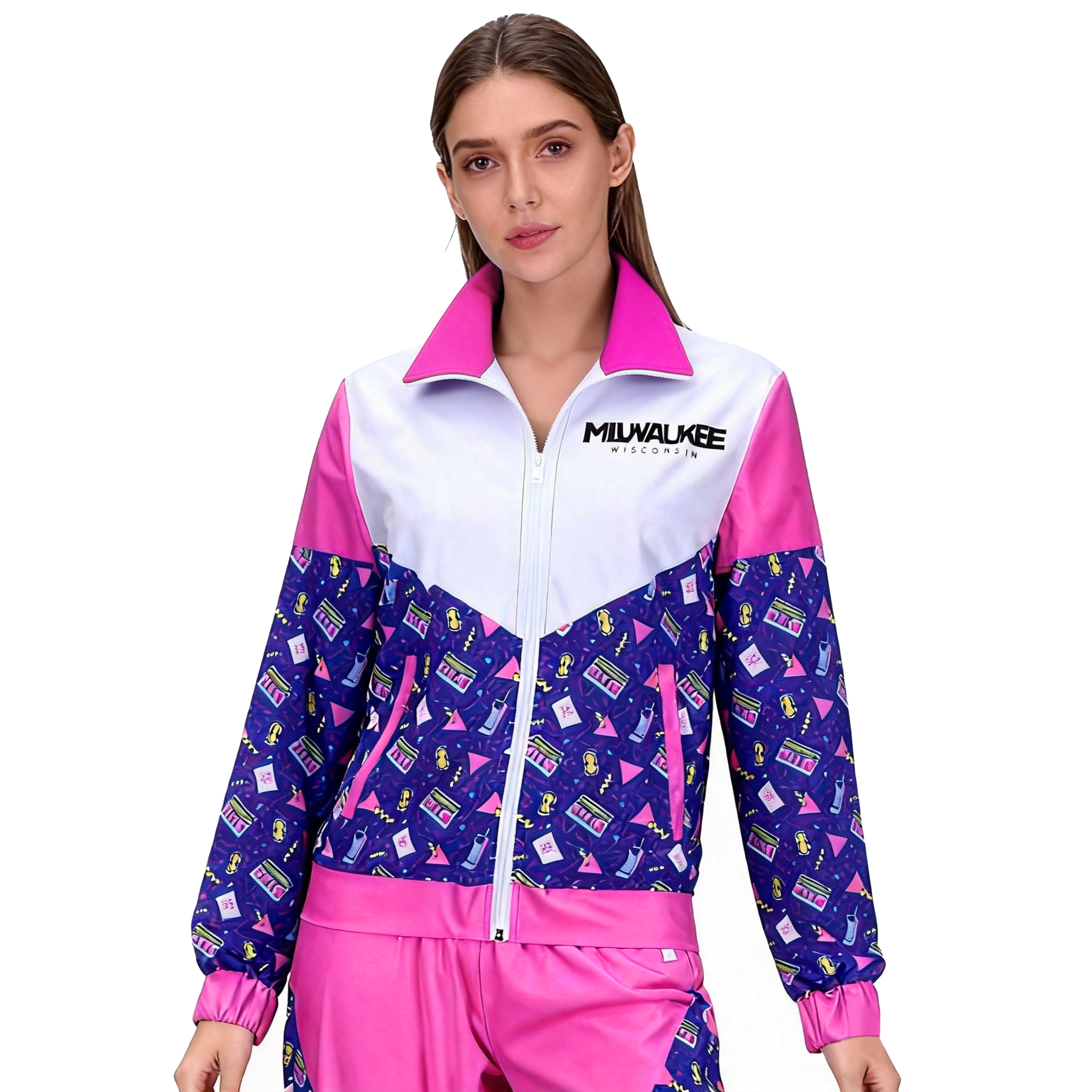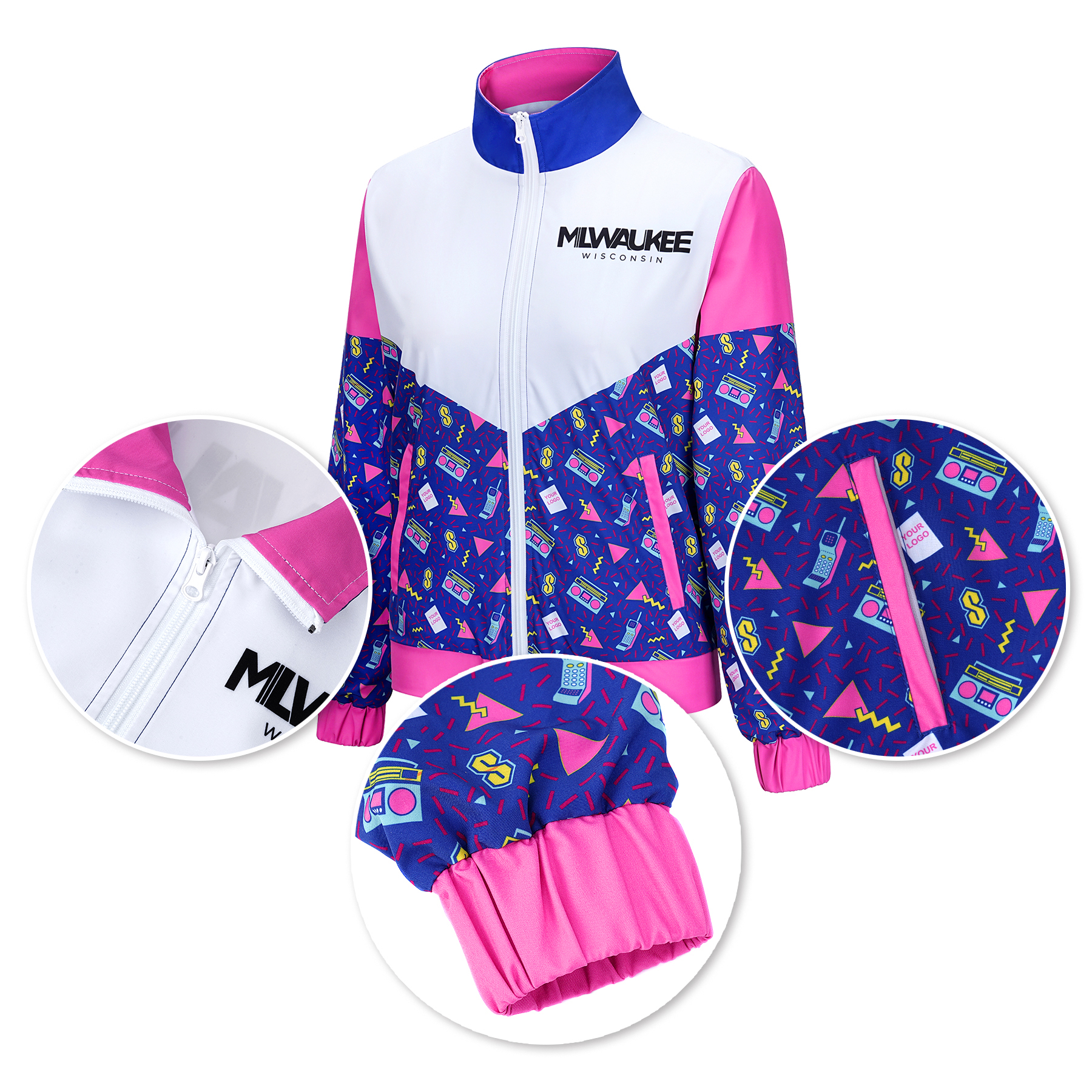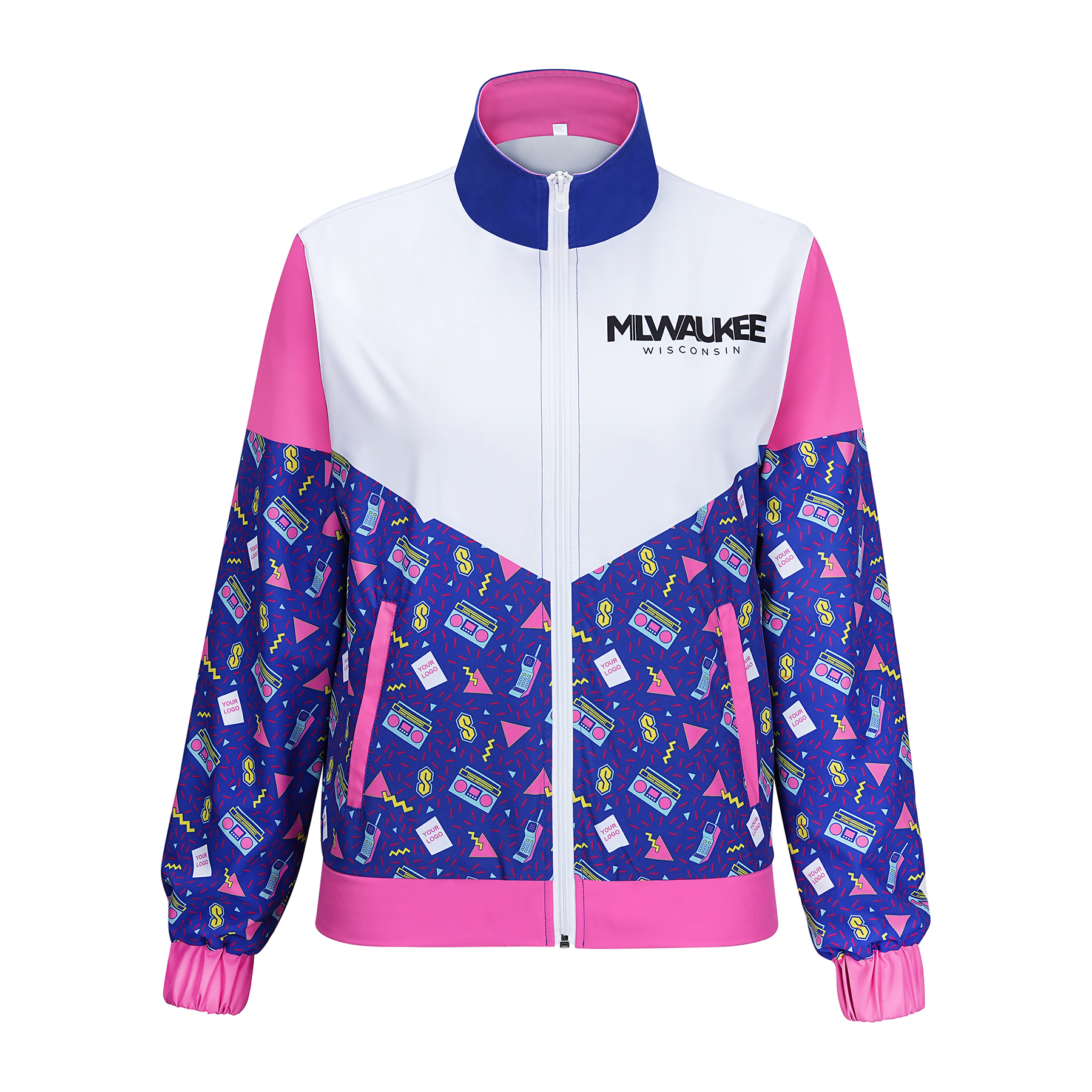 Product Name: Custom Women’s 80s Retro Full Zip Long-Sleeve Windbreaker Ja