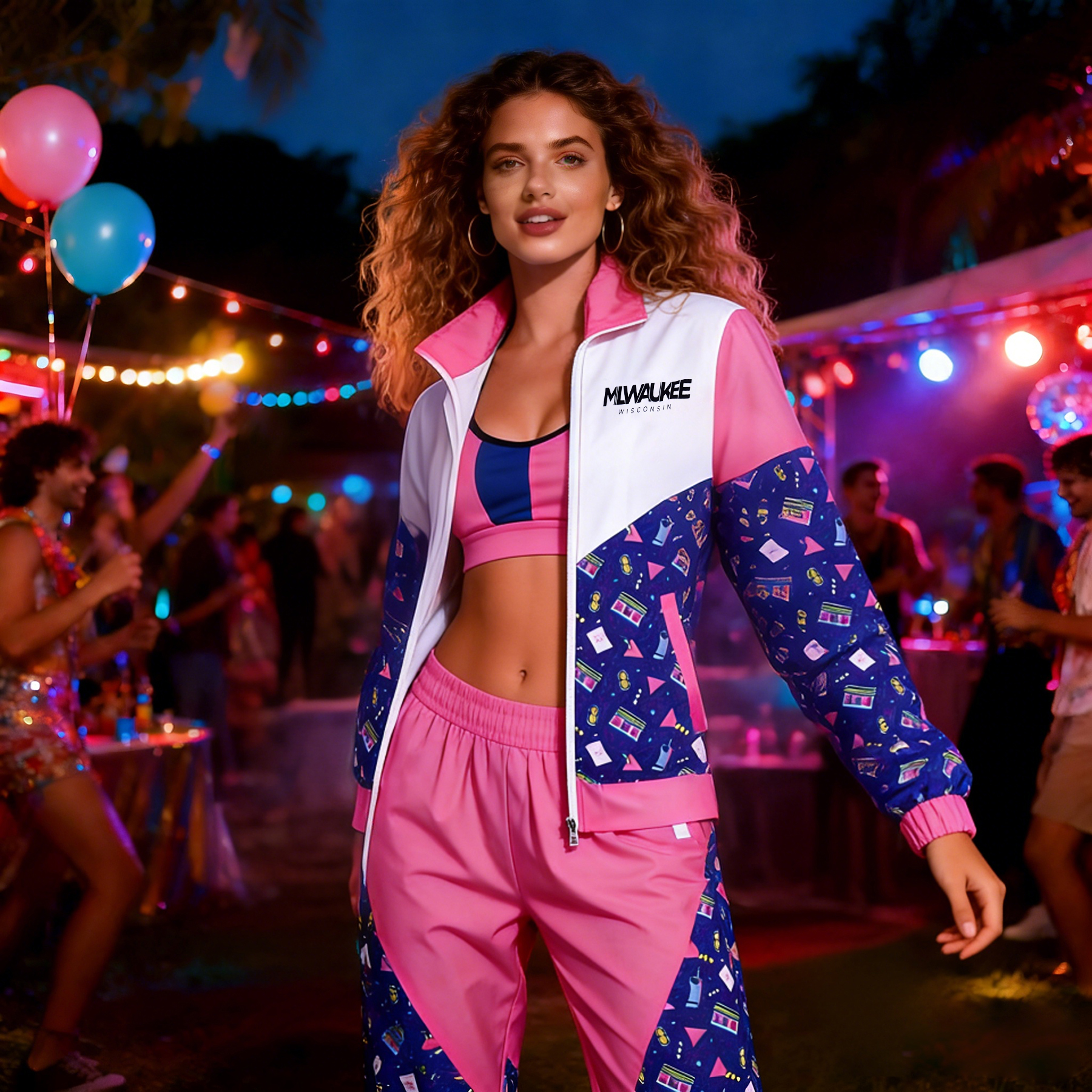 Item# R 731 – Bring energetic retro flair to any setting with this customizable 80s/90s-inspired long-sleeve windbreaker jacket. Made from a lightweight 92% polyester / 8% spandex blend, it offers a soft, breathable, and flexible fit ideal for festivals, theme parties, school events, casual wear, and active lifestyles. The full-zip front, side pockets, and stretch waistband provide comfort and functionality, while full-color sublimation delivers vibrant, all-over designs perfect for logos, artwork, or bold retro patterns. Machine washable and wrinkle-resistant, this jacket is great for cosplay, dance, music festivals, and sporty outdoor events. Optional matching pants available for a coordinated retro look—please refer to the size chart for best fit.  Get a free quote now!