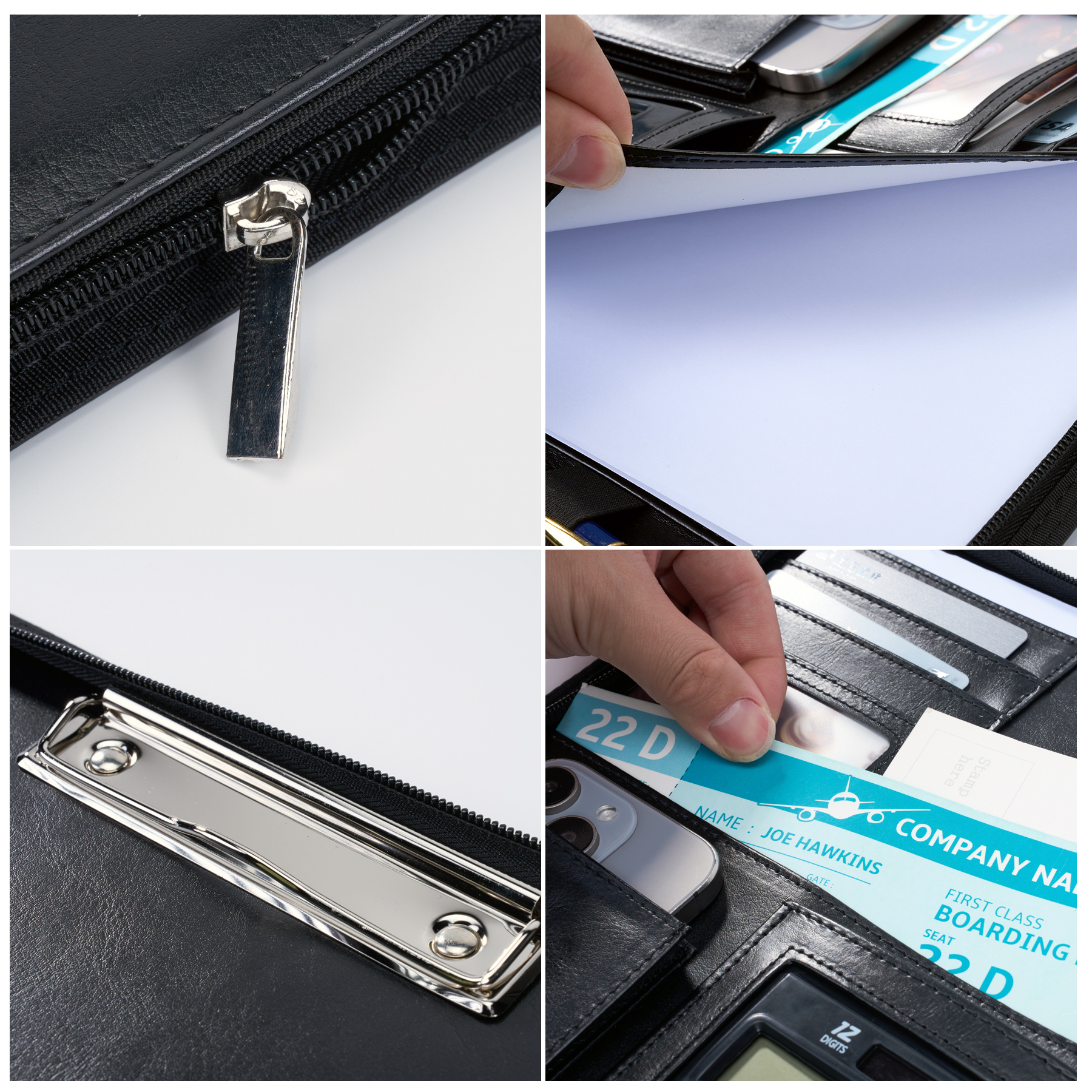 Product Name: Deluxe Zippered PU Leather Padfolio With Custom Logo