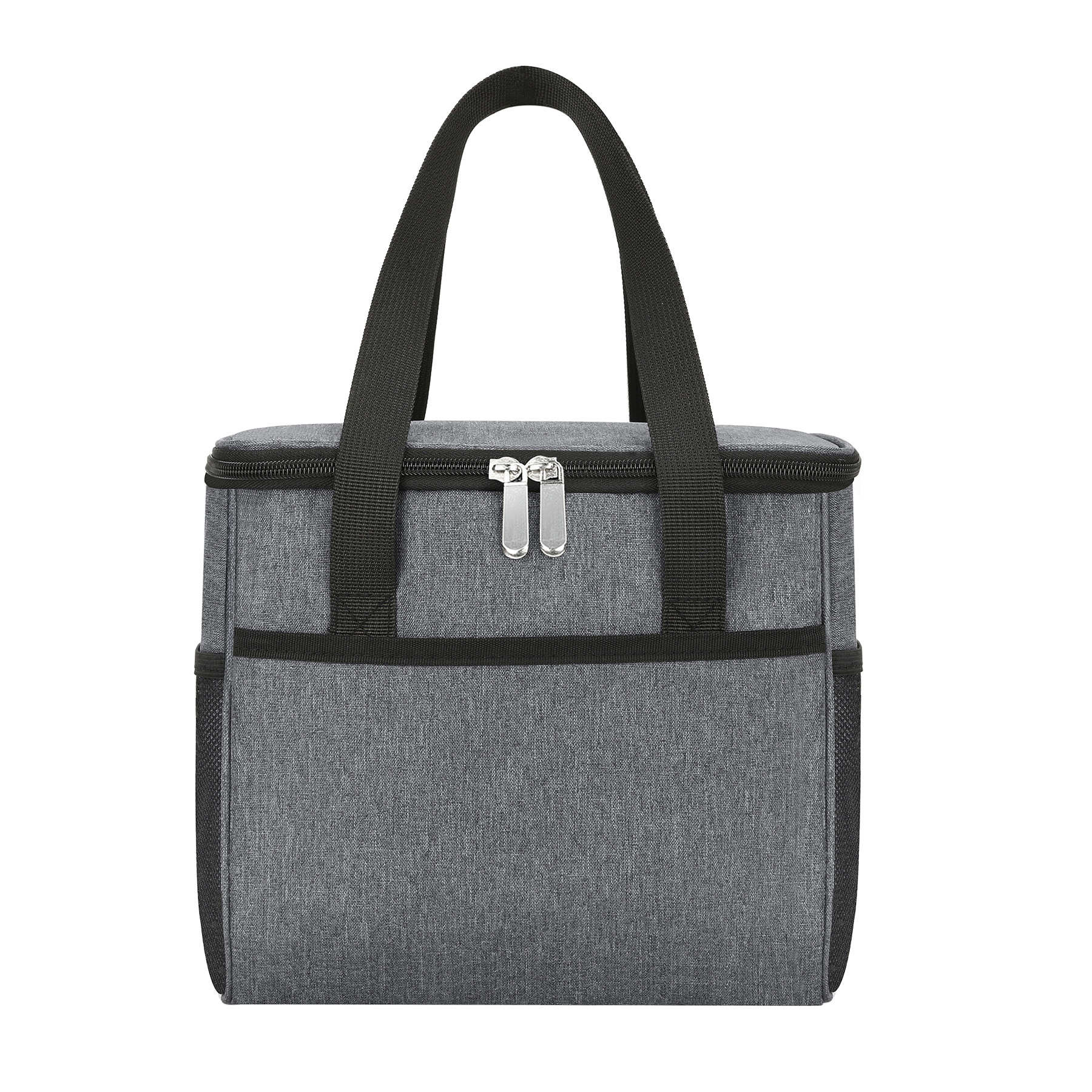 Item# R 181 –  This lunch bag is perfect for daily use and traveling. Made of 300D heathered polyester with premium insulated foil lining, offering reliable insulation to keep your food and beverages warm or cool for hours. It features a zippered insulated main compartment, holding up to 8 cans of beverages. It also has a front pocket and two side mesh pockets for easy access and storage of bottles. A wide opening is convenient to put in or take out your food. Add boning stripes around the side seam to provide better support for the bag’s shape. Dual reinforced woven tape handles are comfortable to carry. It’s reusable and easy to clean. Its spacious size makes it ideal for everyday and everywhere use. The product supports customization and embroidery. Assorted product colors are available. Get a free quote now.