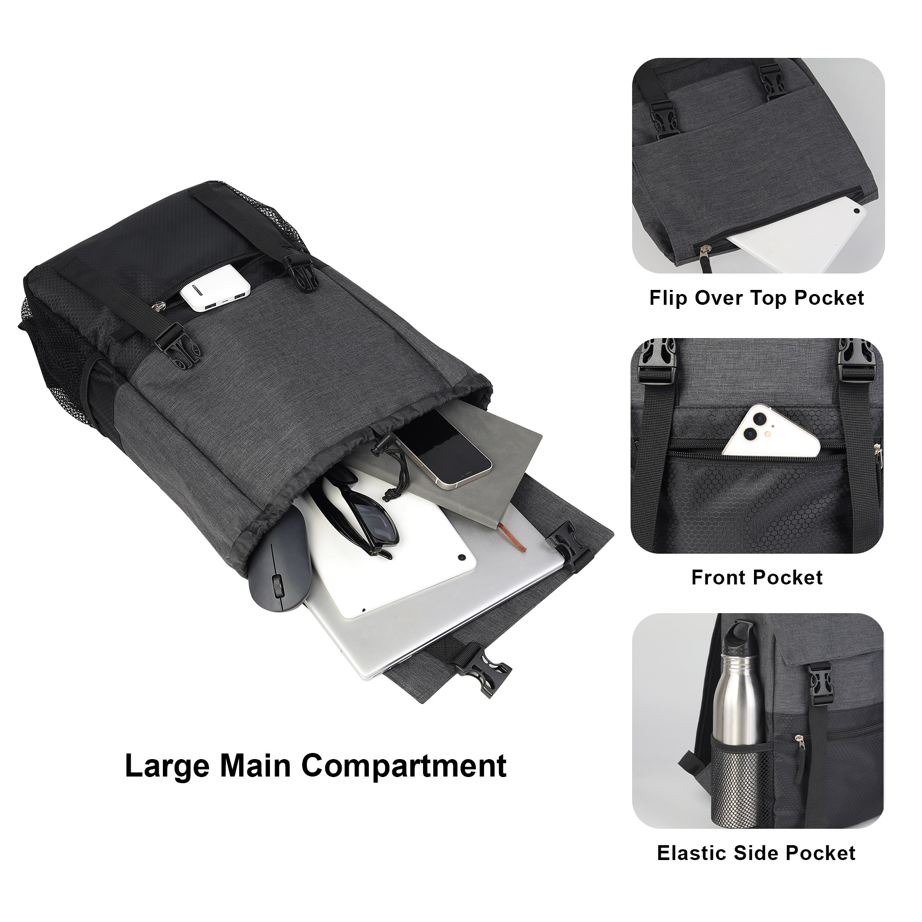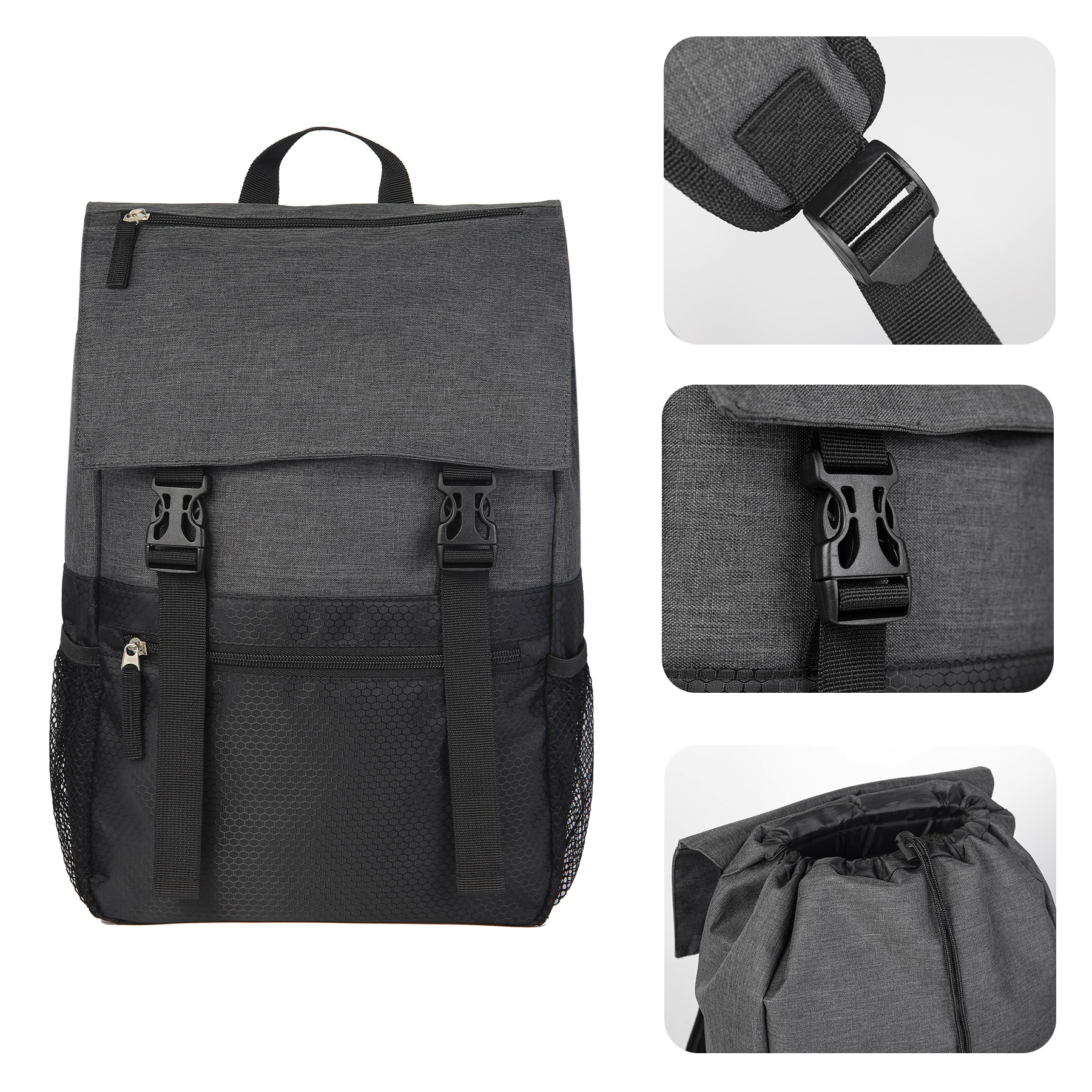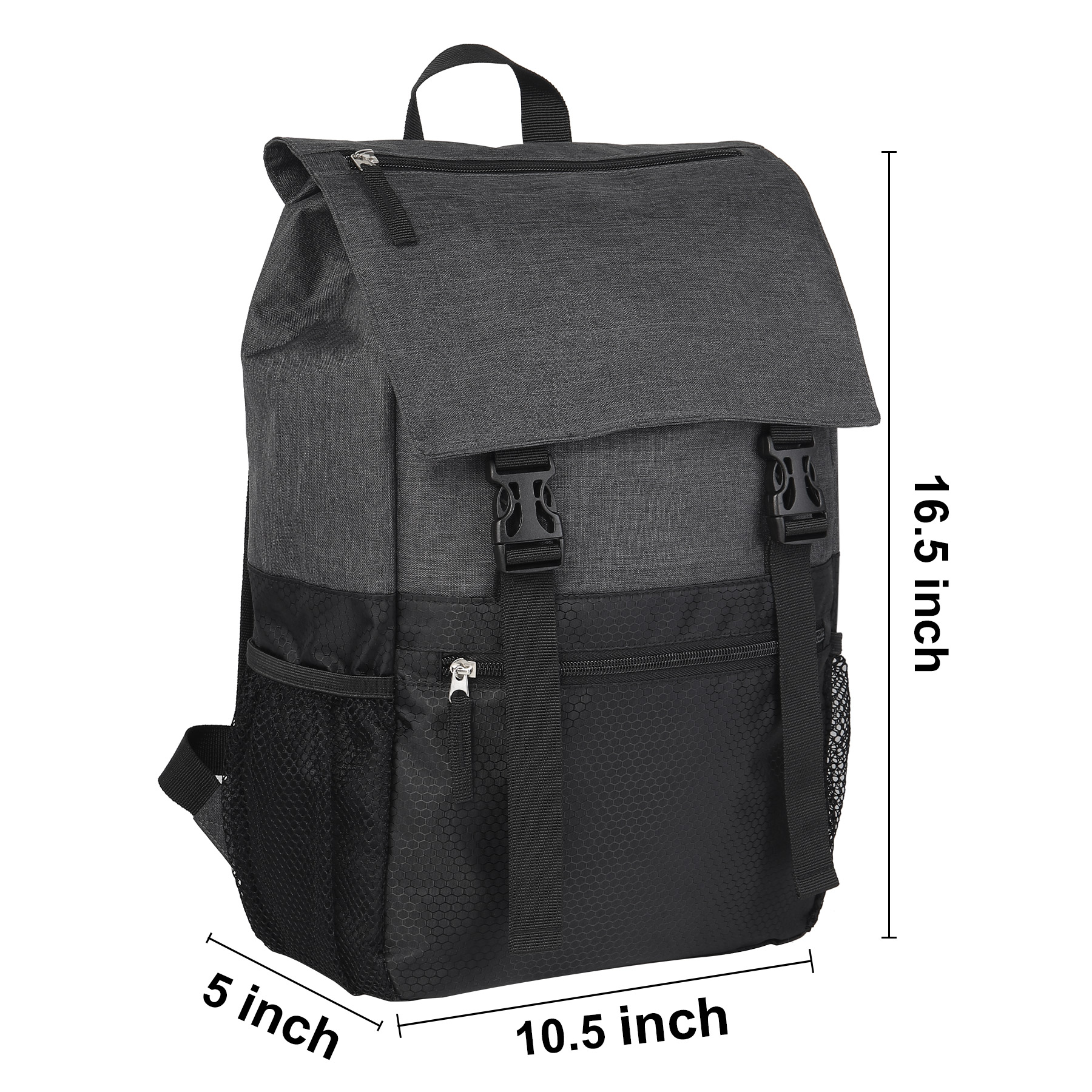 Item# RA1042 –  This personalized rucksack backpack is made from durable 300D heathered polyester. It features an internal padded sleeve that fits laptops up to 15”, ensuring your tech stays safe. The secure plastic buckle closure and flip-over latched main compartment lid provide easy access, complemented by a zippered top pocket that provides extra storage. Two side mesh pockets are ideal for water bottles or umbrellas, while the zippered front pocket keeps your valuables secure. Perfect for hiking, camping, school, or daily use, this backpack combines style with functionality. Get a free quote now!