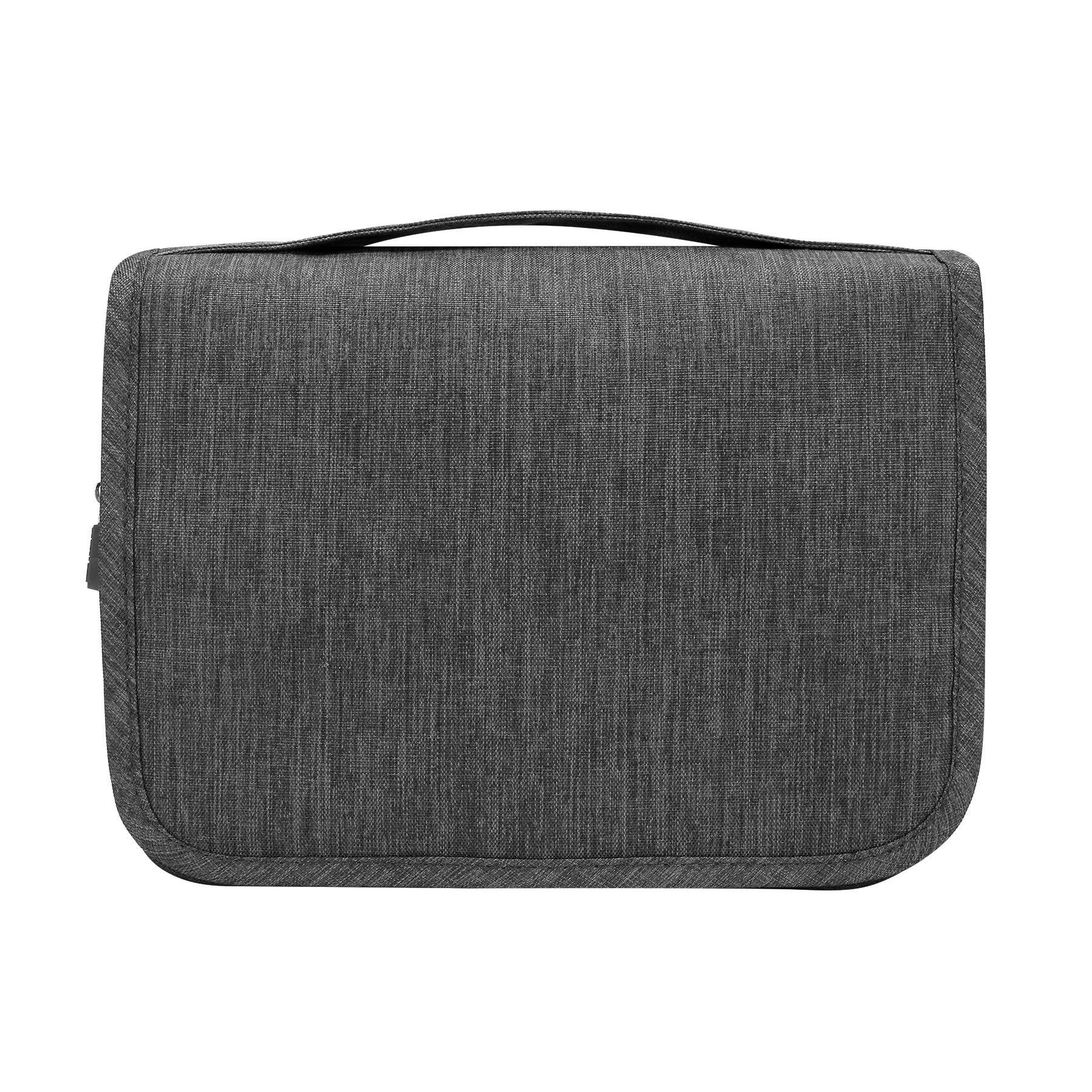 Item# RA1011 – This carry all toiletry travel bag is made of upgraded cationic 300D heathered polyester, and the surface is waterproof. This large-capacity toiletry bag allows you to easily store makeup and toiletries. The main compartment with four internal organizing pockets and mesh panel is suitable for storing shower gel , facial cleanser, toothpaste, toothbrushes, small cosmetics and compressed towels. The plastic hanger and hook-and-look closure on the handle make for easy use and display. Get a free quote now!