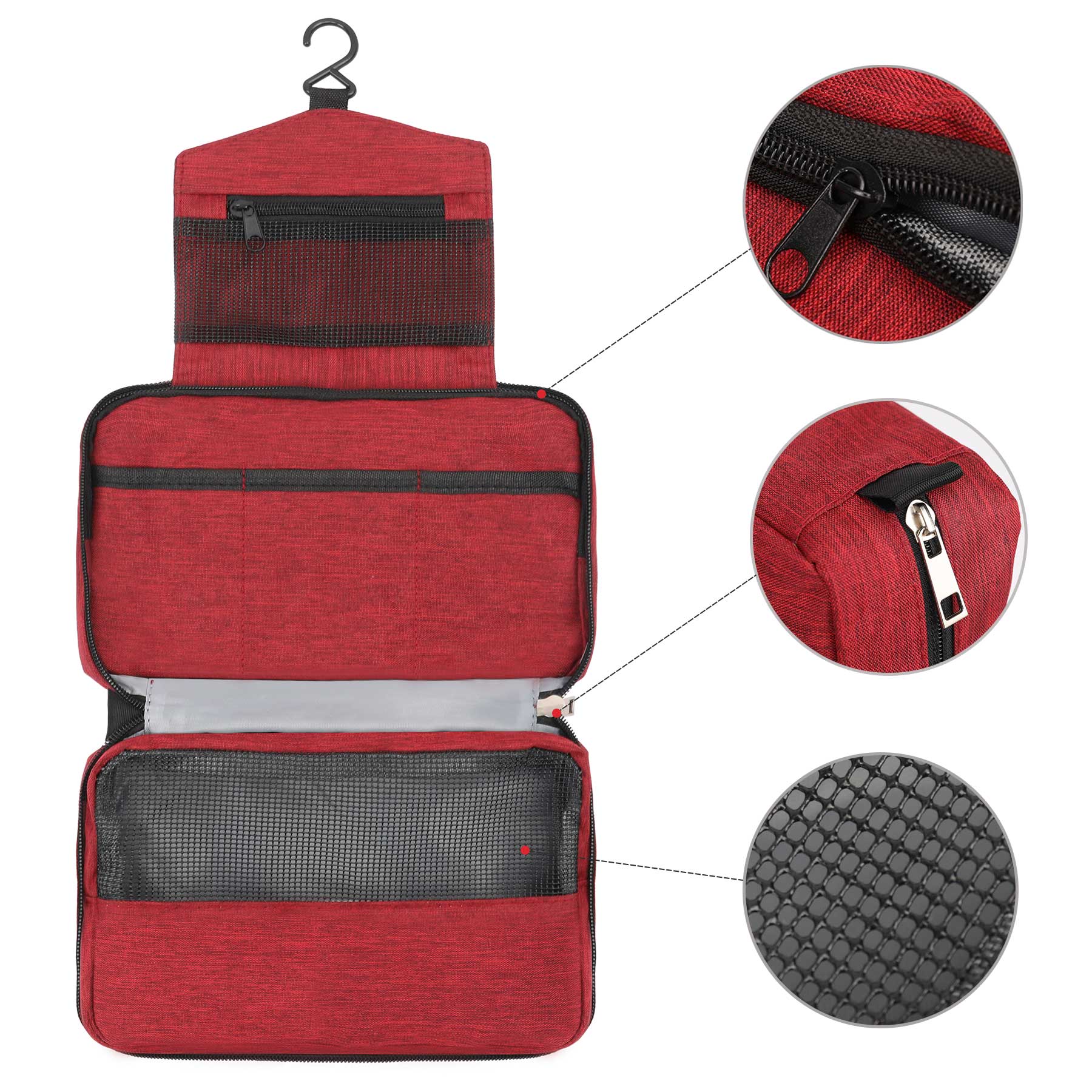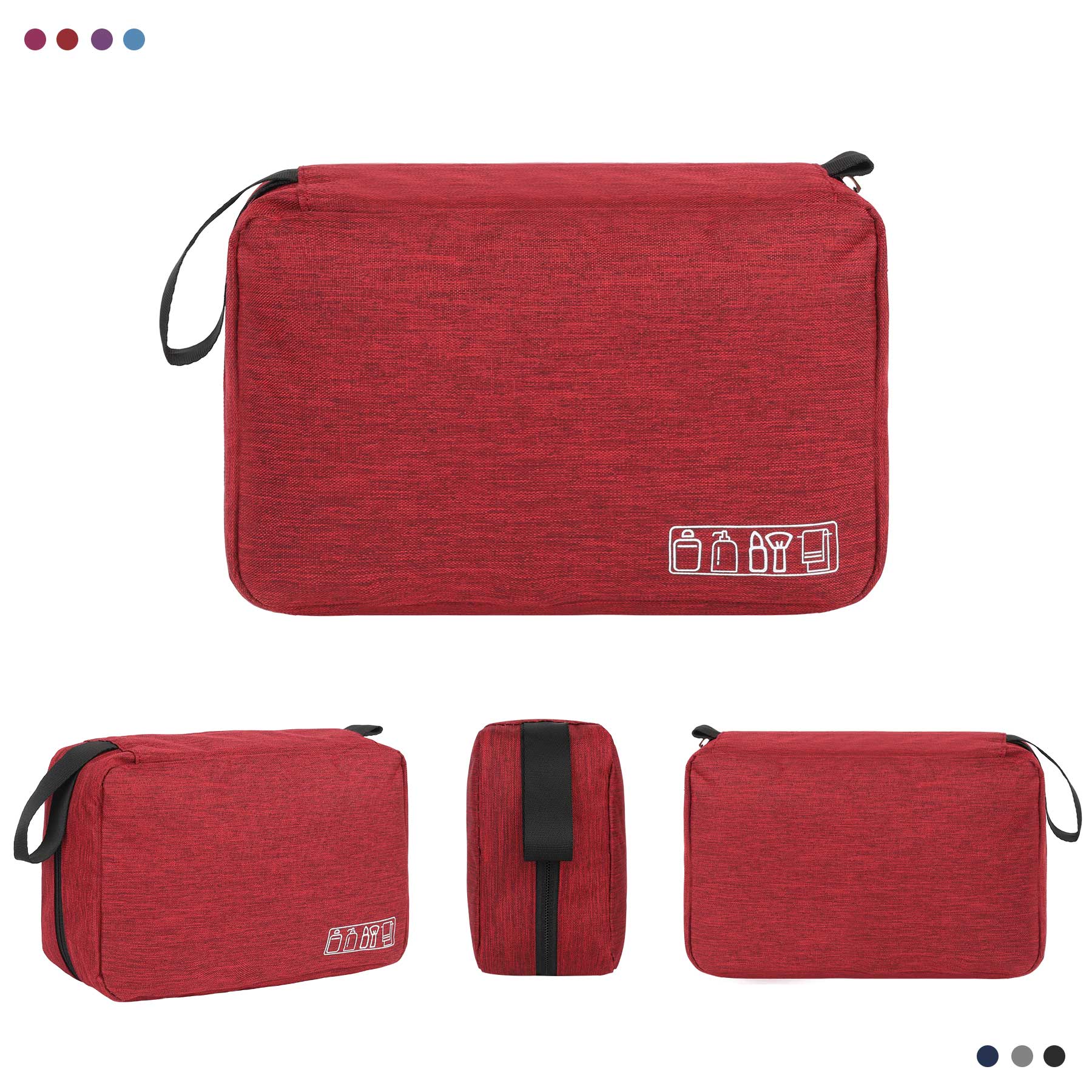 Item# RA1013 – This toiletry bag is made from durable 300D polyester with a waterproof surface to help protect contents from moisture and spills. Its spacious design provides ample room for toiletries and personal items during travel. The zippered main compartment is perfect for storing larger essentials like shampoo or shower gel, while additional pockets keep items like toothpaste, toothbrushes, and cosmetics neatly organized. A built-in hanger hook allows the bag to be hung on a towel bar or shower rod for easy access. Ideal for employees, clients, or anyone always on the go, this travel-friendly toiletry bag combines practicality with convenience.Get a free quote now!