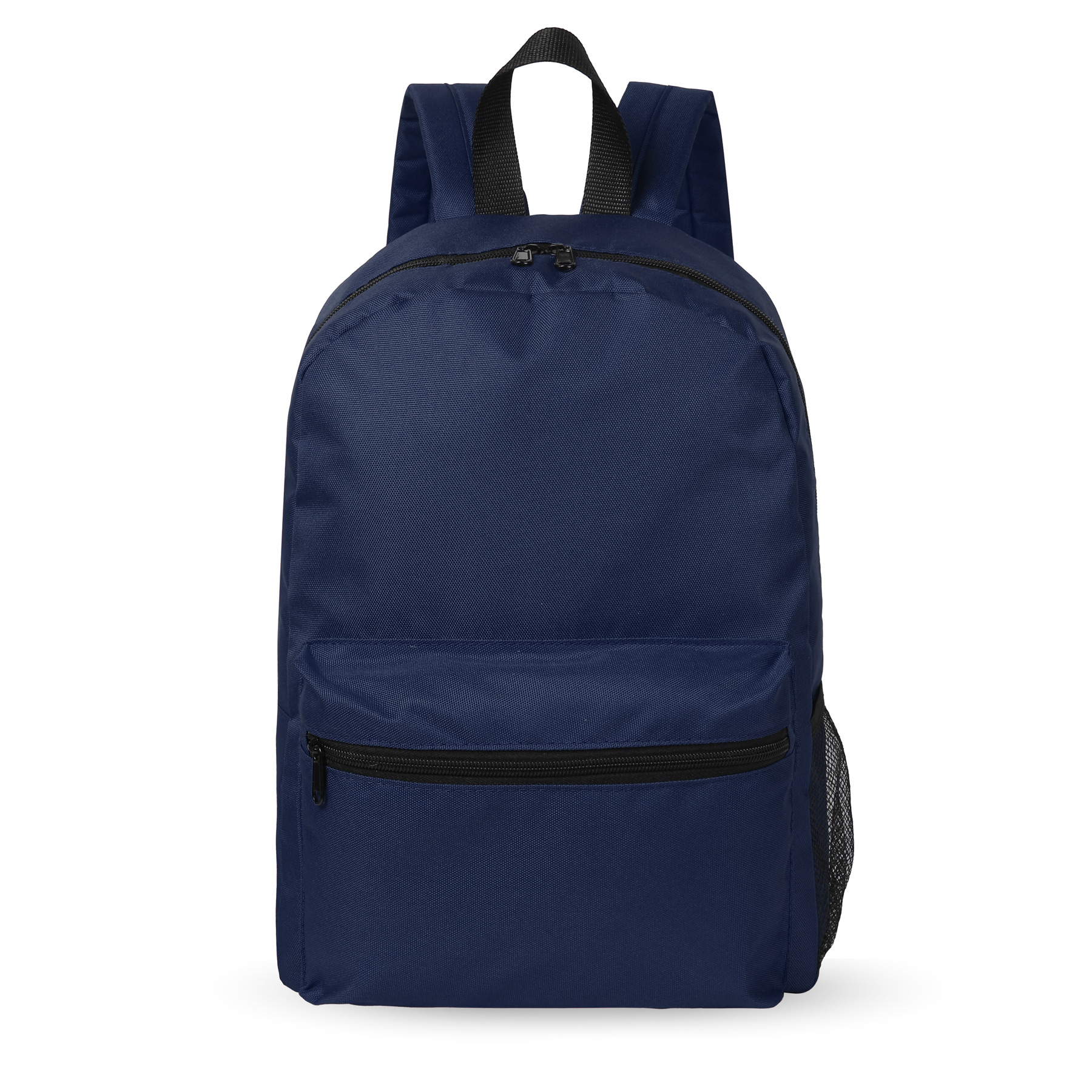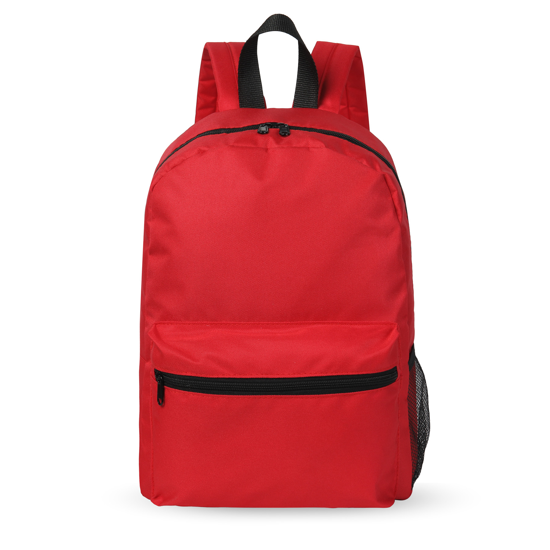 Item# RA1055 –  This classic backpack is made of water-resistant, high-density 600D polyester. It features a convenient top grab handle and adjustable padded shoulder straps. The roomy main compartment is ideal for a laptop, books, and notebooks. It offers durable performance while remaining lightweight. The zippered front pocket provides easy access to small items like phones, pens, tissues, and snacks, while the side net pocket is perfect for a water bottle or other essentials. Additionally, this fluorine-free (PFC-free) backpack complies with all U.S. safety standards, ensuring it is non-toxic and safe. It is great for daily use, travel, hiking, school, sports, camping, and outdoor activities. Adding a custom logo to the backpack makes it an excellent promotional item for year-round brand exposure. Get a free quote now!
