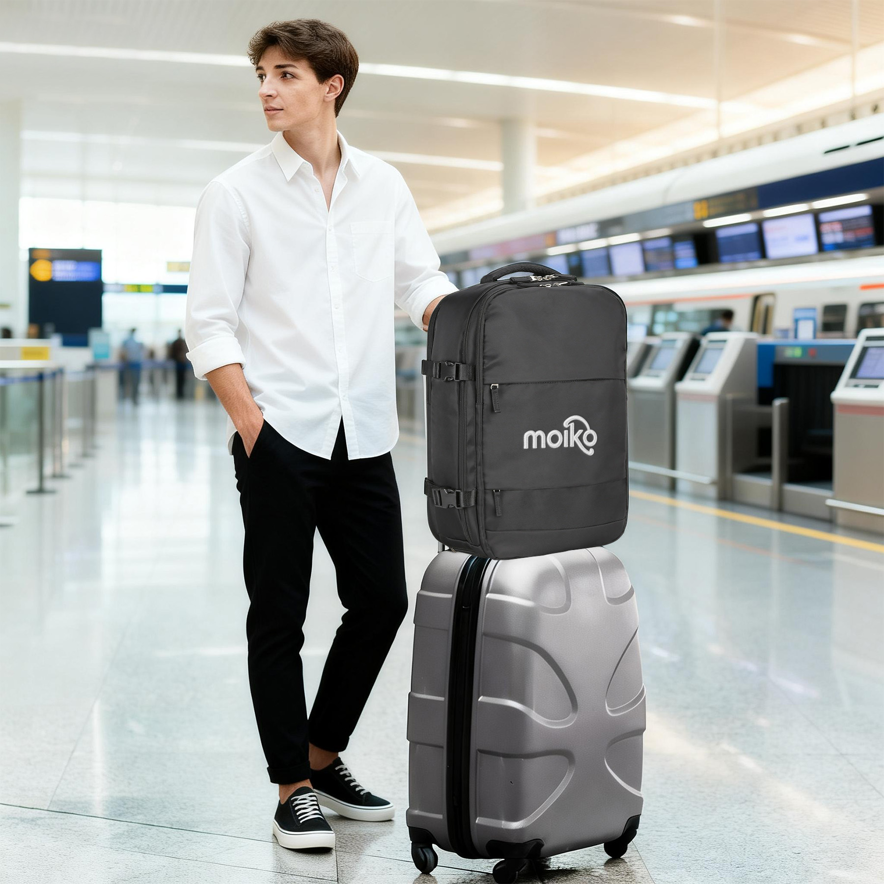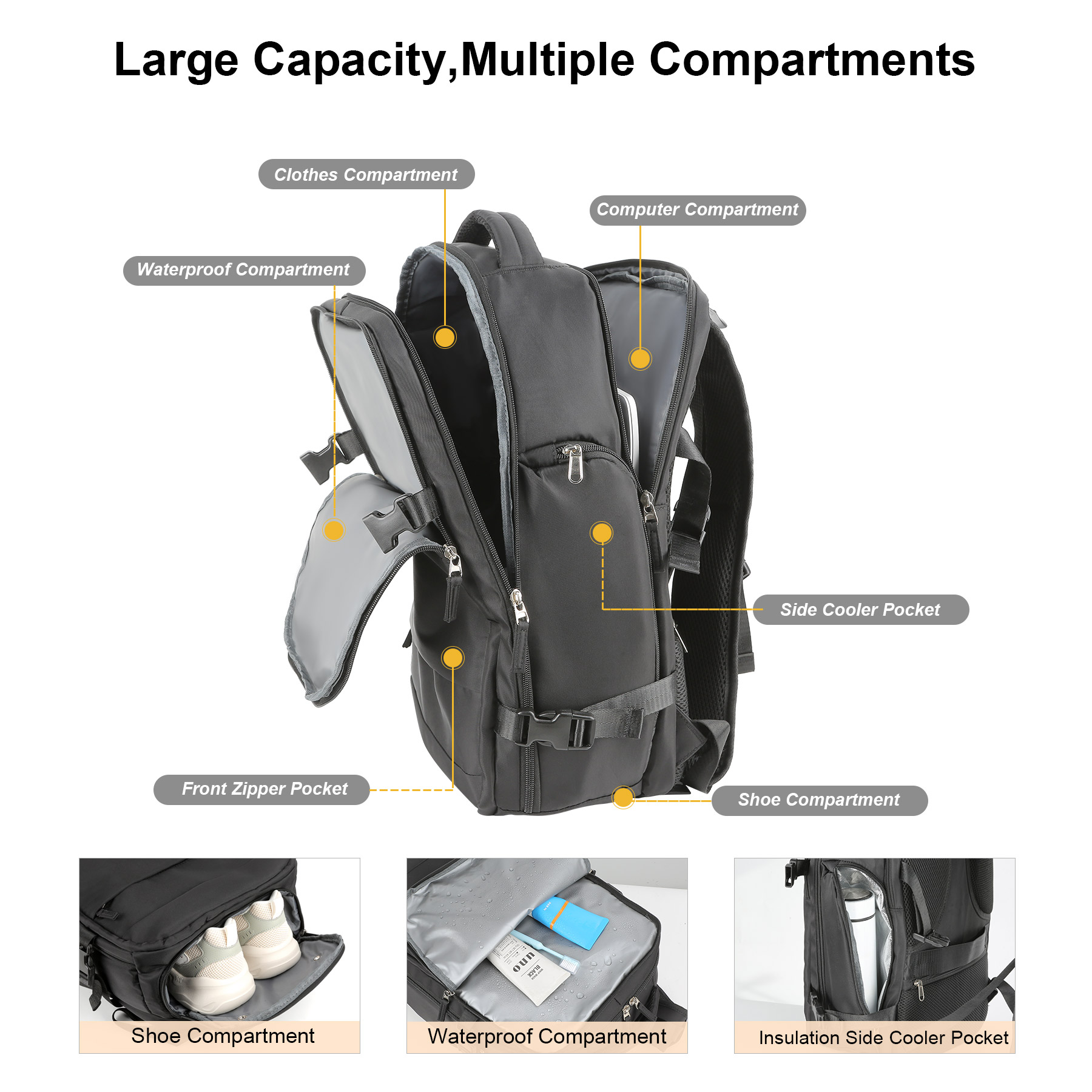 Item# RA1043 – The perfect travel companion, this carry-on backpack offers convenience and organization for every journey. Designed with multiple compartments, it provides ample space for clothes, toiletries, a 15.6 inch laptop, and accessories, ensuring everything stays easily accessible. It features a 180-degree opening, allowing you to open it fully and expand it like a travel suitcase, making it easy to pack and unpack quickly and efficiently. Crafted from water-resistant fabric, it includes a waterproof compartment, a dedicated shoe compartment, a side insulated cooler pocket, a back pocket for valuables, and a trolley sleeve on the back. With padded straps and a back panel for comfort, it’s compact enough to fit in overhead compartments, making it ideal for business trips, short trips, or weekend getaways for both men and women. Get a free quote now!