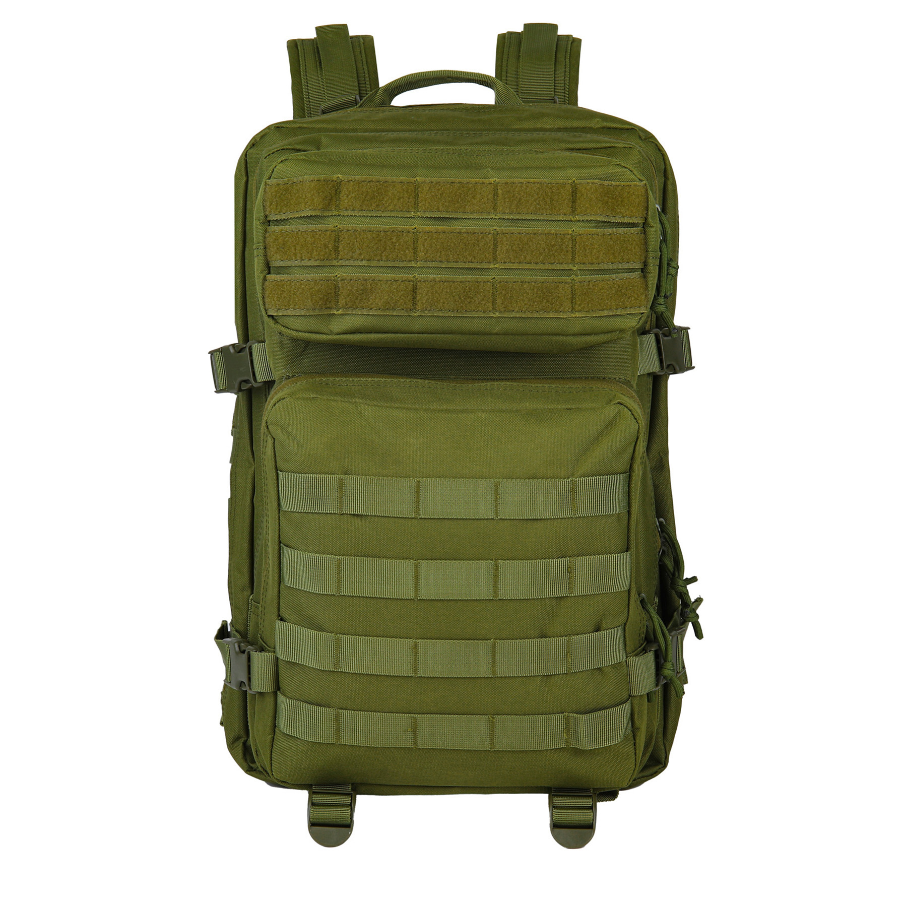 Item# R 602 – This military-style backpack is great for outdoor enthusiasts and is ideal for hunting, hiking, camping, traveling, fishing, range shooting, and more. It is made of water-resistant, high-density 900D Oxford fabric and has a 45L capacity with plenty of small and large compartments for versatile storage options. It features a heavy-duty handle, the back pocket for valuables or daily necessities, ventilated padding back panel and shoulder straps, utility-style cord pulls, and a MOLLE system for attaching additional tactical pouches or gear as a 3-day assault pack. Choose your style and add a custom embroidered logo to this perfect promotional item. It’s great for law enforcement, military veterans, hunters, and more! Get a free quote now!