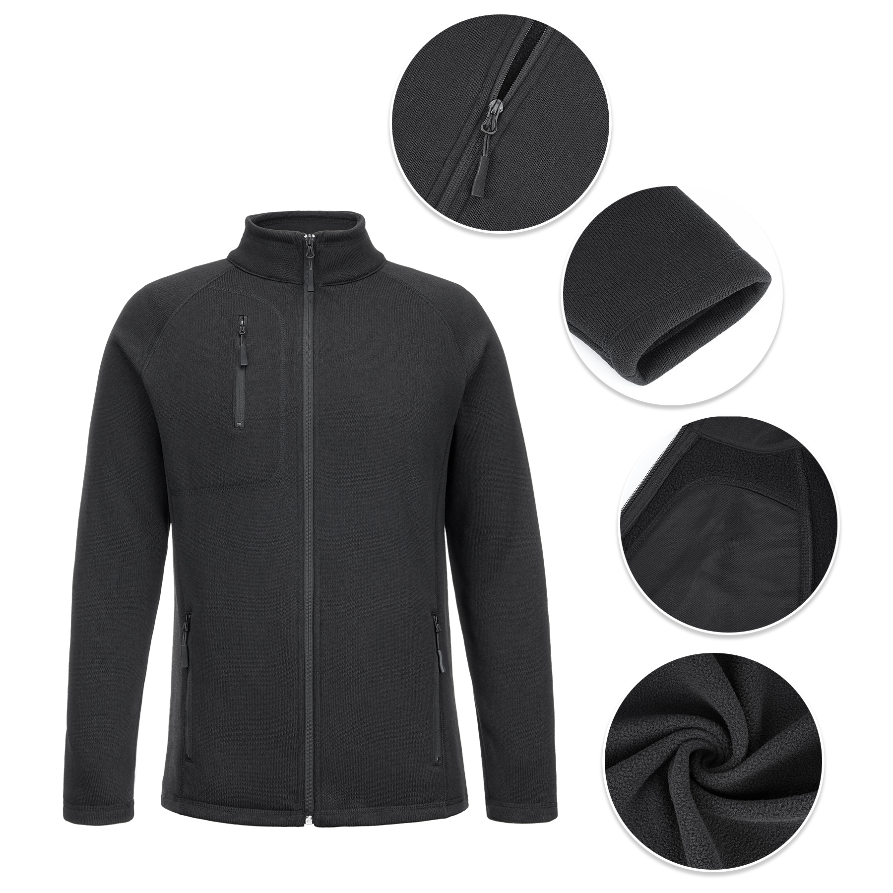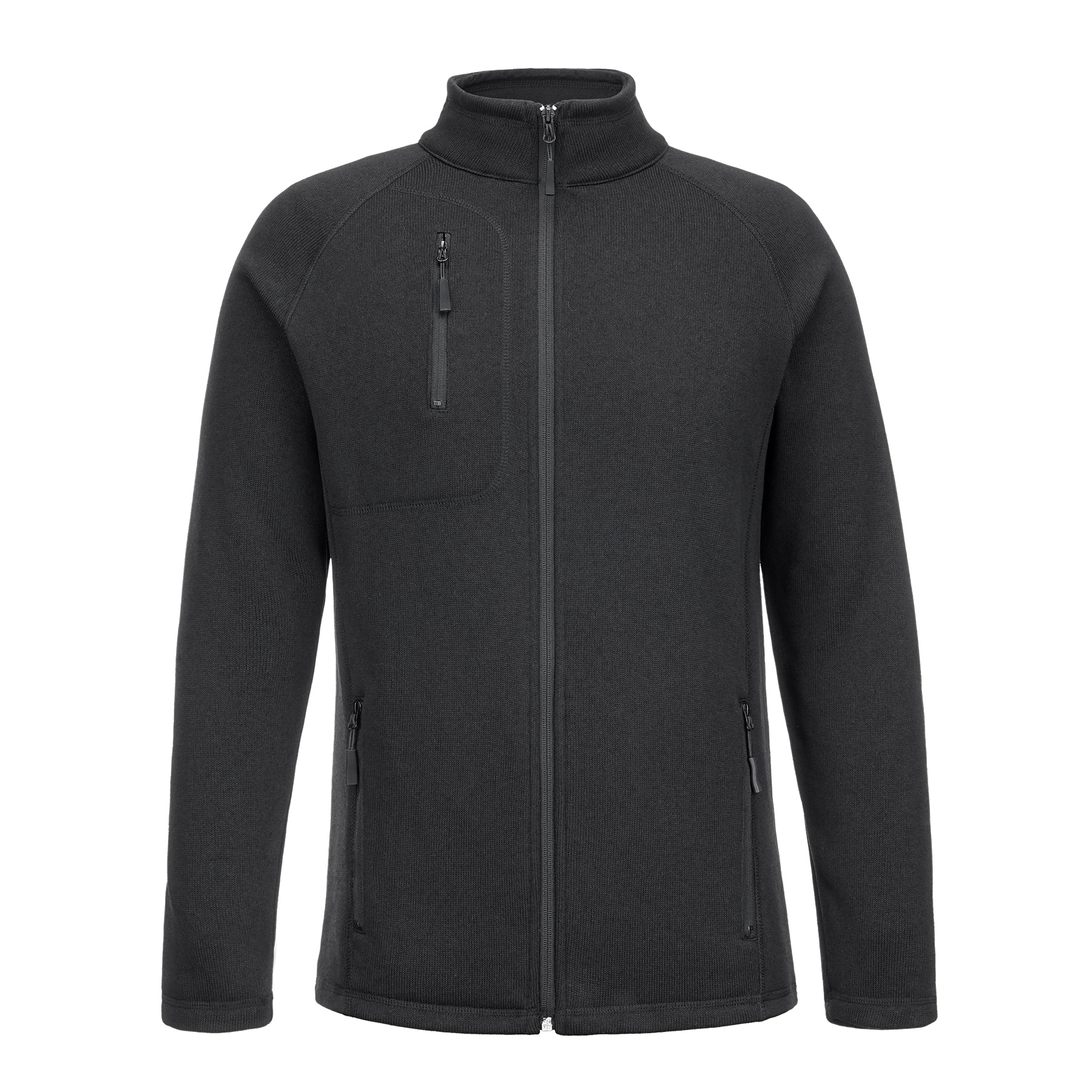 Item# R 288 –  Experience all-day comfort and warmth with this knitted jacket. Crafted from 9.5 oz polyester, this outerwear features a soft microfleece plush inner layer that provides superior insulation in cooler weather. Designed with modern raglan sleeve construction, it offers enhanced freedom of movement and a sporty, streamlined look. Functional details include a zippered chest pocket and two secure side zip pockets for convenient storage. Versatile enough for brisk mornings, this fleece jacket is the go-to layer for hiking, commuting, outings, or daily wear. Available in sizes XS to 4XL for both men and women. Get a free quote now!