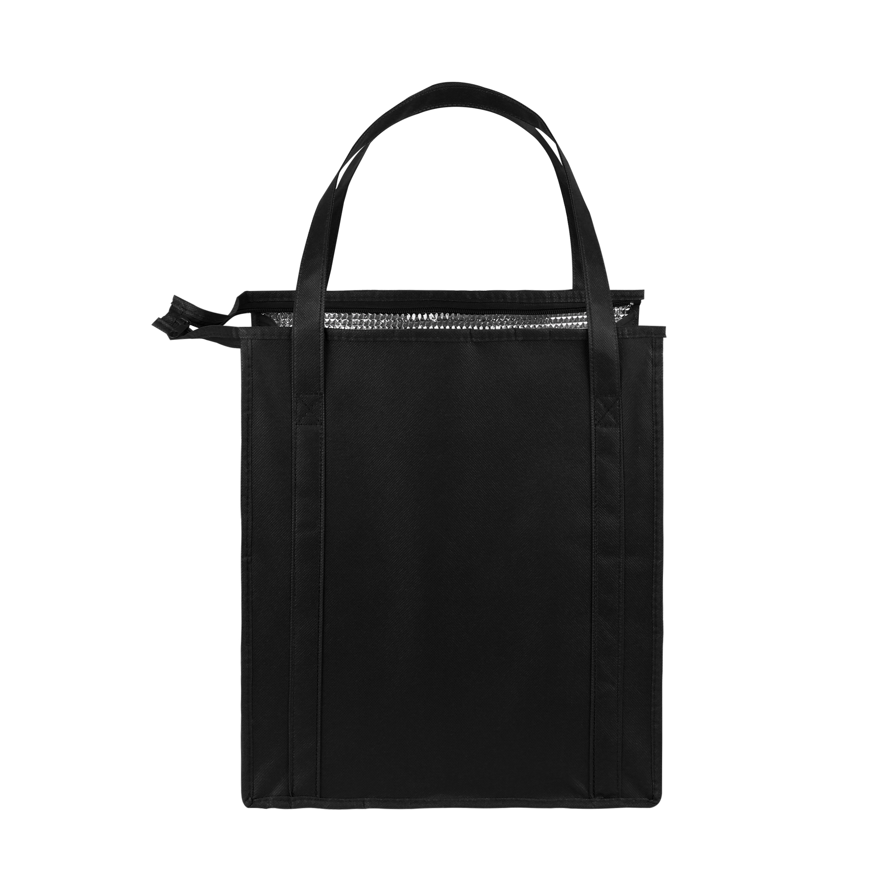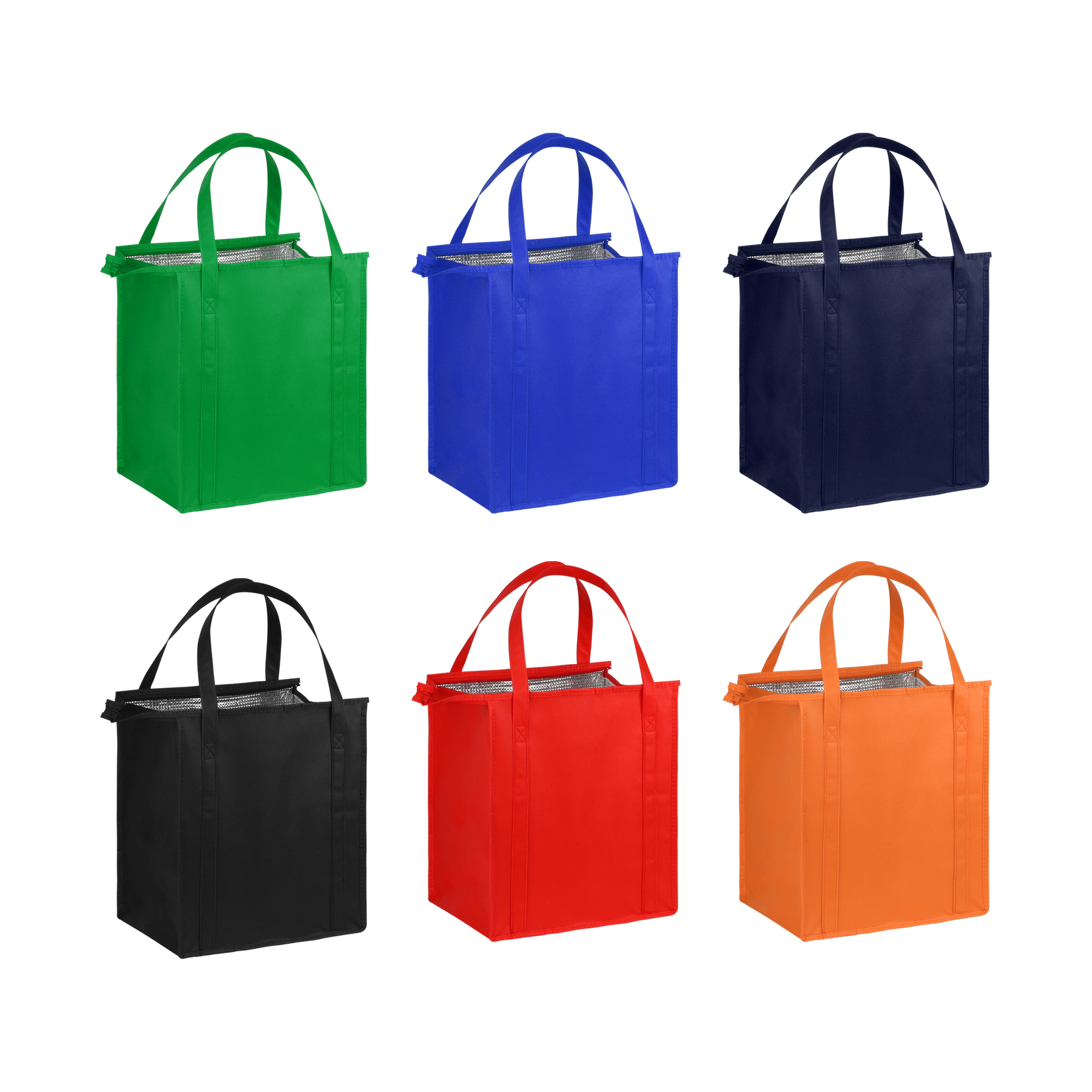 Item# RA1136 – This Insulated Shopper Tote Bag Keeps Items Hot Or Cold. It features durable 80 Gram premium non-woven polypropylene exterior, thermal foil interior, dual-reinforced 24″ handles, and plastic bottom insert. The zippered main compartment provides a large capacity. Spot Clean/Air Dry. We always have sufficient stock available. The product supports customization. Two sided imprint area can display your message for brand building opportunity. Great For Grocery Stores, Markets, Etc. Get a free quote now!