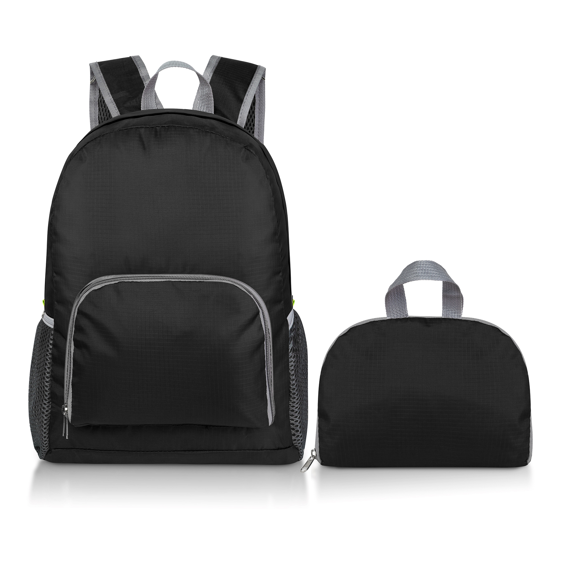 Item# RA1184 –  This collapsible backpack which made of 210D ripstop polyester, features a large zippered compartment with an interior pocket and a front pocket, adjustable shoulder straps for a great fit and dual side net pockets. Measured 12″ x 16.5″ x 5” when expanded, and it can be folded into a pouch sized 8″ x 6″. It is great for running, traveling, hiking, camping, racing, advertising activities and other outdoor events. Add a custom logo on this great promotional item for brand exposure. Get a free quote now!