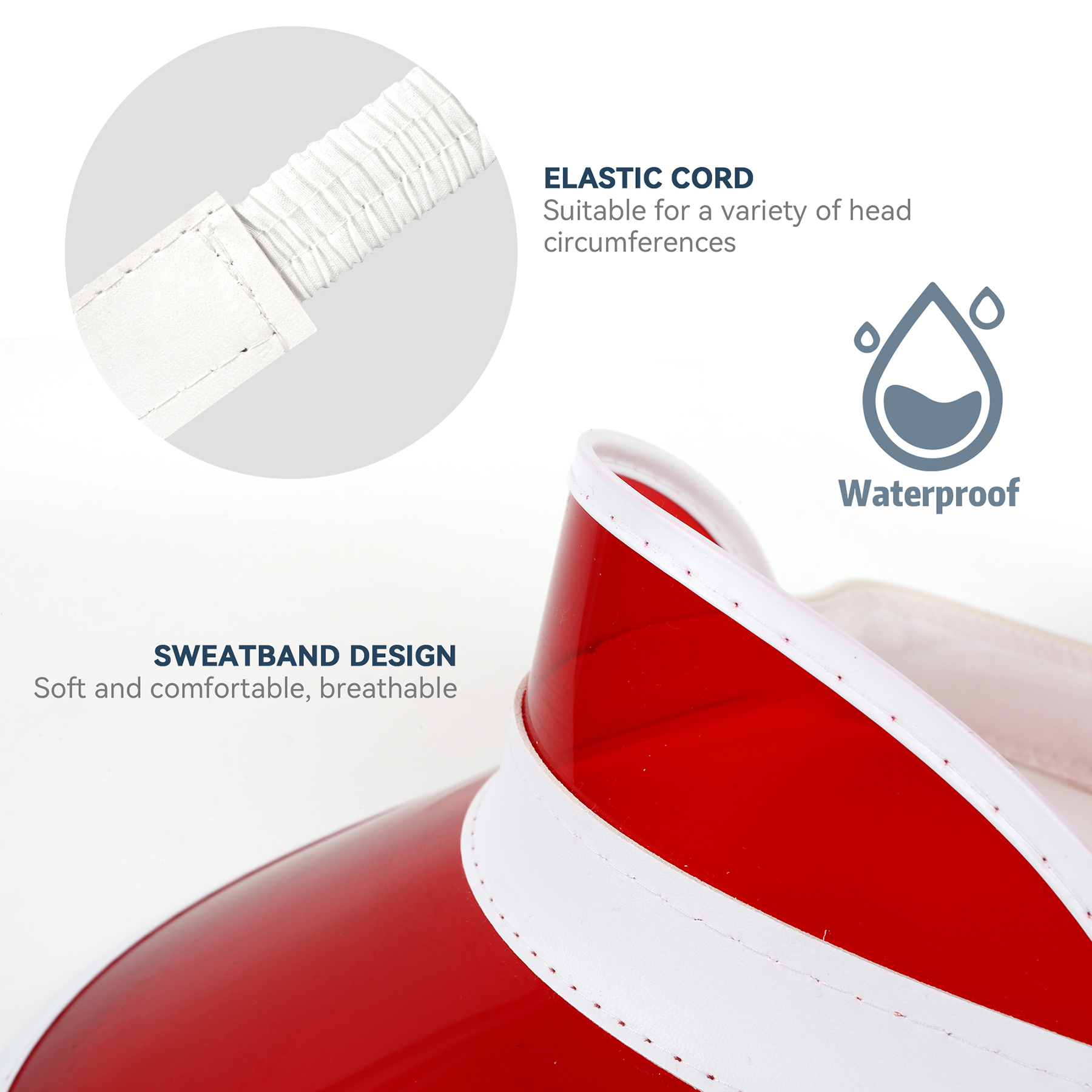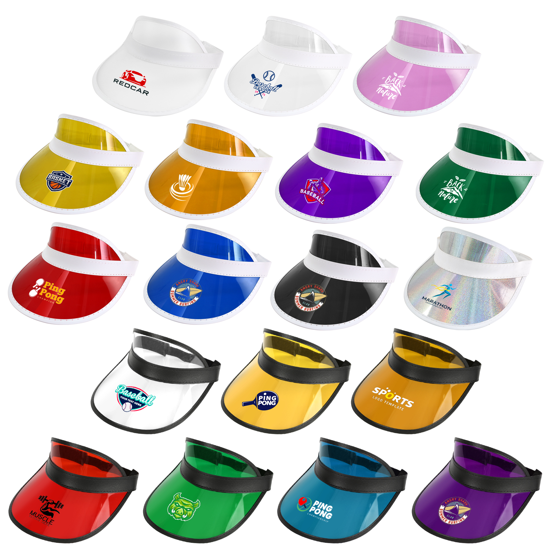 Item#  RC1017 –  These PVC Sun visor is made of plastic,designed with the transparent wide brim keeps skin and eyes comfortable with soft sunlight feel and effectively prevent UV. Adjustable size suitable for adults and children when Summer outdoor travel,beach,tennis sports.etc.Your price includes one color screen print on the front of the cap.The Maximum printing area 3” W x 2”H for your logo to be fully displayed, many kinds of colors can be chosen.  Get a free quote now!