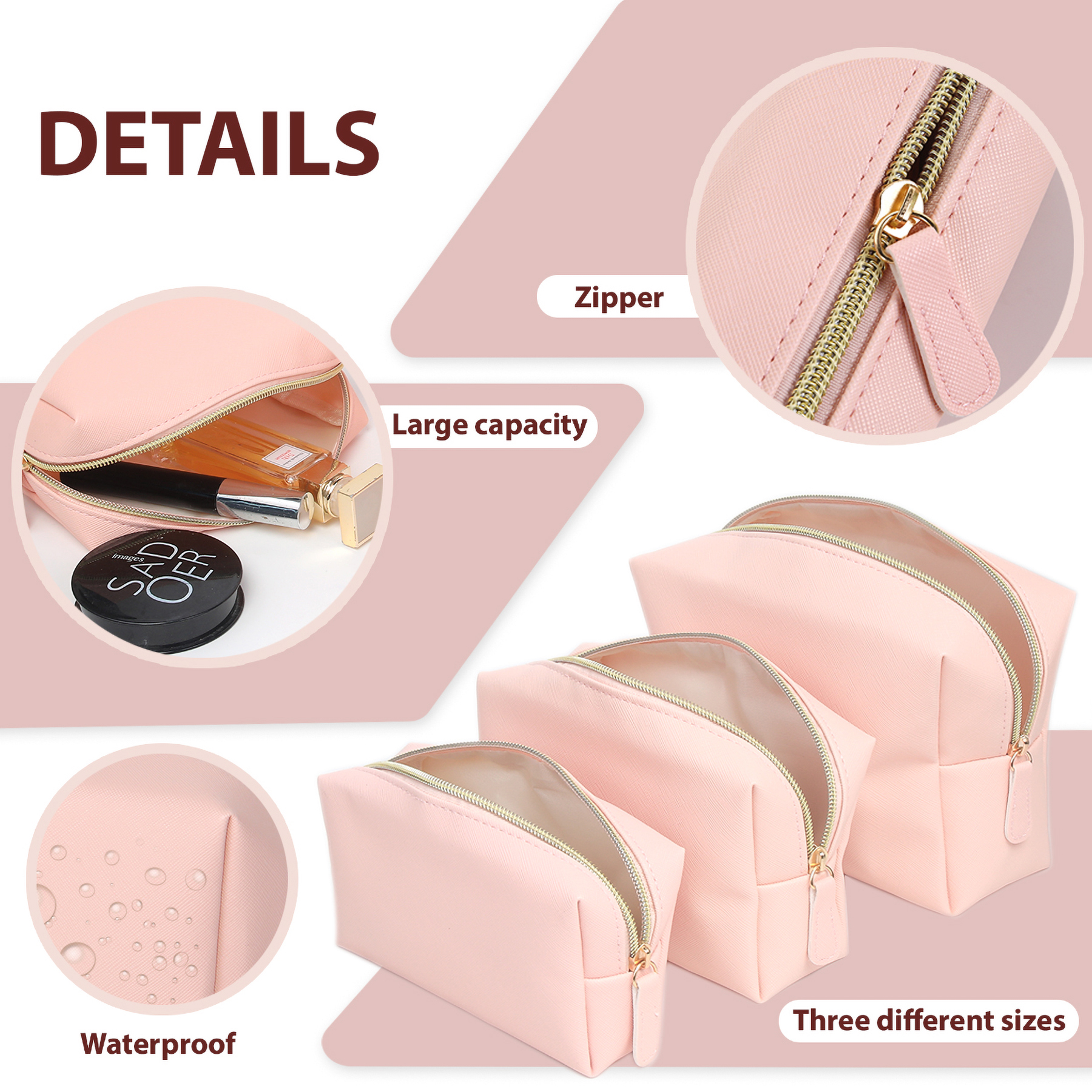 Item#  RA1132 –  This cosmetic bag offers versatile storage for all your beauty and travel essentials, combining sustainability, functionality, and style. Available in three sizes — small, medium, and large — each bag is made from eco-friendly, high-quality PU leather that is waterproof, durable, and easy to clean, ensuring long-lasting use without harming the environment. The lightweight, structured rectangular shape makes it easy to organize makeup, toiletries, and more, while maintaining portability. A gold-tone zipper with matching pull tab adds a sleek, elegant touch, making it a chic accessory for any occasion. Perfect for home, travel, or gifting, these bags fit neatly into handbags or suitcases — a stylish and practical choice for beauty lovers on the go. Get a free quote now!