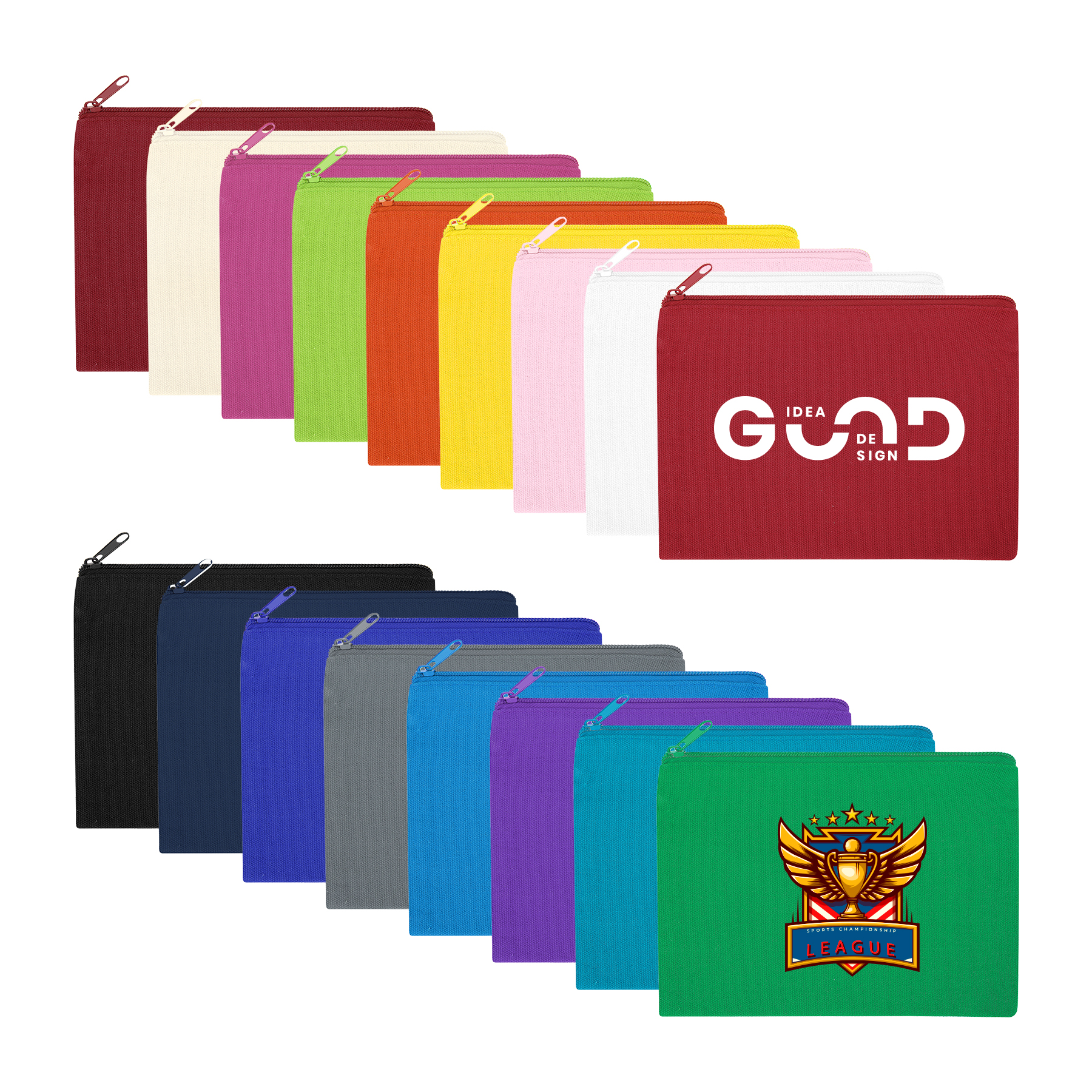 9″ x 6″ Solid Color Cotton Canvas Multi Purpose Organizer Zipper Pouch