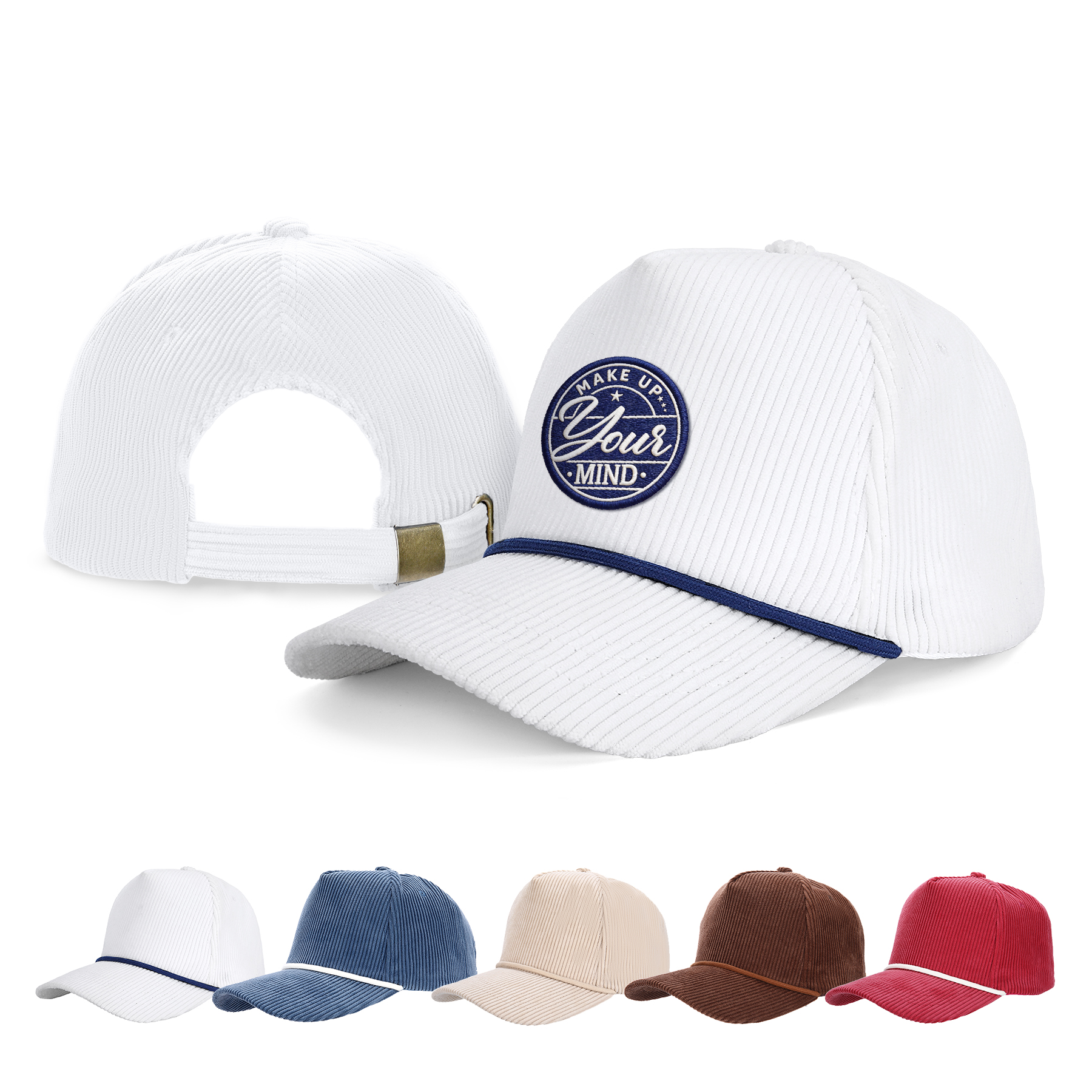 5 Panel Corduroy Sports Cap With Rope Visor And Adjustable Brass Buckle