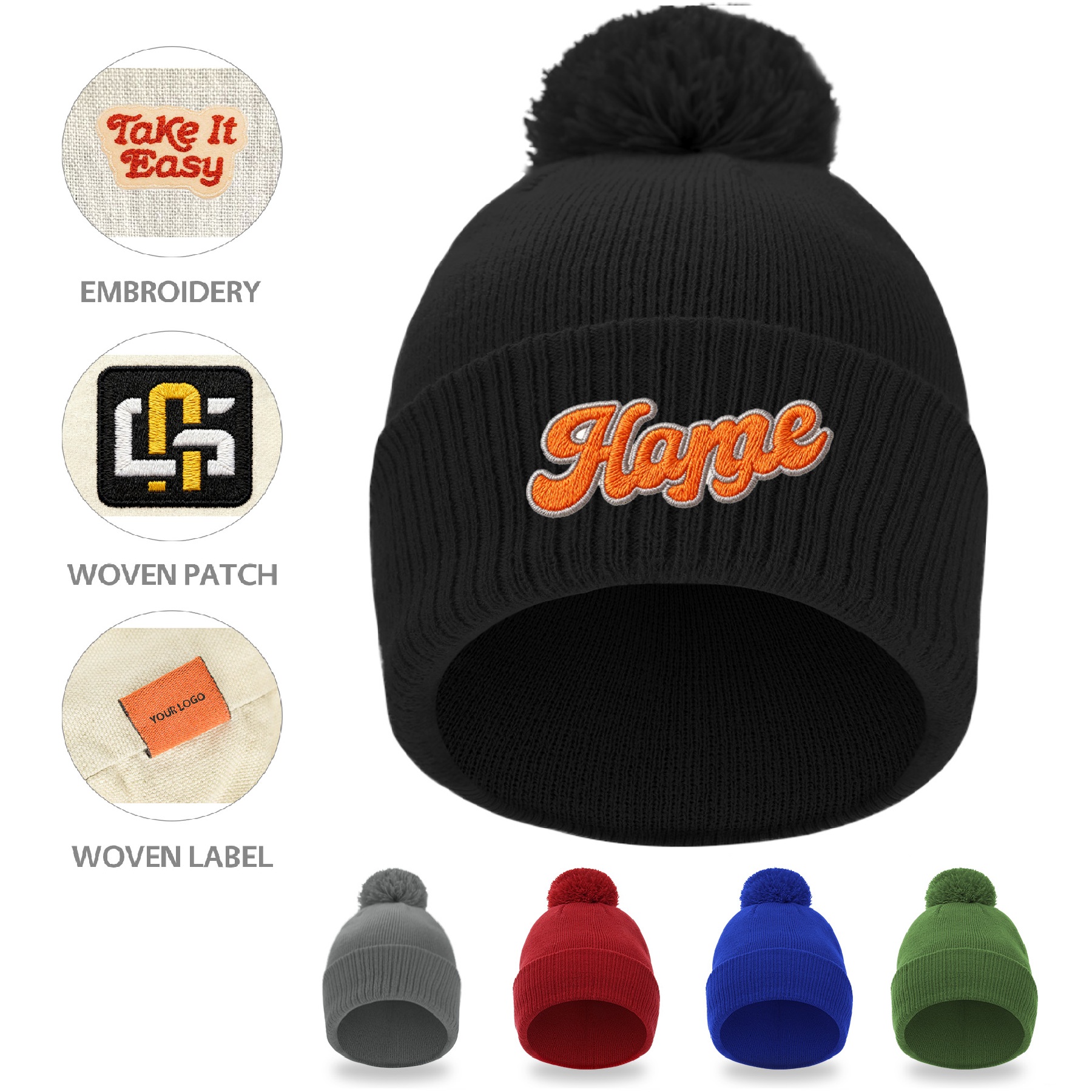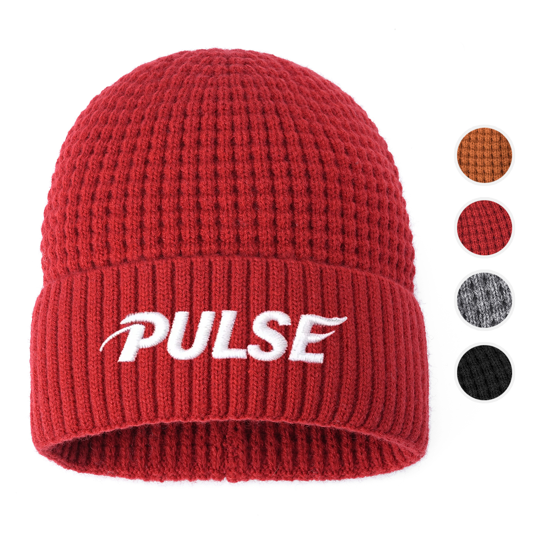 Unisex Waffle Knit Cuffed Beanie With Custom Logo