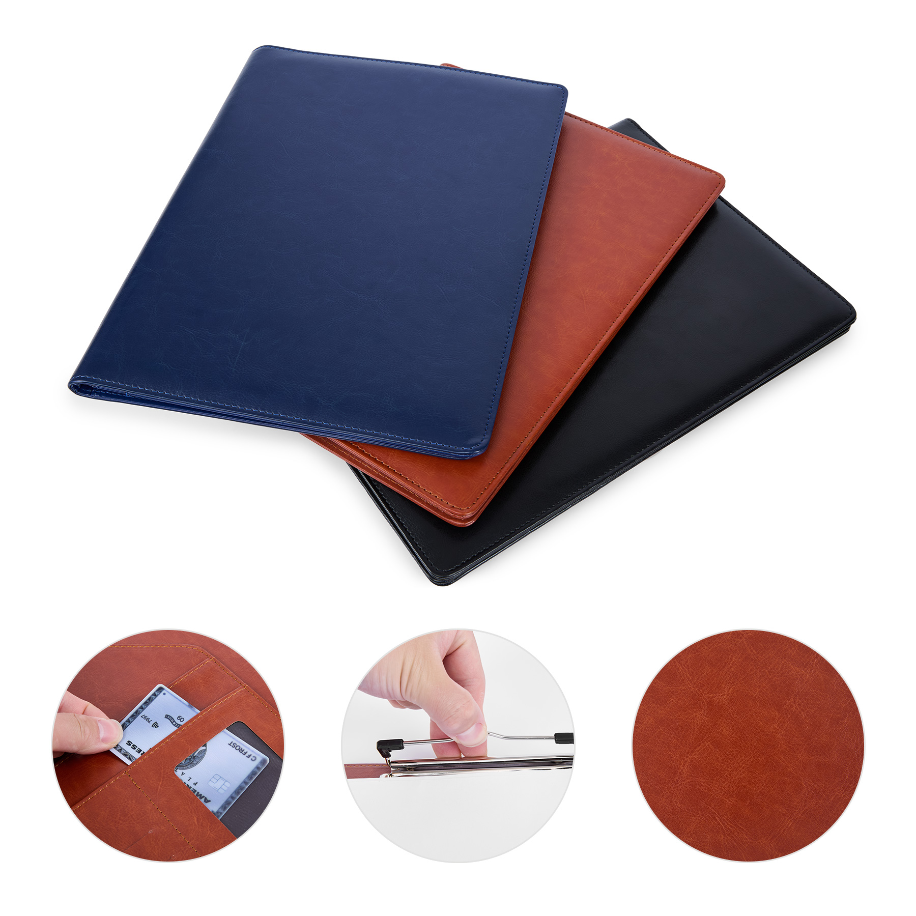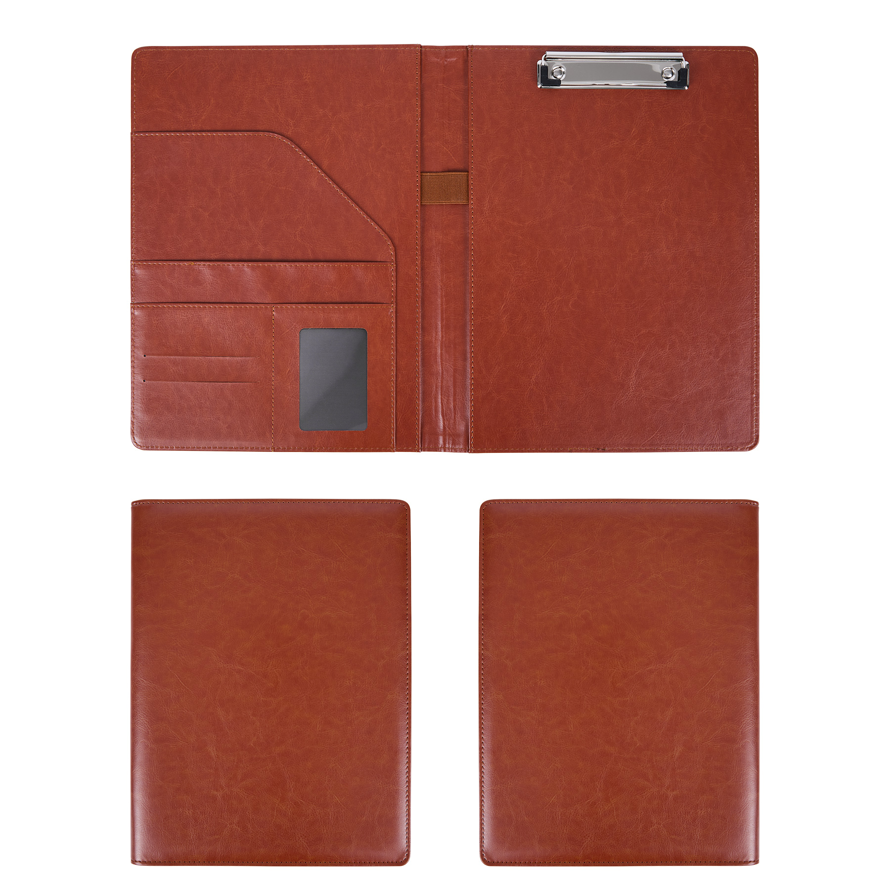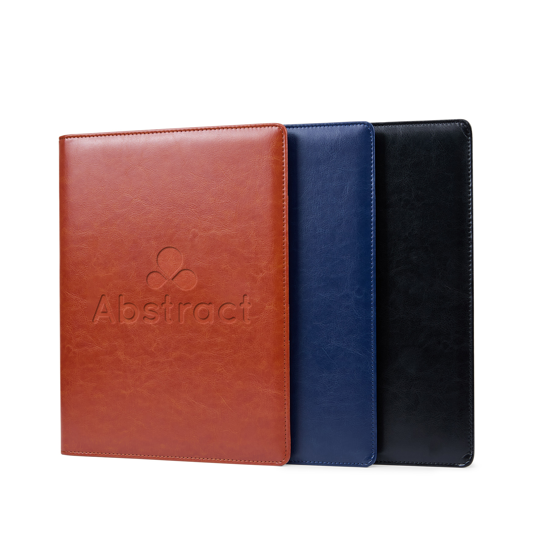 Item#  RO1033 –  Crafted from premium PU leather, this portfolio combines modern simplicity with professional elegance. Its smooth, sophisticated design presents a polished appearance that enhances your confidence during business meetings and interviews. Thoughtfully designed with multiple interior compartments, it offers organized storage for documents, business cards, ID cards, and pens. The practical layout allows for quick and easy insertion or removal of papers, making it both functional and refined. Get a free quote now!