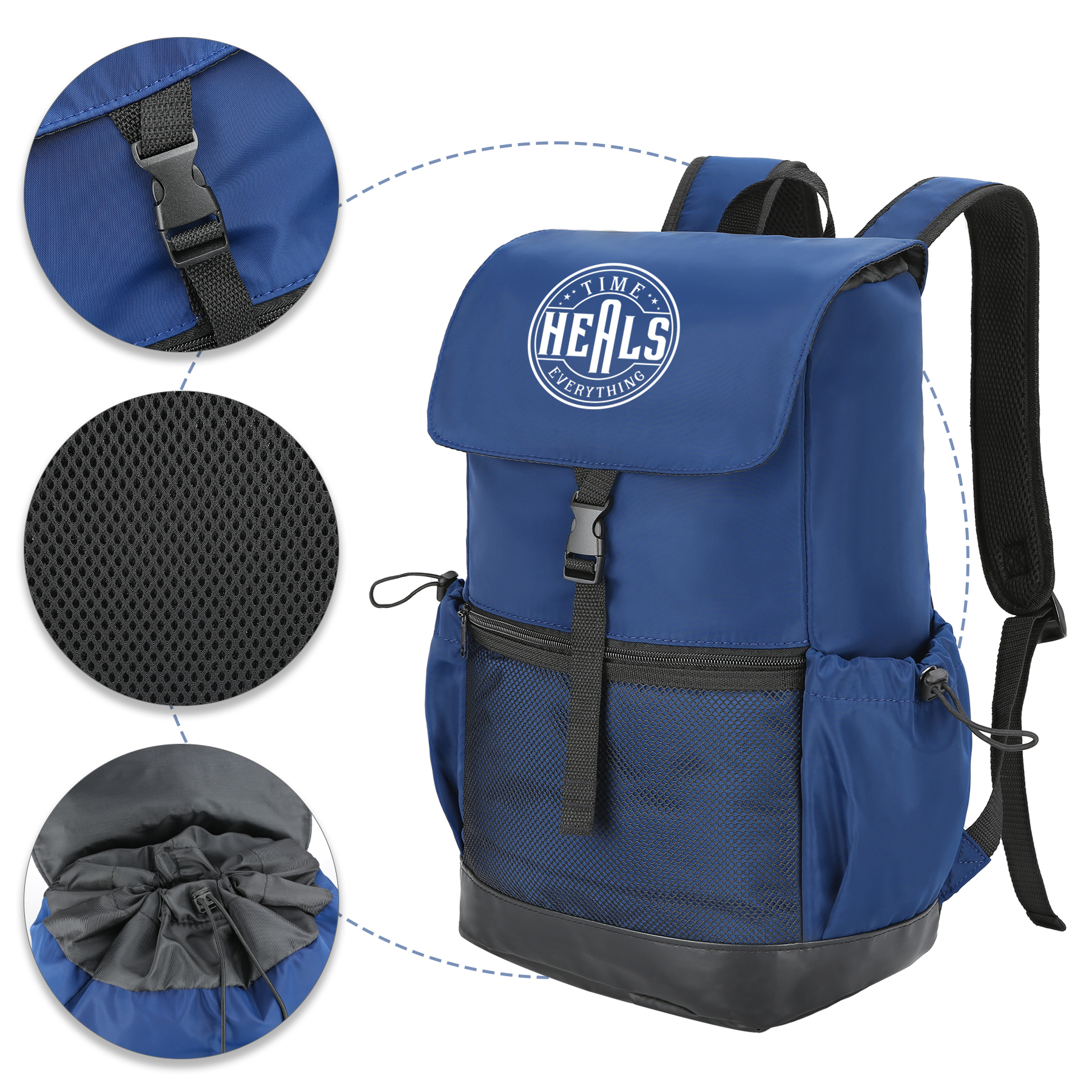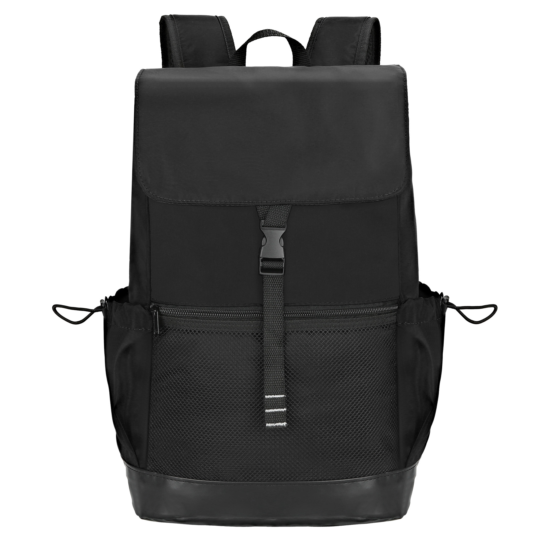 Item# RA1154  –  This backpack is constructed of lightweight 75D compound memory polyester. Its breathable mesh back padding and shoulder straps ensure comfort even when carrying heavy loads, relieving shoulder stress. The flap top design, secured with a drawstring closure and clip-fastened adjustable webbing straps, keeps your daily essentials safe and accessible. This stylish backpack is versatile enough to serve as a travel companion, bookbag, or casual daypack, business backpack. Get a free quote now!