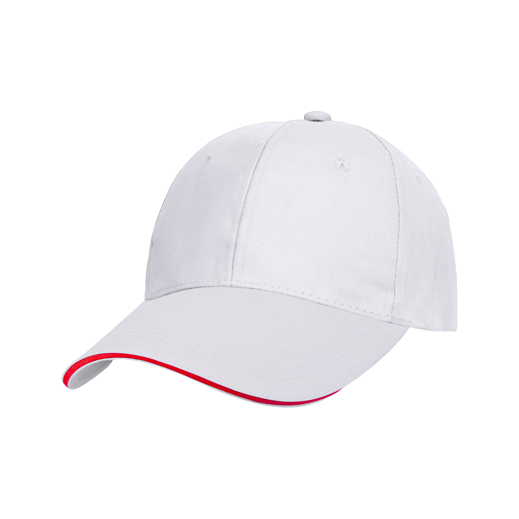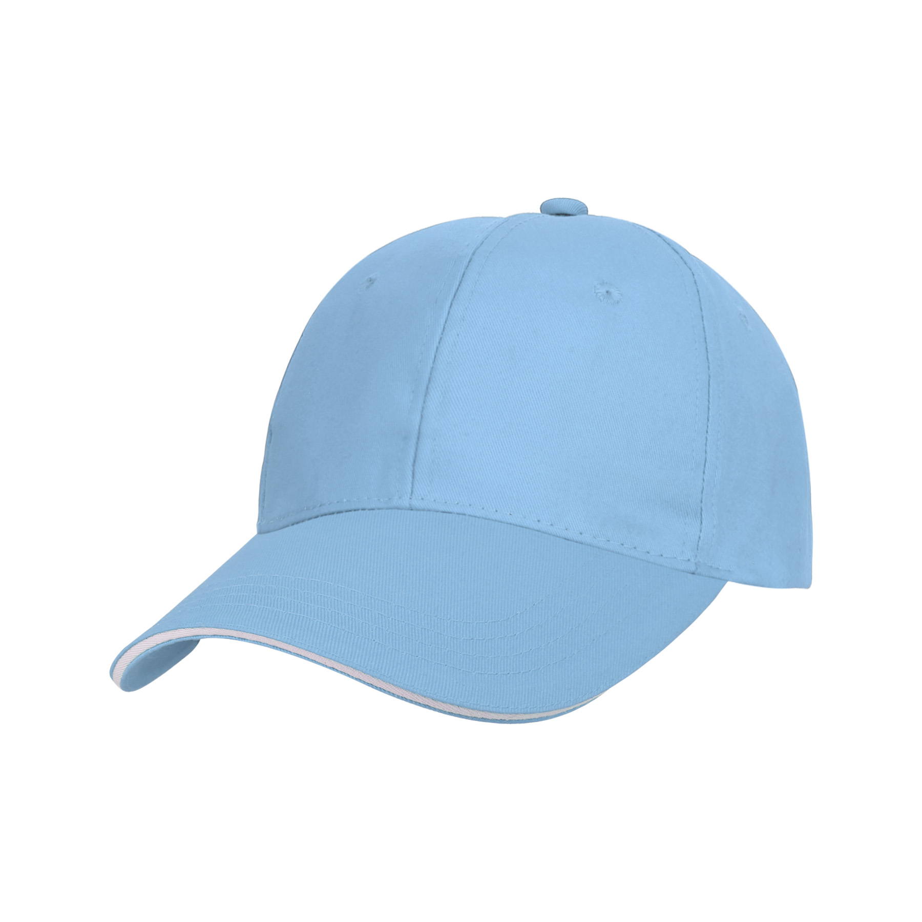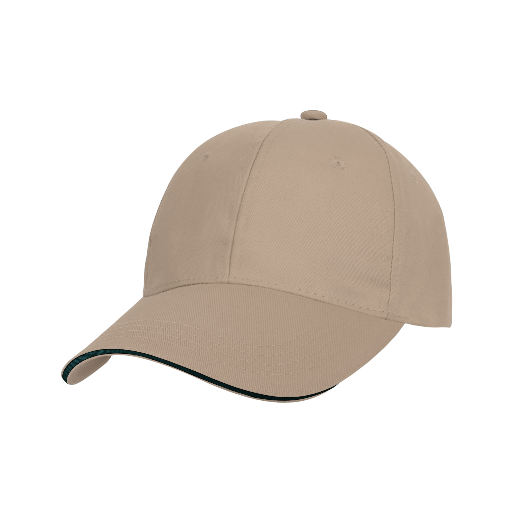 Item#  RC1014 –  These personalized 6-panel caps are made from 100% brushed cotton, featuring stitched visors with contrasting trim and hook and loop closure for a secure fit. The caps sport a curved sandwich-style visor, six embroidered eyelets with matching stitching, and a color-matched sweatband. Available in black, blue, khaki, and white, these caps can be customized with your logo through printing or engraving for a unique promotional item. Get a free quote now!
