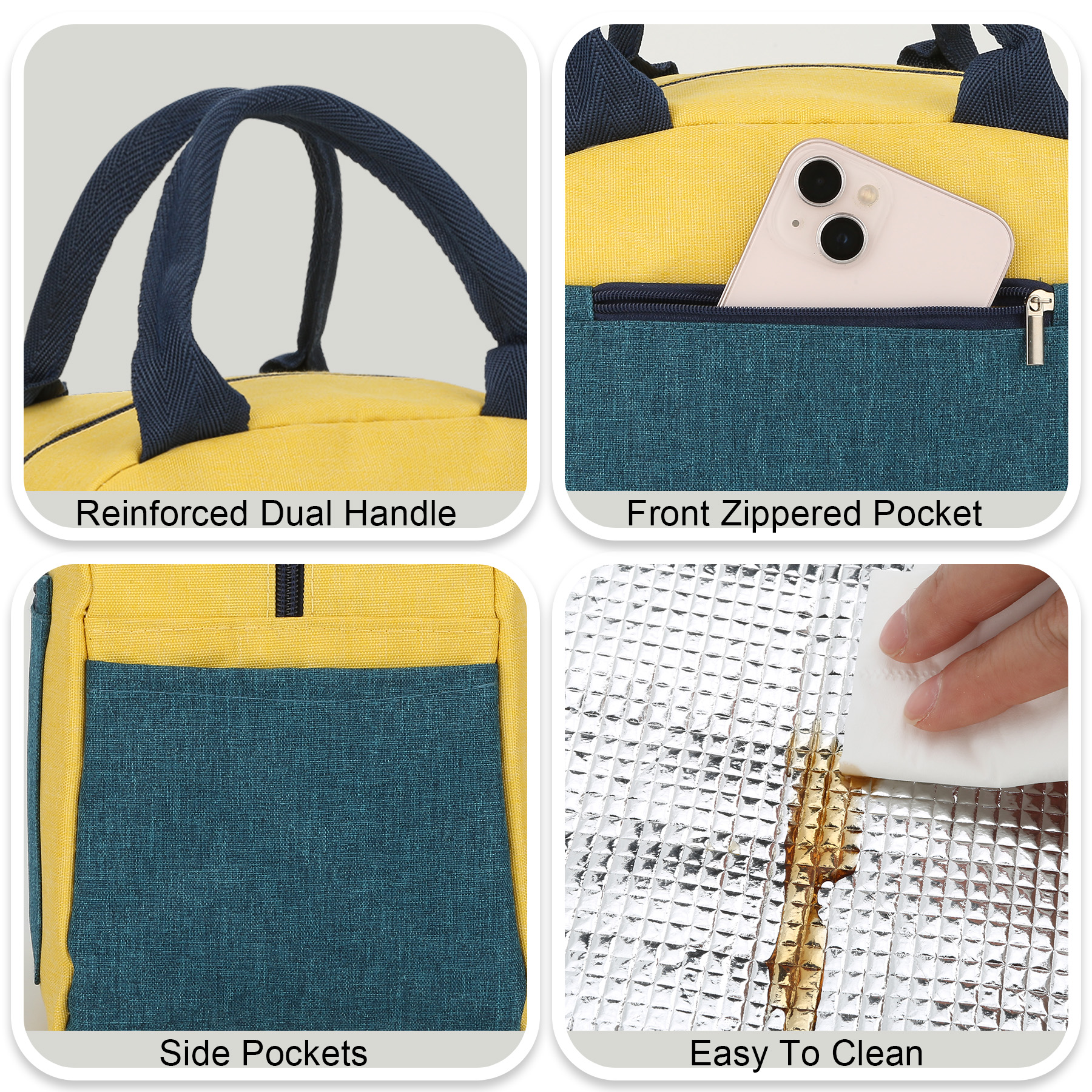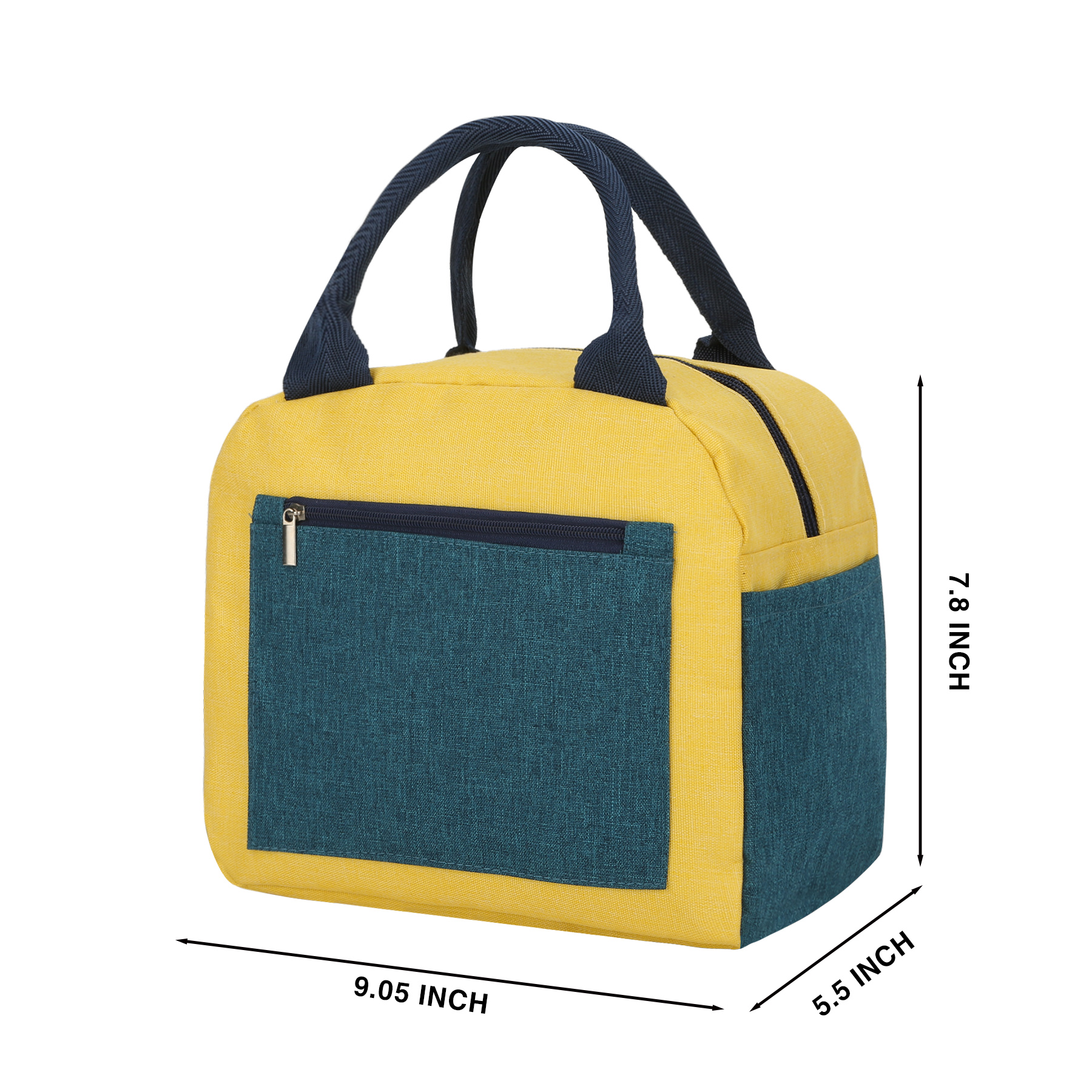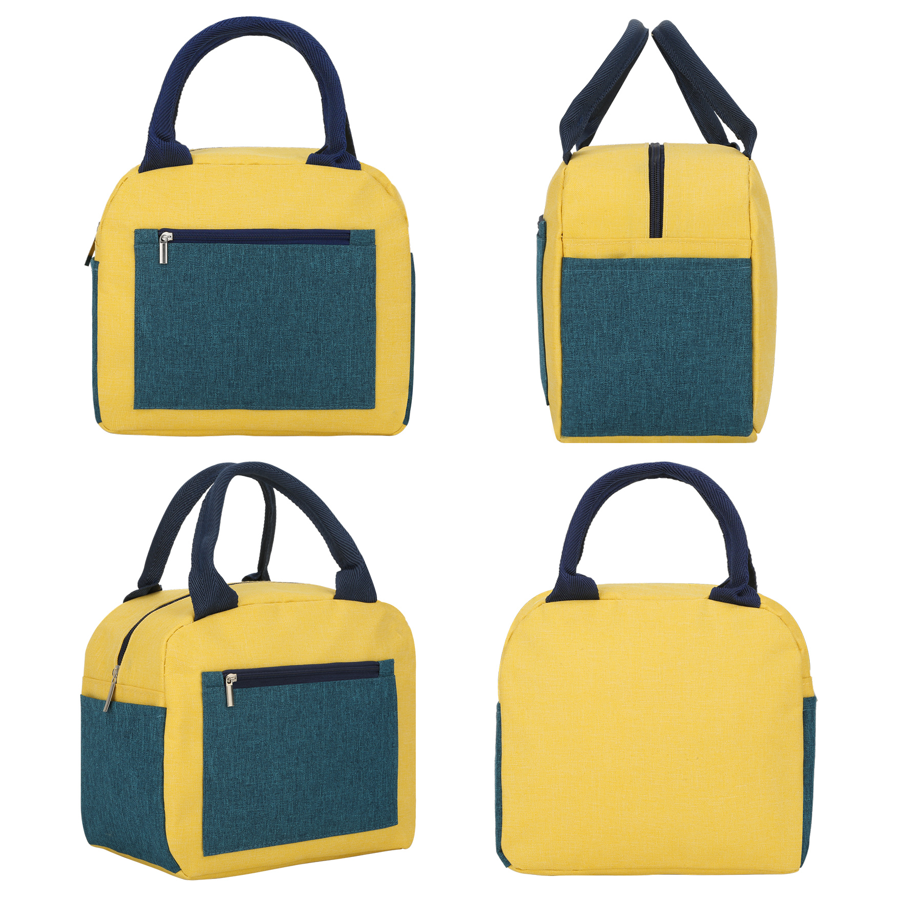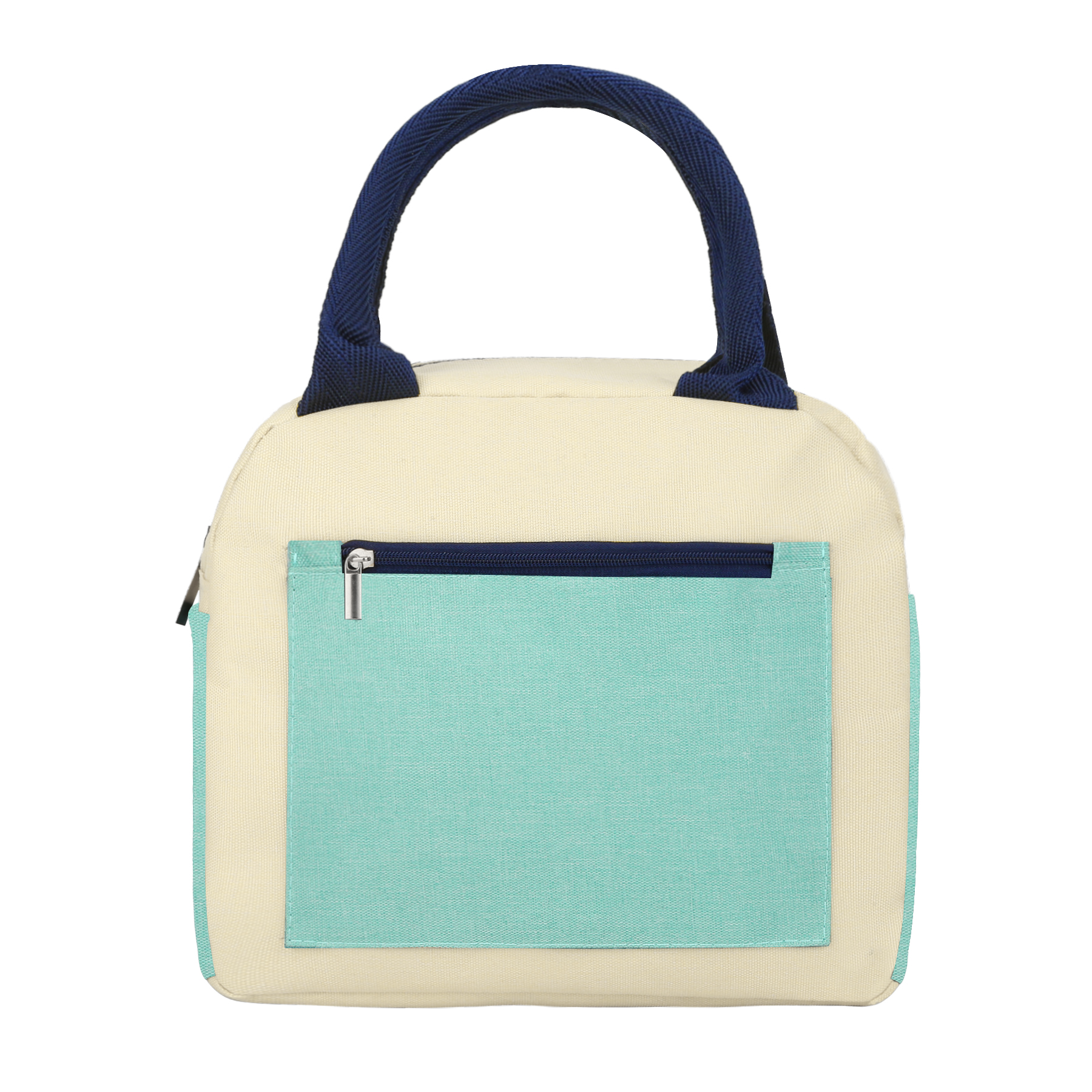 Item# RA1160  –  This lunch bag stands out from the crowd with the eye-catching color blocking design. The combination of vibrant colors adds a touch of style and personality to your lunchtime routine. Made with durable heathered polyester with an easy-to-clean aluminum foil lining, it keeps your food and drinks at the perfect temperature for hours. Two side pockets and a front zippered pocket offer extra storage for utensils, napkins, or small essentials. It has ample room for your lunch, drinks, and snacks, designed to accommodate all your on-the-go food needs. The sturdy handles ensure comfortable carrying, making it suitable for work, travel, beach outings, picnics, parties, and school use. It’s the perfect companion for your active lifestyle, providing you with convenience and style wherever you go. Get a free quote now!