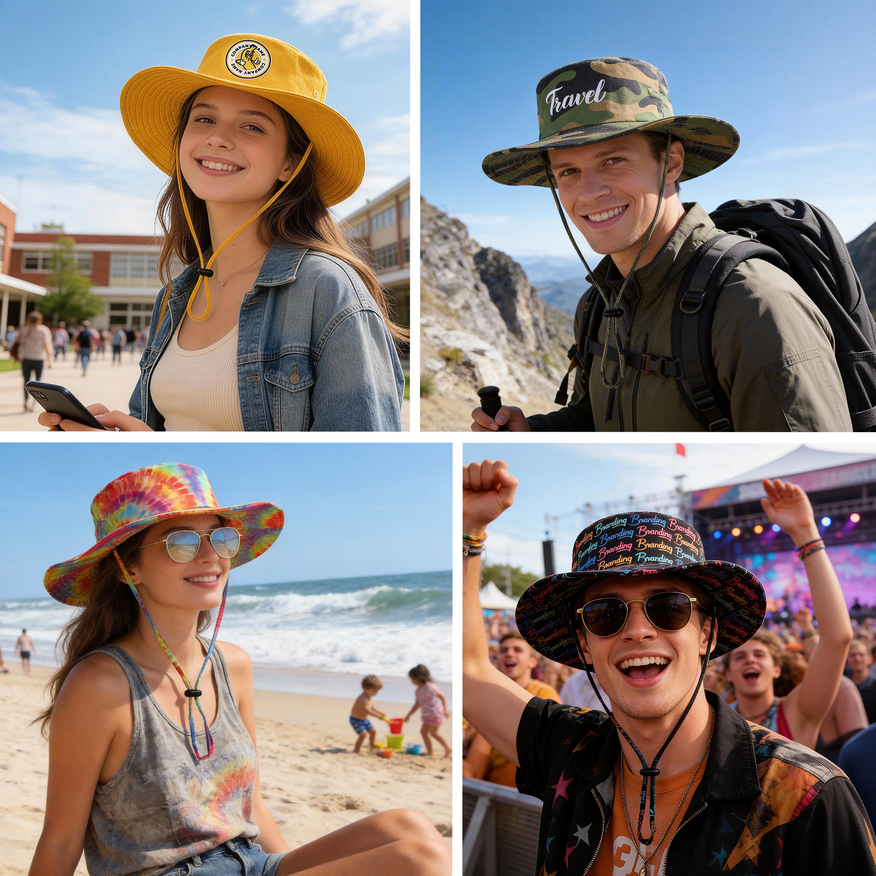 Item#  RC1035 – This stylish and functional bucket hat features a wide brim for excellent sun protection and a bold, full-color sublimated design. Crafted from durable 100% polyester, it delivers vibrant, long-lasting graphics using advanced digital printing technology—perfect for intricate patterns or full-coverage branding. The lightweight construction ensures comfort for all-day wear, while the adjustable chin strap with buckle provides a secure fit, even in windy conditions. Ideal for outdoor activities, festivals, travel, and promotional use, this bucket hat blends eye-catching style with everyday practicality. Get a free quote now!