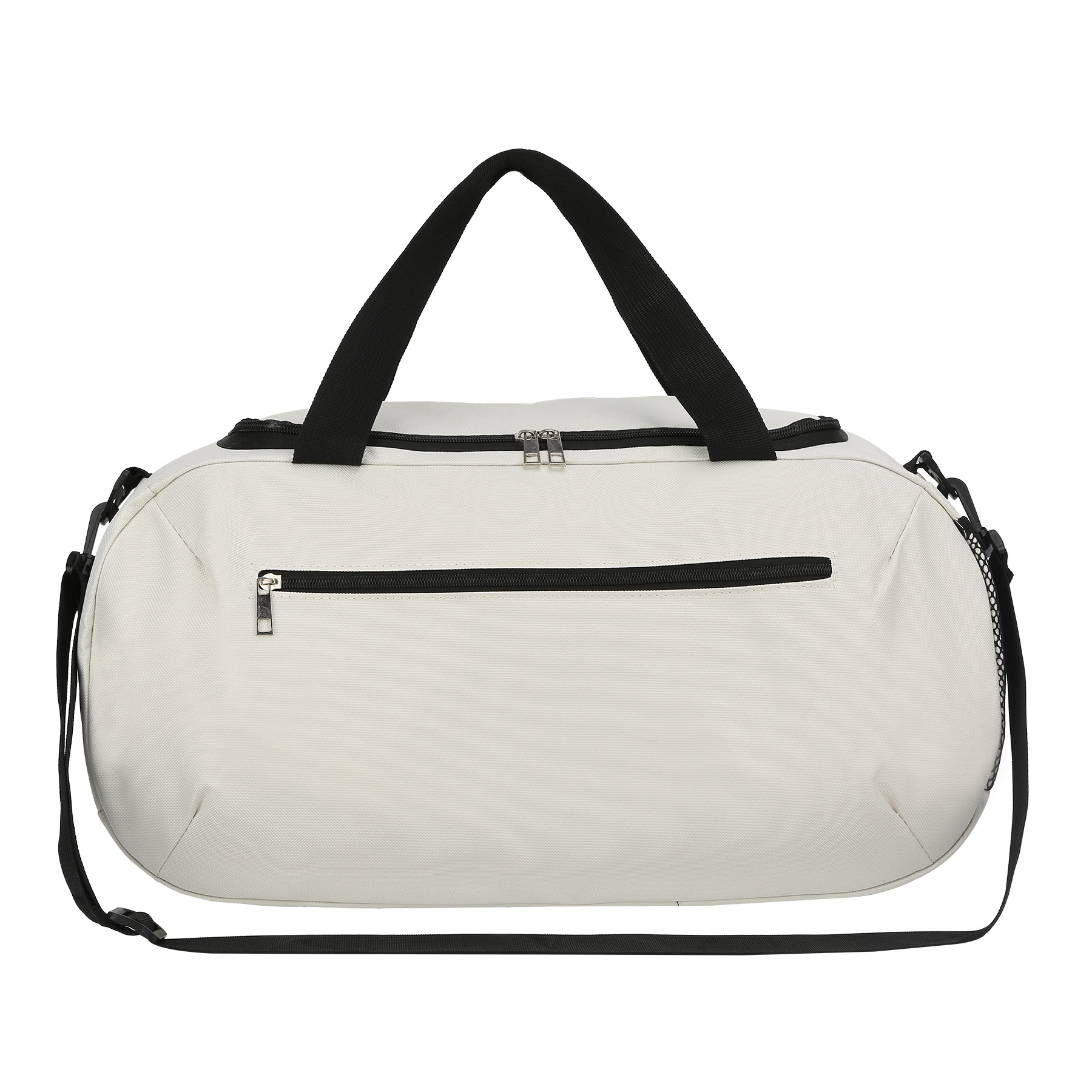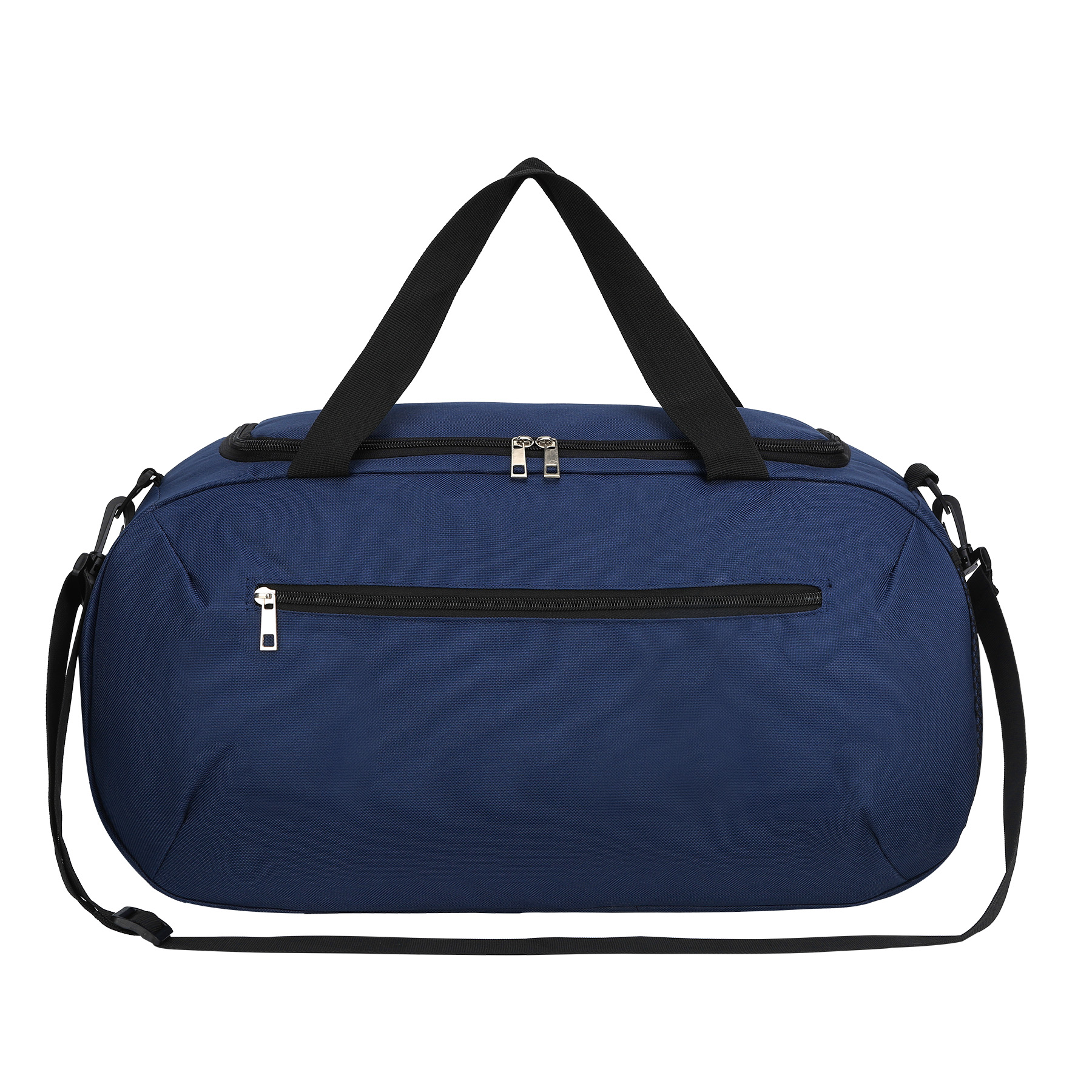 Item# RA1034 –  This duffel bag is made of durable 600D Polyester. The handbag is portable yet spacious and features a carrying handle and adjustable shoulder strap for versatility. The front zippered pocket is great for smaller items and the main compartment fits shoes, clothing, books, etc. Use it as airplane travel bag, luggage bag, gym sport bag, weekend bag, carryon bag, beach bag. Great for day trips, overnight travel, the gym, school & work and more. Add a custom logo to this fashionable modern bag, sure to be a hot promotional item. Get a free quote now!