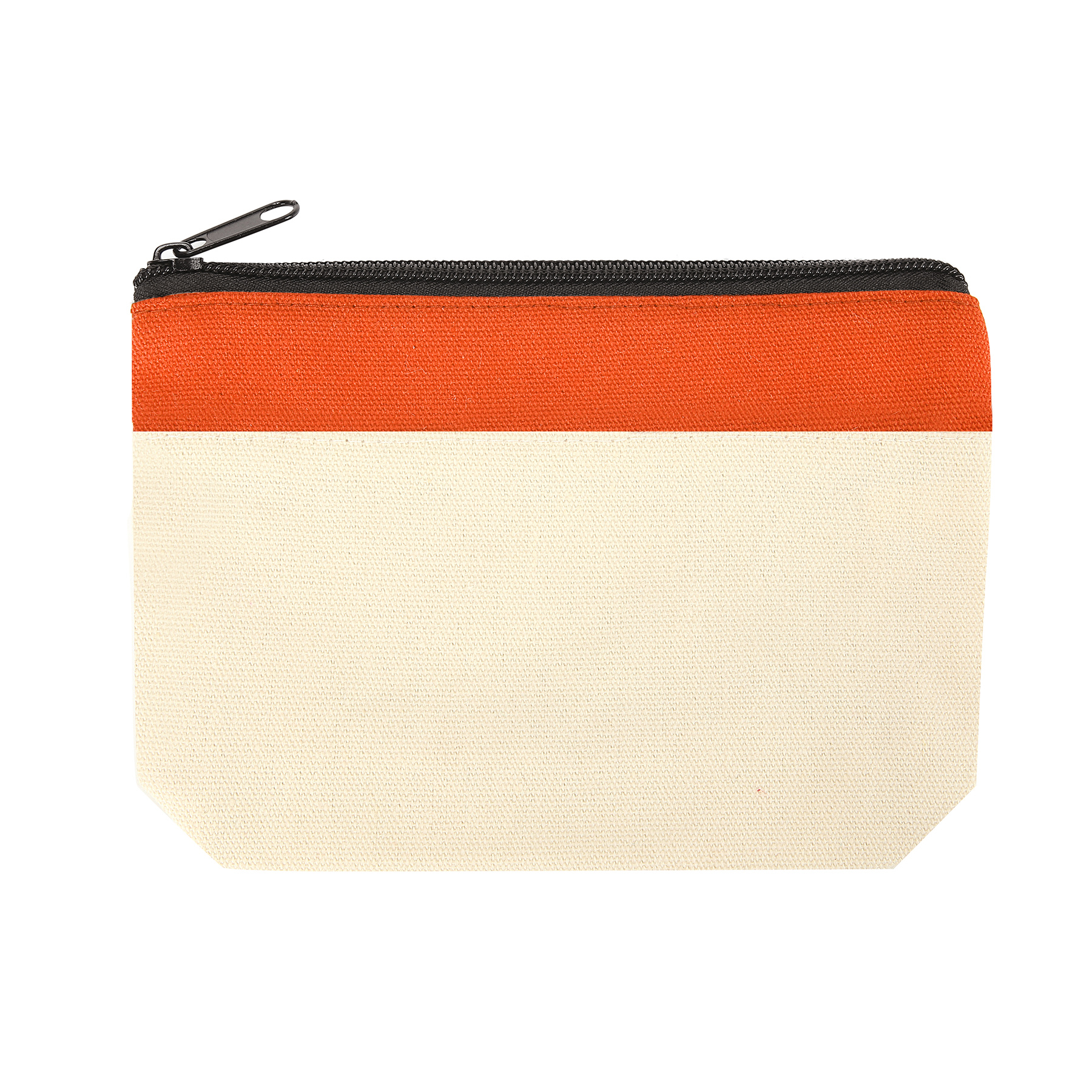 Item# RA1007 – Crafted from durable 12 oz cotton canvas, this pouch is both soft and long‑lasting. It features a top zipper and a stylish two‑tone look with a natural body and a colored upper panel. Sized at 7.5″ x 4.5″ x 1.25″, it’s perfect for organizing cables, pens, cosmetics, credit cards, and other small essentials. Available in a variety of colors to suit your brand or clients’ preferences. Get a free quote now.