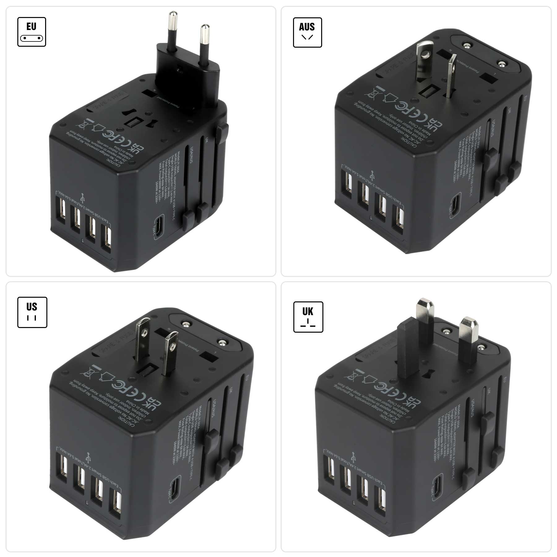 Product Name: Universal Travel Adapter With 4 USB-A And 1 Type-C Ports
