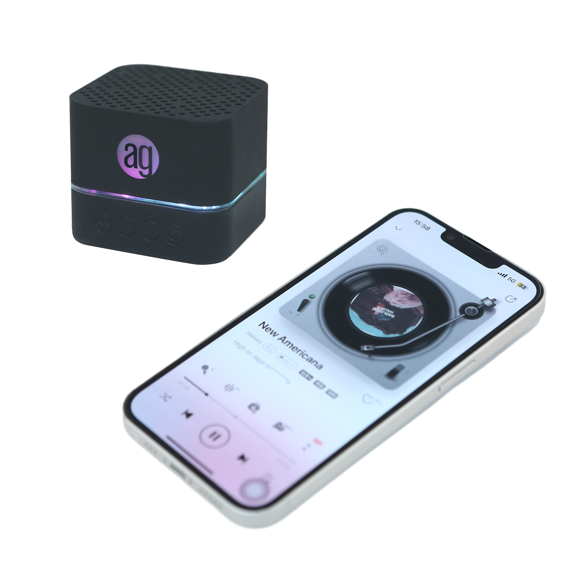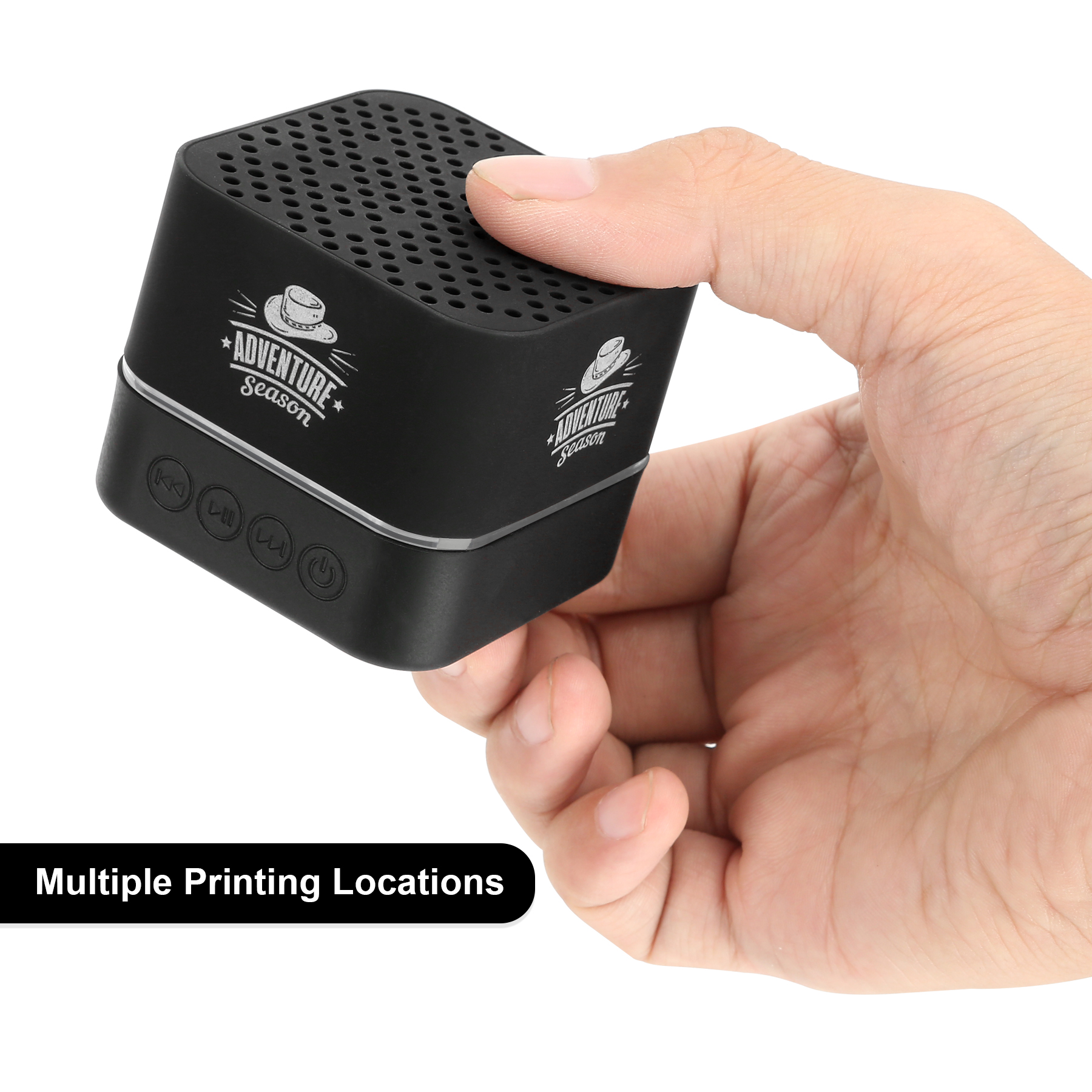 Item# RE1041 – Designed for everyday life, this compact audio companion blends style with practicality. Its matte black cube design feels smooth to the touch and fits comfortably in your hand. With a 3W speaker, it delivers clear sound whether you’re at home or outdoors. The built-in 500mAh battery keeps the music playing for hours, and the IPX4 rating means it can handle rain or accidental spills—perfect for picnics, bathrooms, or desk use. You can also customize it with a laser-engraved logo on the front panel, and watch it come to life with built-in colorful LED lighting that illuminates your brand or design every time the speaker powers on. Passed UL tests. Get a free quote now!