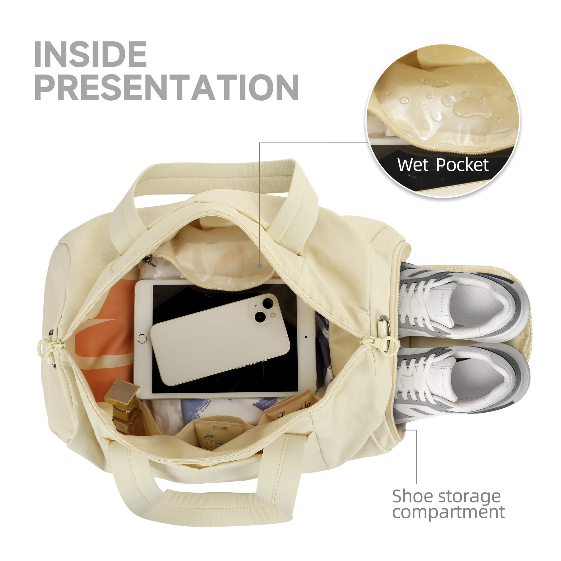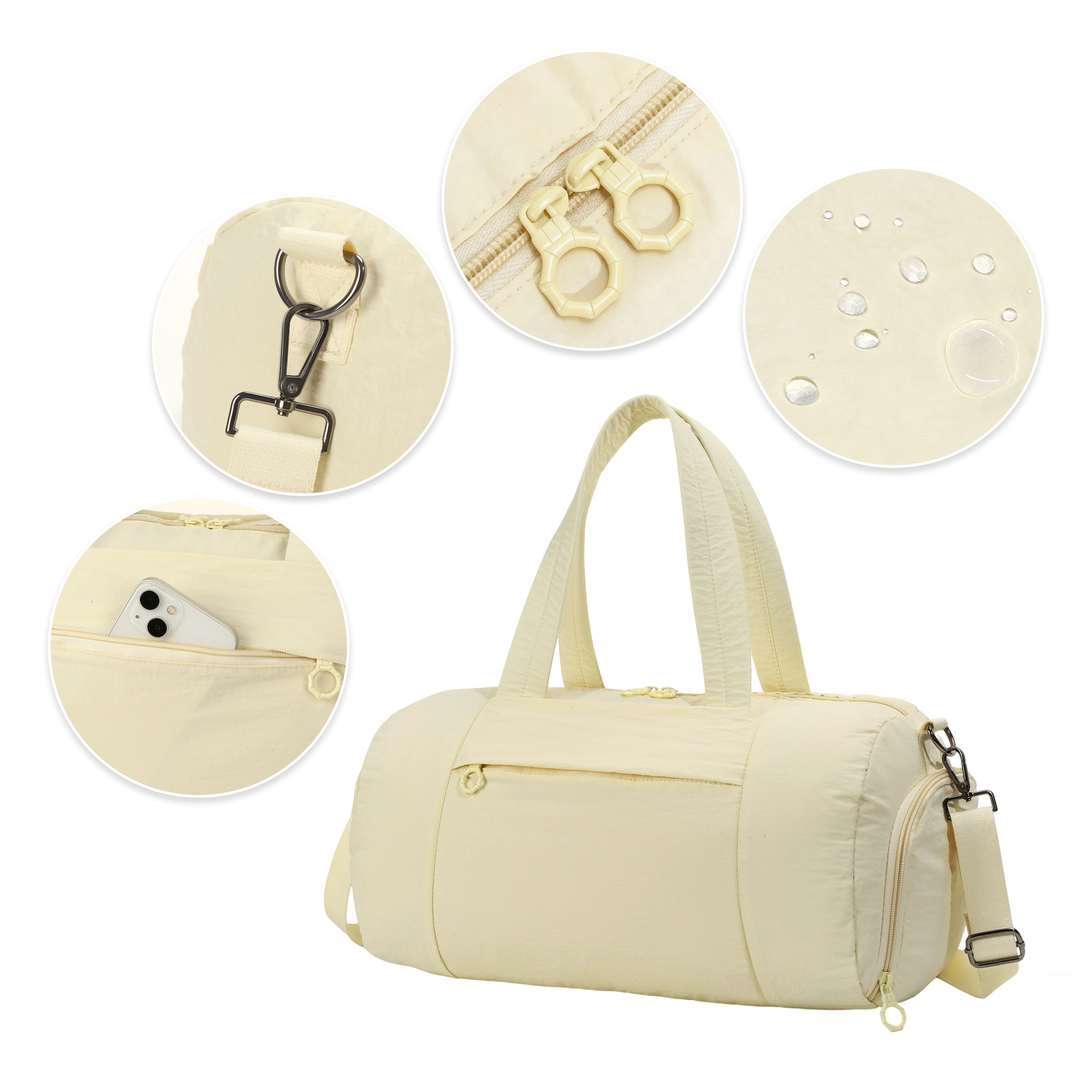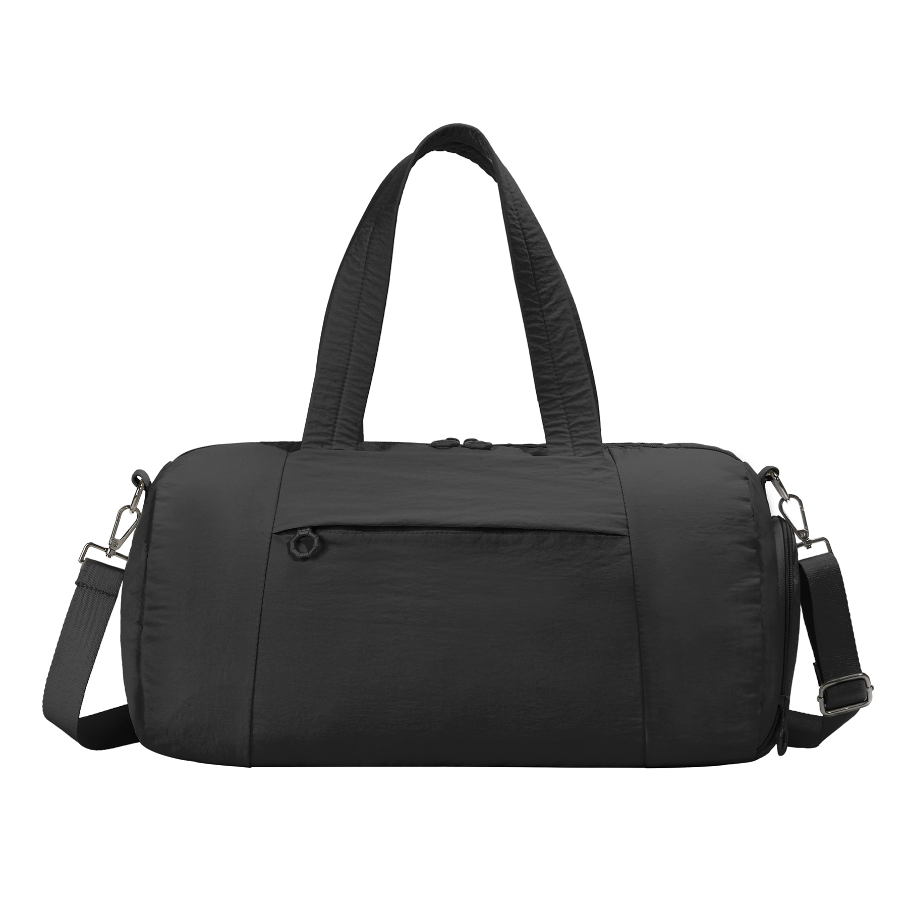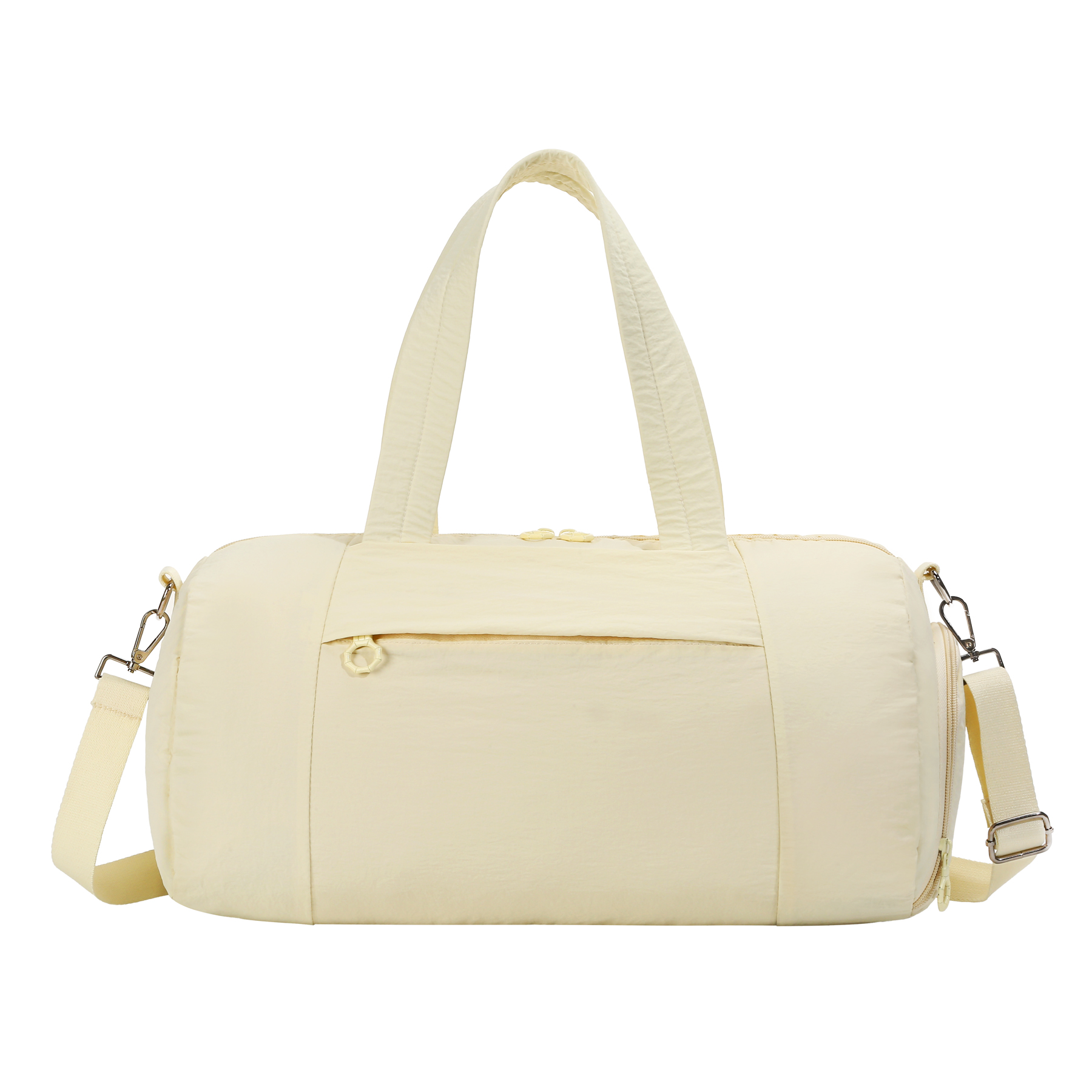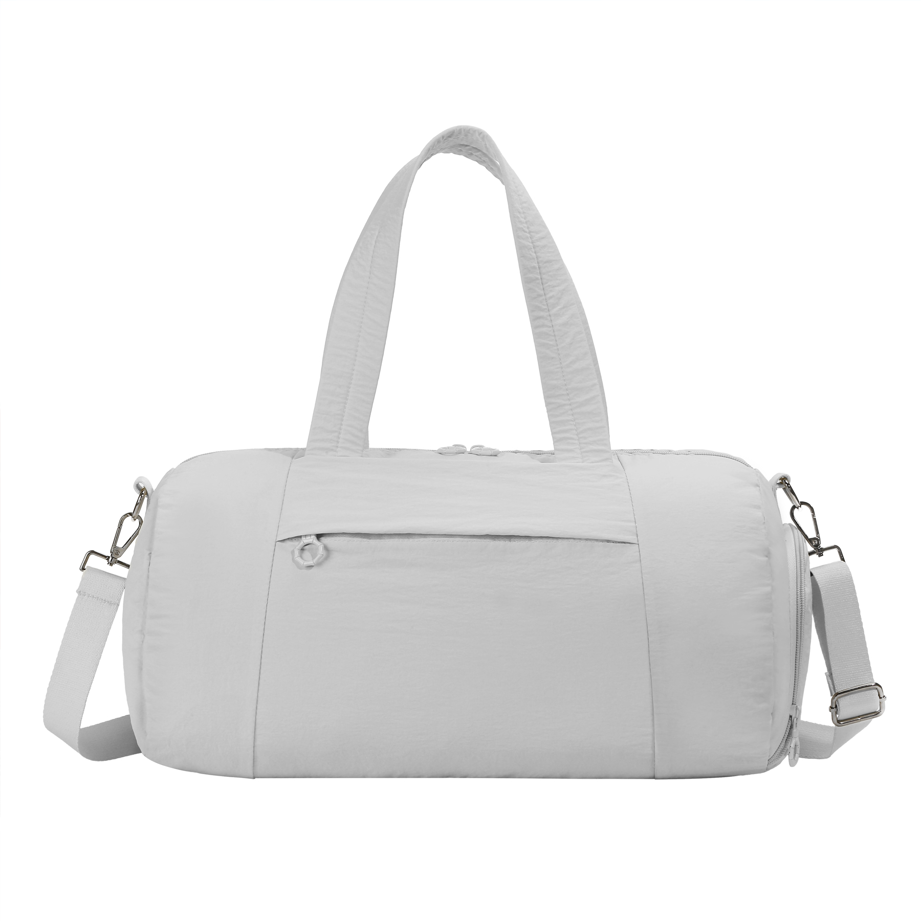 Item# RA1191 –  Crafted from durable nylon fabric with a contemporary wrinkled texture, this gym tote duffel bag combines resilience, water resistance, and style for everyday fitness and travel. Featuring a front zippered pocket for quick-access essentials and multiple interior pockets for organized storage, it also includes a dedicated waterproof compartment inside the main bag to separate damp items—along with a side shoe compartment to keep shoes or soiled clothes isolated from clean belongings. Designed for maximum convenience, the bag offers sturdy handles and an adjustable shoulder strap for comfortable carrying. Perfect for the gym, travel, weekend getaways, and outdoor activities, this versatile duffel delivers smart organization and lasting durability wherever you go. Get a free quote now!